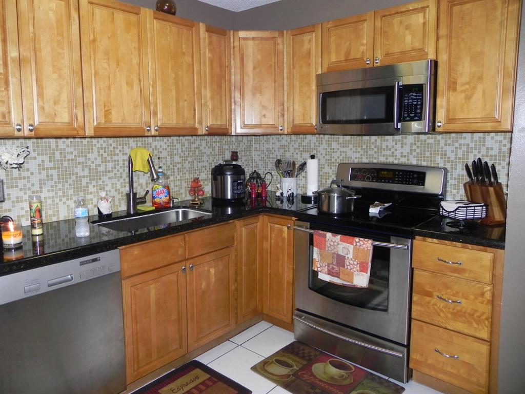 Immaculate two story courtyard townhouse in desired location of WPB. Updated kitchen with new cabinets, new granite counters, new appliances. Updated both bathrooms, new AC. Tiled throughout. Excellent location within community. Low monthly association fee. Close distance to schools and shopping center.