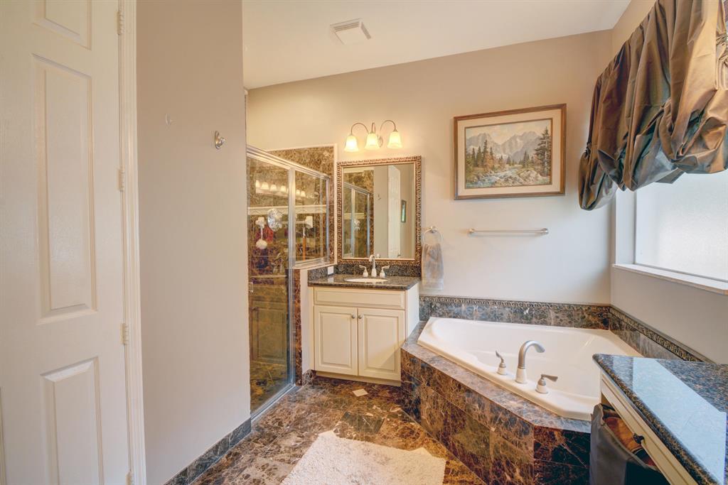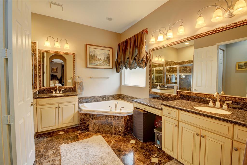 IF YOU ARE LOOKING FOR THE PERFECT HOUSE THEN THIS IS IT! FORMER MODEL THAT HAS BEEN FURTHER UPGRADED. MARBLE FLOORS WITH COCO MARBLE INSET DETAILS IN LIVING AREA & HARDWOOD FLOORS IN ALL BEDROOMS. VOLUME CEILINGS, CROWN MOLDINGS & DESIGNER WINDOW TREATMENTS. GOURMET KITCHEN, CREAM WOOD CABINETS W/CHOCOLATE ROPE MOLDINGS, GRANITE COUNTERS, OVERLOOKS GRAND GREAT ROOM. FABULOUS FORMAL DINING ROOM, LUXURIOUS MASTER BATH WITH BROWN AND CREAM MARBLE TUB & SHOWER. LARGE ROOFED SCREENED PATIO, PRIVATE LUSH YARD WITH IN GROUND HEATED SPA. REAR OF HOUSE BACKS TO PRESERVE.