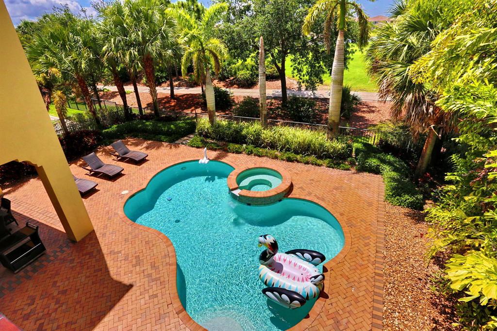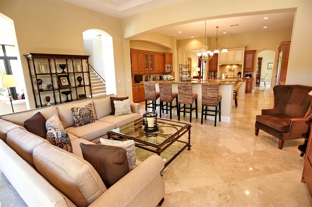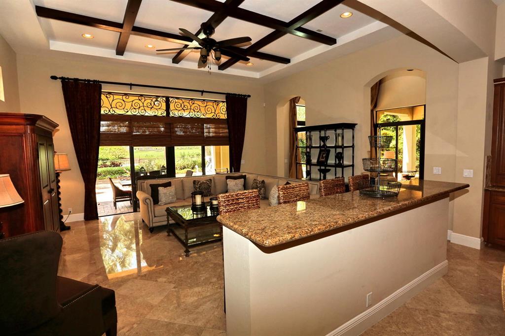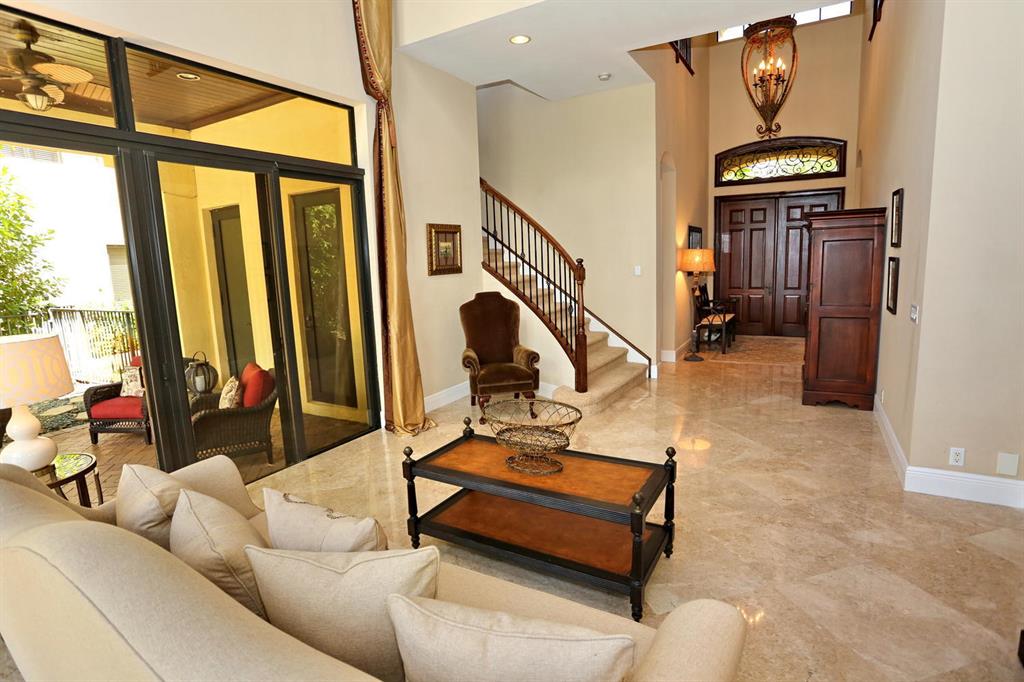 PERFECTION ON THE GOLF COURSE! SOARING WOOD CEILINGS & WINDOWS ALL AROUND ALLOW SUNLIGHT & WATER/GOLF COURSE VIEWS. BEAUTIFUL MARBLE FLOORS THROUGHOUT. ENORMOUS KITCHEN/FAMILY/ DINING AREA W/CENTER ISLAND - WOOD CABINETS , GRANITE & S.S. APPL,AWESOME GUEST BED/BATH DOWN . LUXURY MASTER SUITE & BEDROOMS UP WITH THEIR OWN BATHS & BALCONIES! ALSO ENTERTAINING HUGE GREAT ROOM/BEDROOM! FAB SPRAWLING BACKYARD LAWN, 2 COVERED PATIOS FOR GRACIOUS ENTERTAINING POOLSIDE. 3 CAR GAR, IMPACT GLASS! NEVER HAD CHINESE DRYWALL! THIS IMMACULATE HOME IS PRICED TO SELL!!