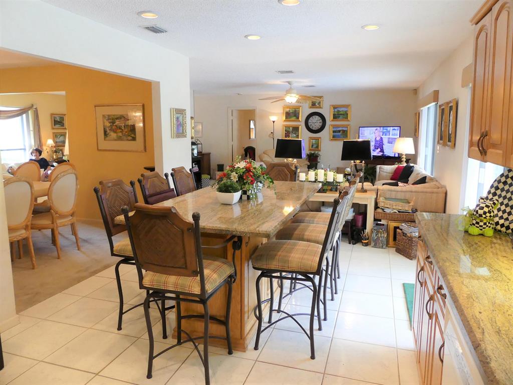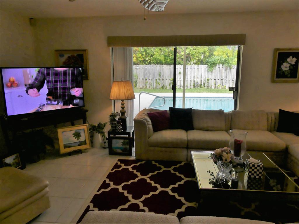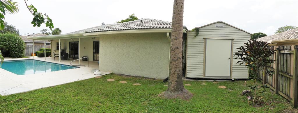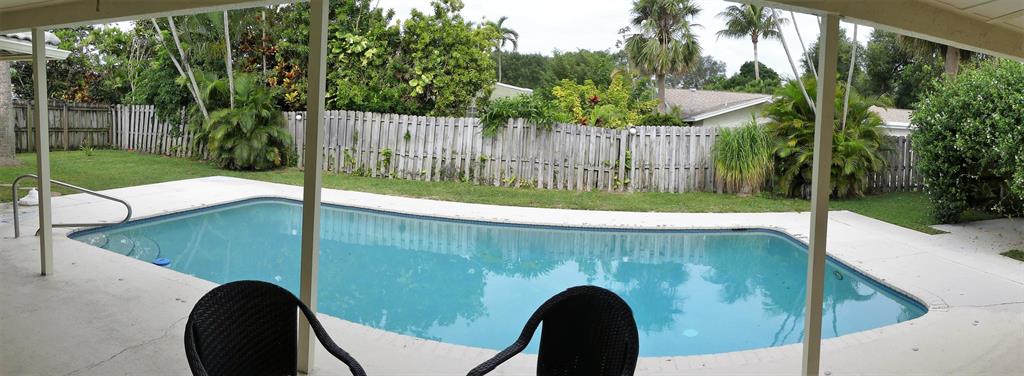 Immaculate 3 bedroom, 2 bath home with large fenced open pool, rear yard and covered patio, open floor plan with formal dining room, sunken living room, large family room, 2 car garage and convenient side driveway to accomodate RV or boat storage, full easily mounted hurricane panels, new (1yr) Air Conditioner compressor and air handler, new hot water heater (3 yrs), new refrigerator (3 yrs), large island seating eight in kitchen, separate storage building in rear, carpet and tile floors, nicely landscaped in sought-after neighborhood with excellent schools