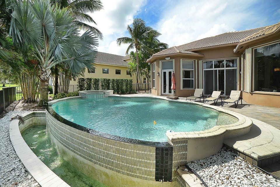 This stunning one story home is located on a beautiful private 1/3 acre lake lot with a resort like custom heated infinity pool and spa. This light and bright open floor plan features marble floors in the main living areas. Hugh luxurious master suite and dual shower with a garden view. Oversize kitchen with granite counters that opens up to magnificent lake views and outdoor area. House has FULL accordion shutters. A premier home in Parkland that should not be missed.