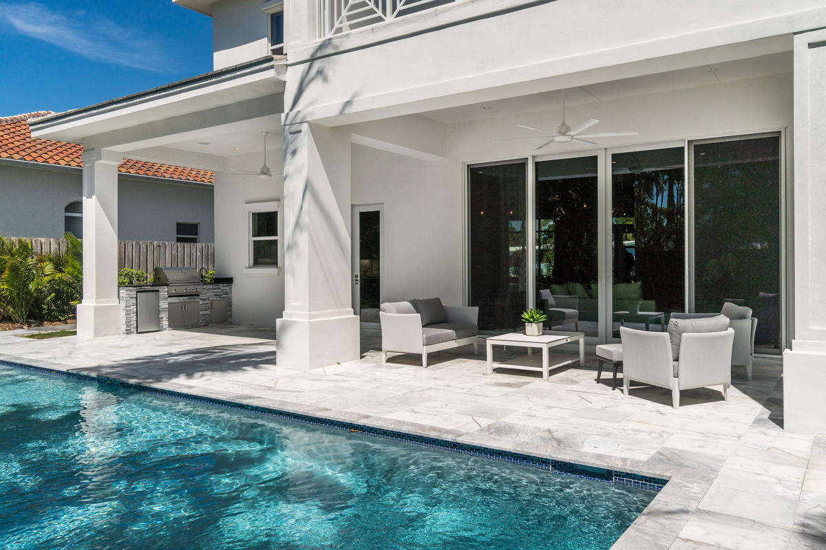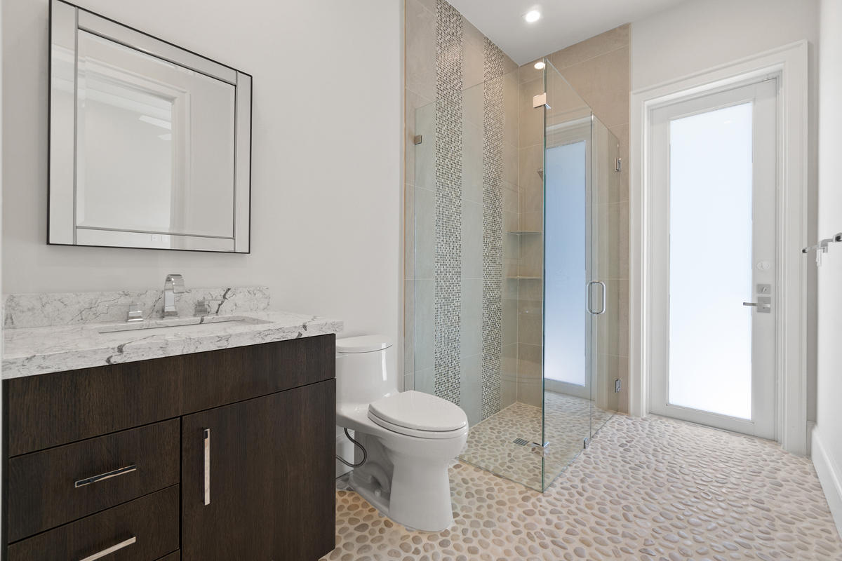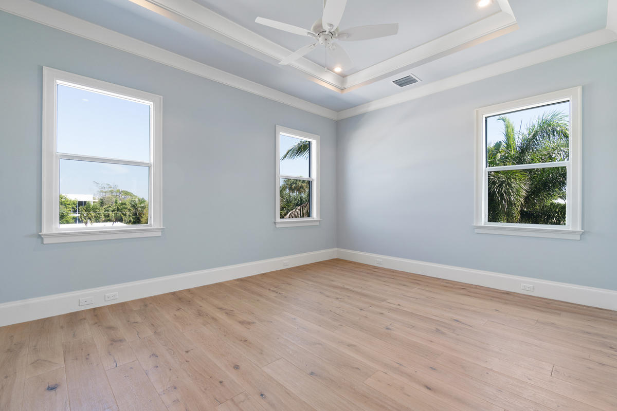 Location, location, location! This brand new home, built by A&S Custom Homes, is complete and ready for occupancy. Located on a quiet street within walking distance to Mizner Park and the beach! No HOA! Five bedrooms plus office, five full and one half bathrooms, 4295 sqft under air and a three car garage! This home has a large open floor plan with 12ft ceilings on the 1st floor, 10ft ceilings on the 2nd floor, oak wood flooring throughout, custom crown molding and cased windows. The open gourmet kitchen has a large center work island, custom wood cabinetry and all Thermador appliances. Spacious second floor master suite has his and her walk-in closets, and a large luxurious bathroom with two sink vanities, private water closet, soaking tub & separate walk-in shower. <