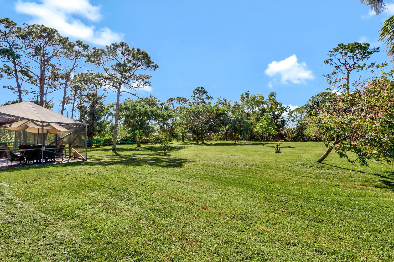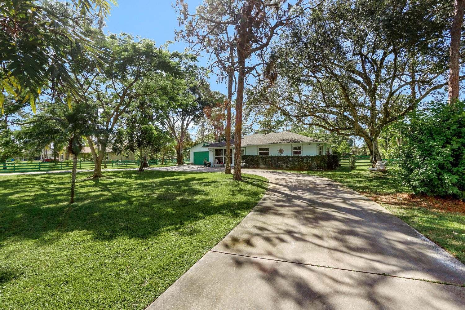 Welcome home to this 3Bd, 2Ba absolutely adorable property. With oversize picture windows in the living room an open concept kitchen and a large screened in back patio. There is bamboo wood flooring throughout the home. This property sits on 1.25 acres of beautiful lavish greens and so much more. The 2 car garage is semi-attached. This location is close to SR7-441 and easily accessible to Okeechobee Blvd. and Royal Palm Beach. Located next to Shoppes, Activities and Schools