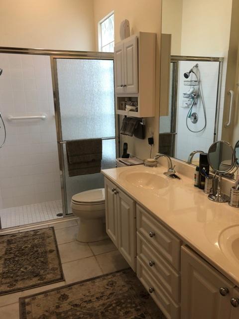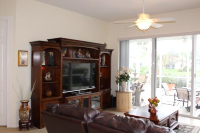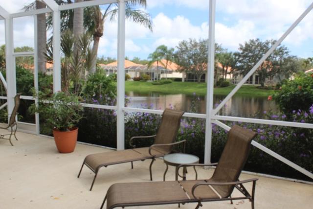 A rare ''Expanded'' Glenwood model with many upgrades- including...custom ceramic tile, built in entertainment unit in the great room, gorgeous corian counters (oversized to give ample room for bar stool seating) pull out drawers throughout kitchen, double oven, wood-look like tile in the guest bedroom, top of the line LG washer & dryer, large screened covered patio with hot tub & soothing lake view! 10ft ceilings throughout- the extended living area give many options for furniture placement! This beautiful home is a joy to show!!!Close proximity to Town Centre where you can grab lunch, play tennis, swim or stop by the library. River Walk offers luxury resort-style living, without extravagant ''country club'' fees! Play a set of tennis, meet friends for a light lunch, enjoy 12 miles of
