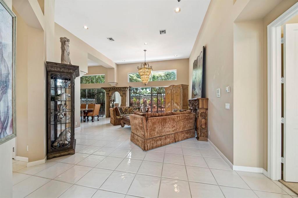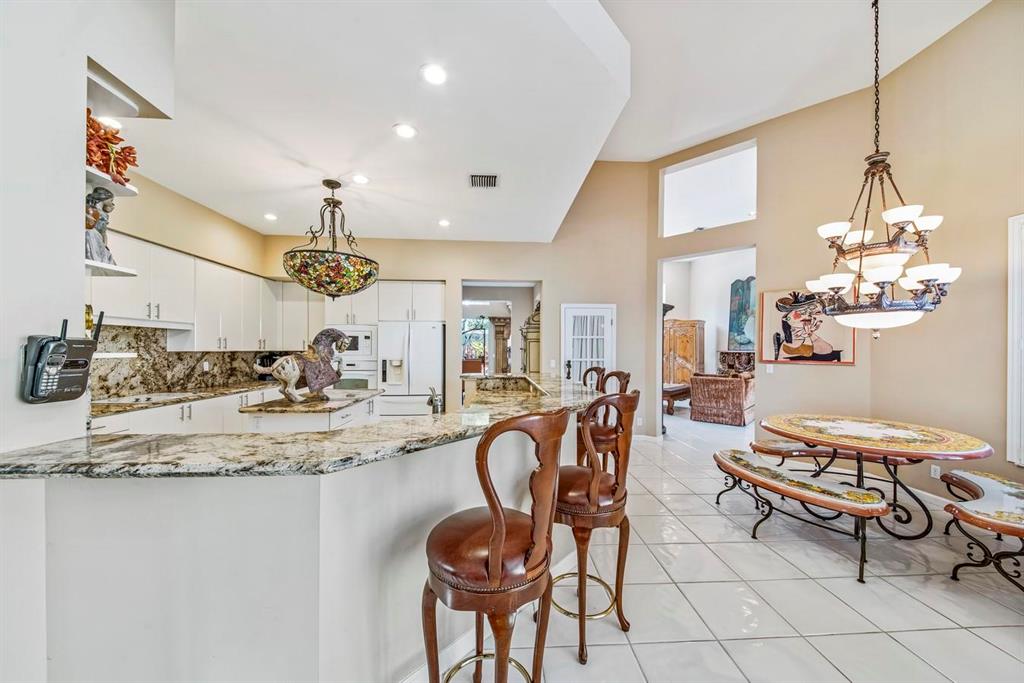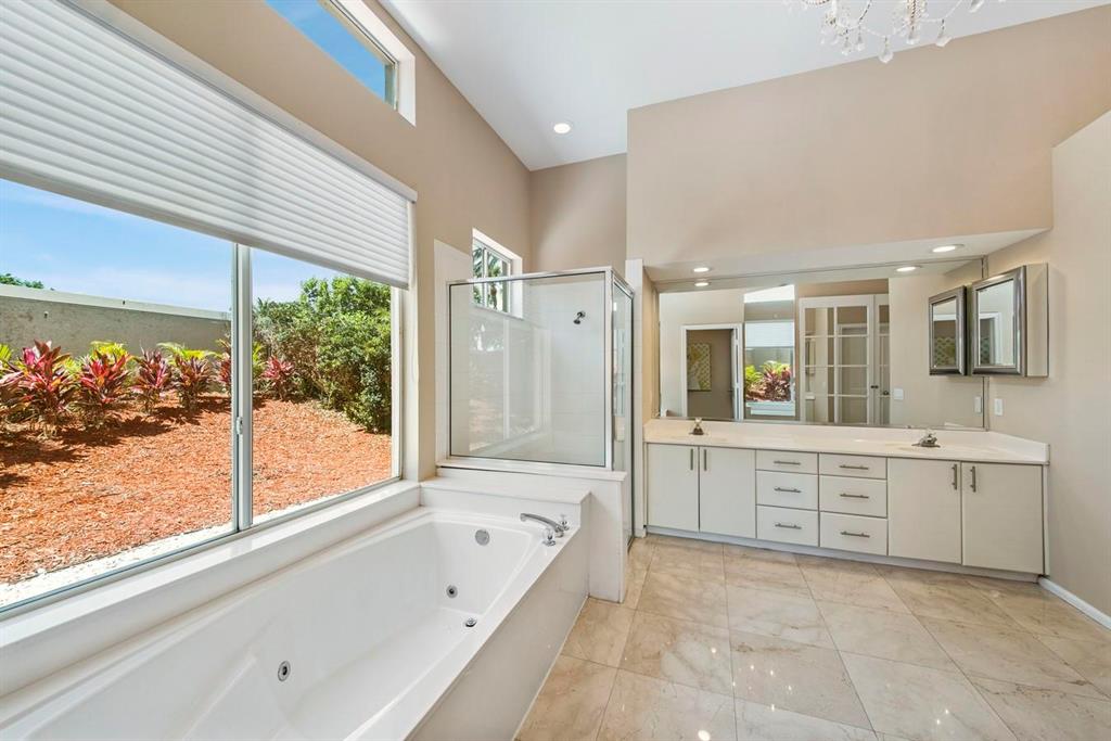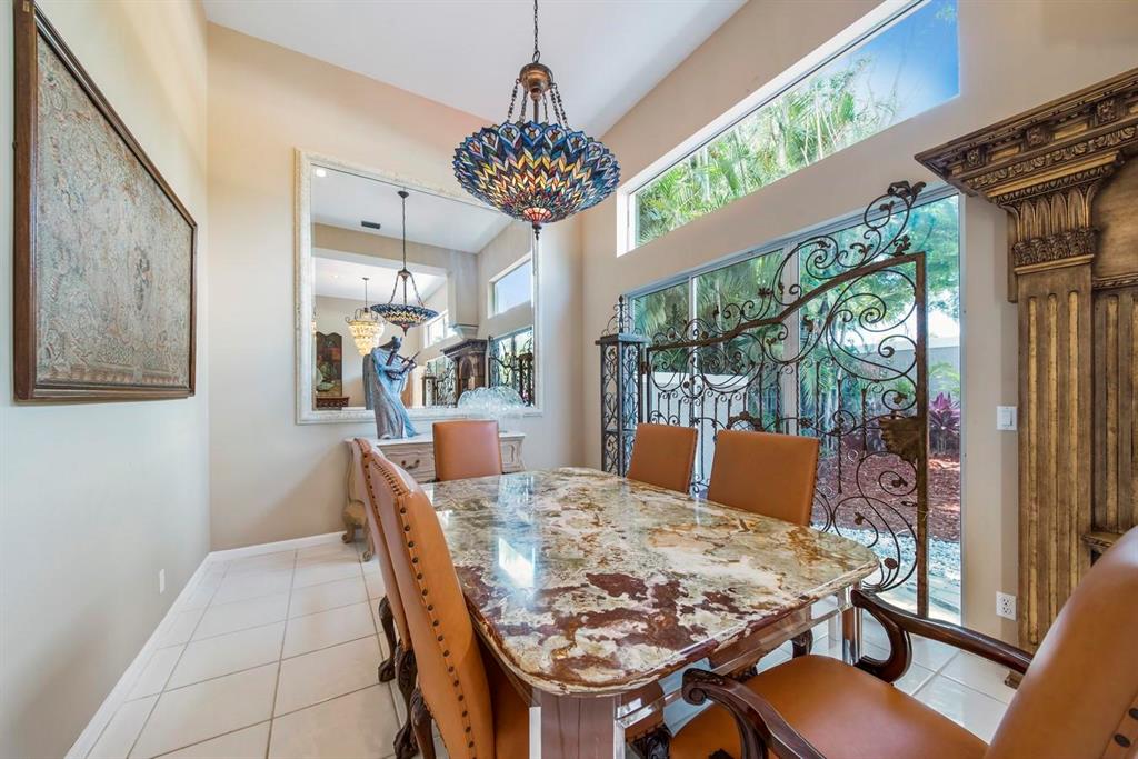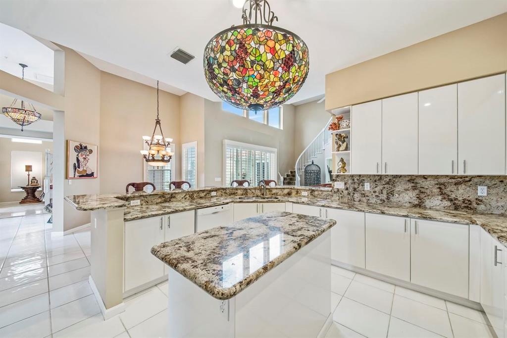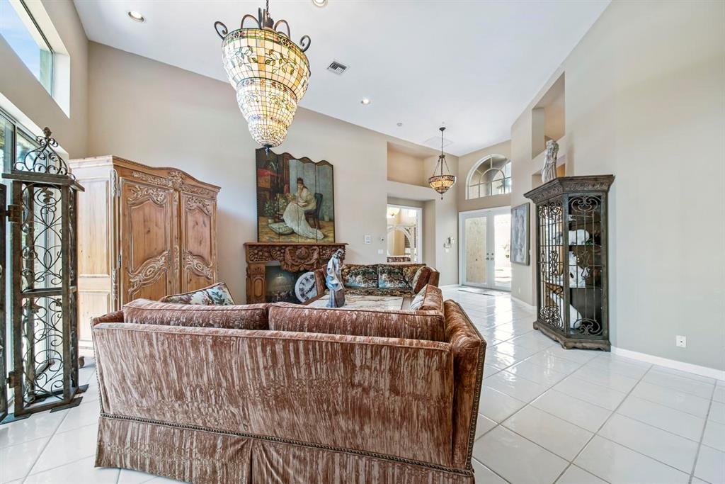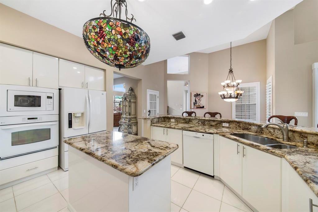 Well-appointed 4 bedroom, 3.5 bath Redondo model home in the highly sought after Santa Barbara community. Designed for entertaining on a grand scale with a 3,036 SqFt open floor plan which includes a formal living room, dining room, family room and a guest house. The dream kitchen is equipped with classic white cabinets, granite countertops, full granite backsplash, newer appliances and a snack bar. The luxurious master suite has an oversized slider, marble flooring, his and hers walk-in closets, dual sinks, a jetted tub and a walk-in shower. Neutral tile, high hat lighting, a new roof (2014) and an abundance of natural light complete this spectacular home. Step outside to discover paradise with a spacious courtyard, a custom pool, flagstone pavers and tropical landscaping.