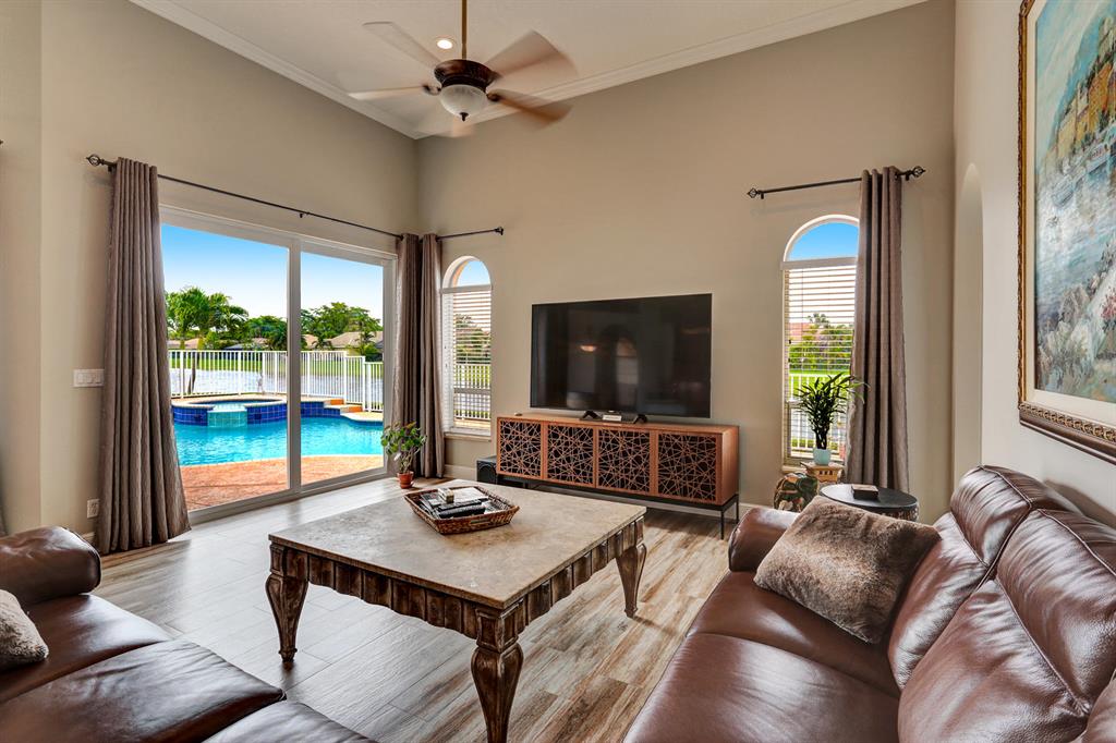 This elegant estate home is located in Coral Springs' Grand Reserve community. Enjoy lovely lake views from this updated and move-in-ready 4 bedroom, 3 bath plus den home. On the interior you will find: an amazing brand new gourmet kitchen complete with granite counter tops, shaker cabinets, center island, and new high-end appliances; new plank tile flooring; fresh paint; split floor plan; master suite with his and her closets; huge master bathroom with tub, his and hers sinks, and a walk-in shower. On the exterior you will enjoy: the best lot in community; oversized circular driveway; long lake views; heated pool with spa; two-car garage; fenced backyard; and lush tropical landscaping. This must see home is located near shopping, entertainment & schools.