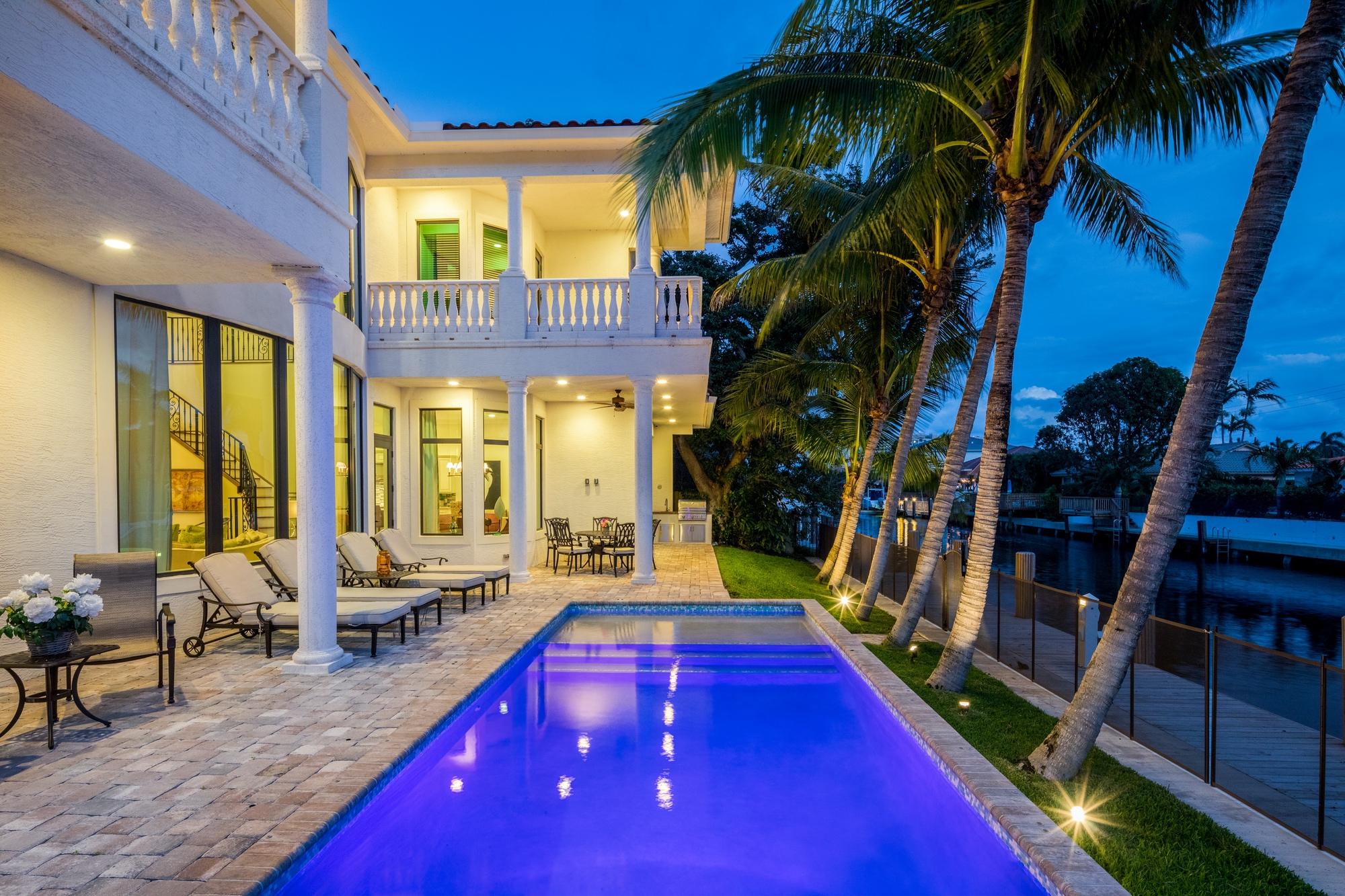 This stunning waterfront estate offers all the luxury of a new build without the hassle of waiting! Bring your 70 ft yacht to this no fixed bridge deepwater home and enjoy all that South Florida luxury living has to offer. With a South facing pool, 80 total feet of deepwater, an outdoor kitchen and multiple terraces, you can enjoy the Florida sun from sunrise to sunset. Inside you will find Wolf professional 48 inch gas range and a 48 inch Sub-Zero beverage cooler, soaring 24ft ceilings, with 12ft first floor ceilings and 10ft impact glass windows taking in gorgeous natural light and views. The first floor features 1 bedroom and 1.5 bathrooms. Take the grand rod-iron stairs to find an open loft and 5 more bedrooms with en-suite bathrooms upstairs, including the spacious master retreat.