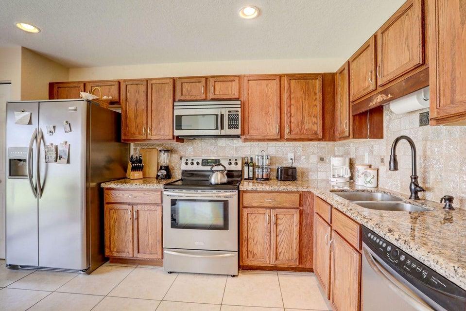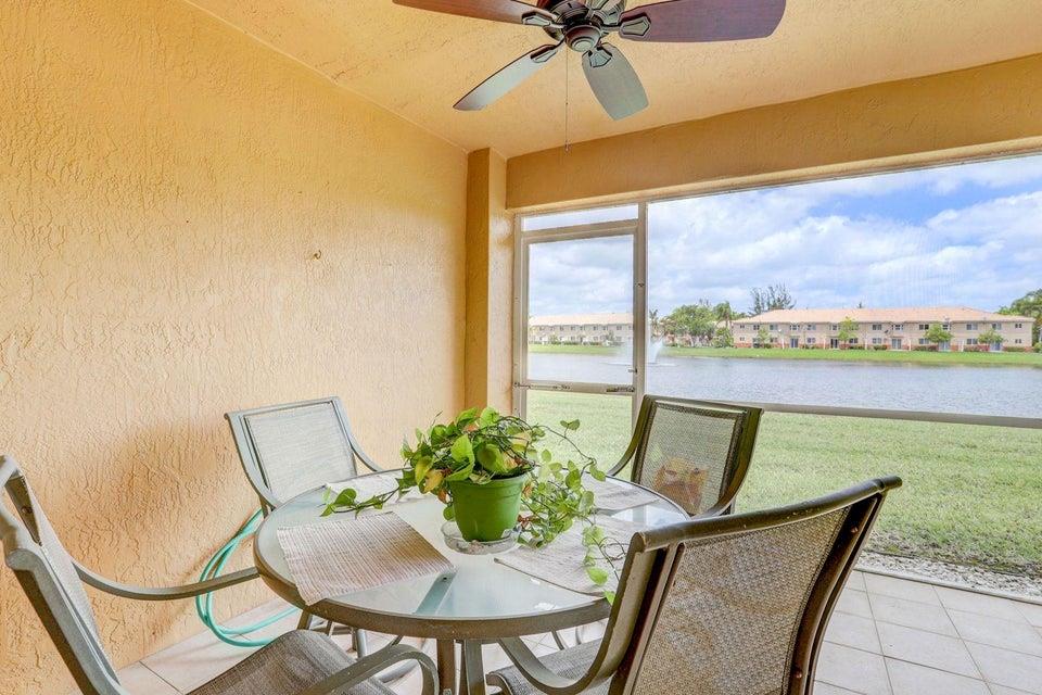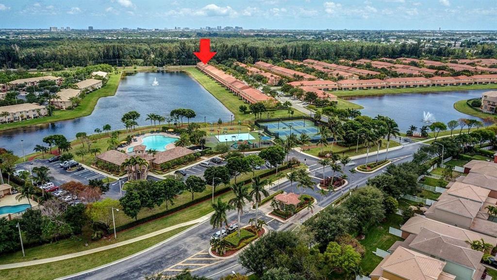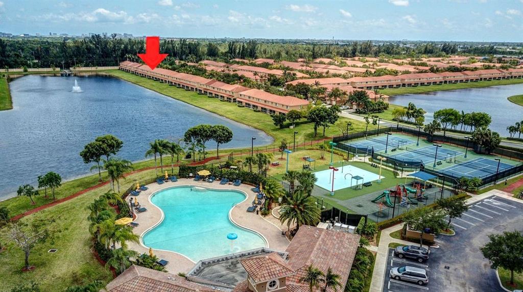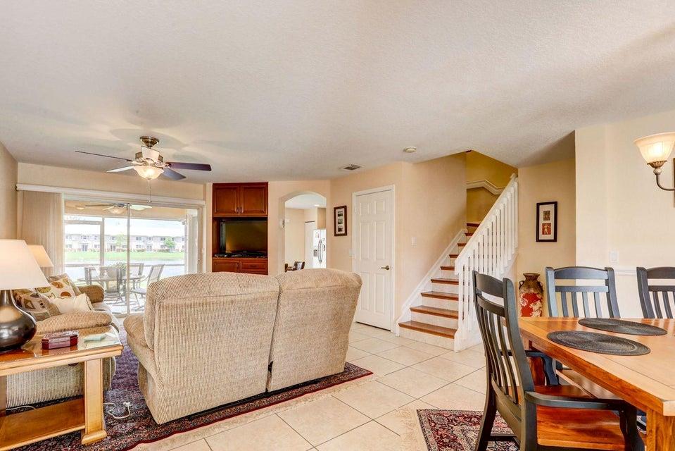 This 3 bedroom 2 and 1/2 bathroom town home was built new in 2002. This home has a one car garage with enough driveway for two or more cars to park is located on a lake. The kitchen offers granite counter tops, wood cabinets and a nice size food pantry and enough room to have a small eat in area in the kitchen. This home has ceramic tile throughout and wood floors on the stairs. The first floor living room and kitchen are overlooking the screened in patio and the magnificent lake view. All 3 bedrooms and a den are located upstairs. The master bedroom has a large walk in closet and great views over the lake. The Master bathroom features double sinks, a shower and a separate tub. This gated community that has lots of amenities which include a very large clubhouse, resort style pool, and