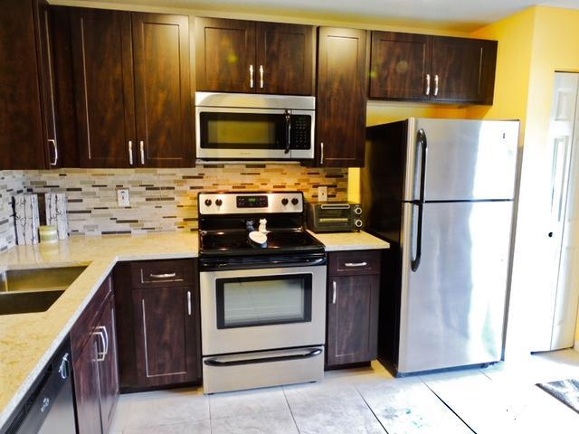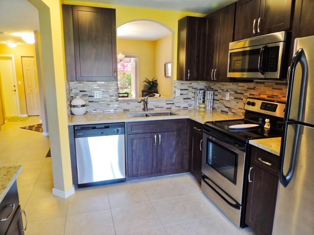This 2-story Townhome in gated community Turtle Cay has 2 bedrooms/2.5 baths/1-car garage. Enjoy a beautiful view from the screened porch overlooking a lake. Beautifully remodeled and well maintained. 1,297 square feet. Upgrades include: brand new 18x18 porcelain tile on first floor, updated brushed nickel faucets, lighting fixtures, and hardware throughout. Kitchen remodeled with shaker espresso cabinets, quartz countertops, glass/porcelain backsplash, and stainless steel appliances. Brand new garbage disposal with 9 inch deep double well under-mount sink. New Trane 16-Seer high efficiency air conditioning unit. CBS construction with accordion hurricane shutters on 2nd floor and corrugated steel on 1st. Low HOA!