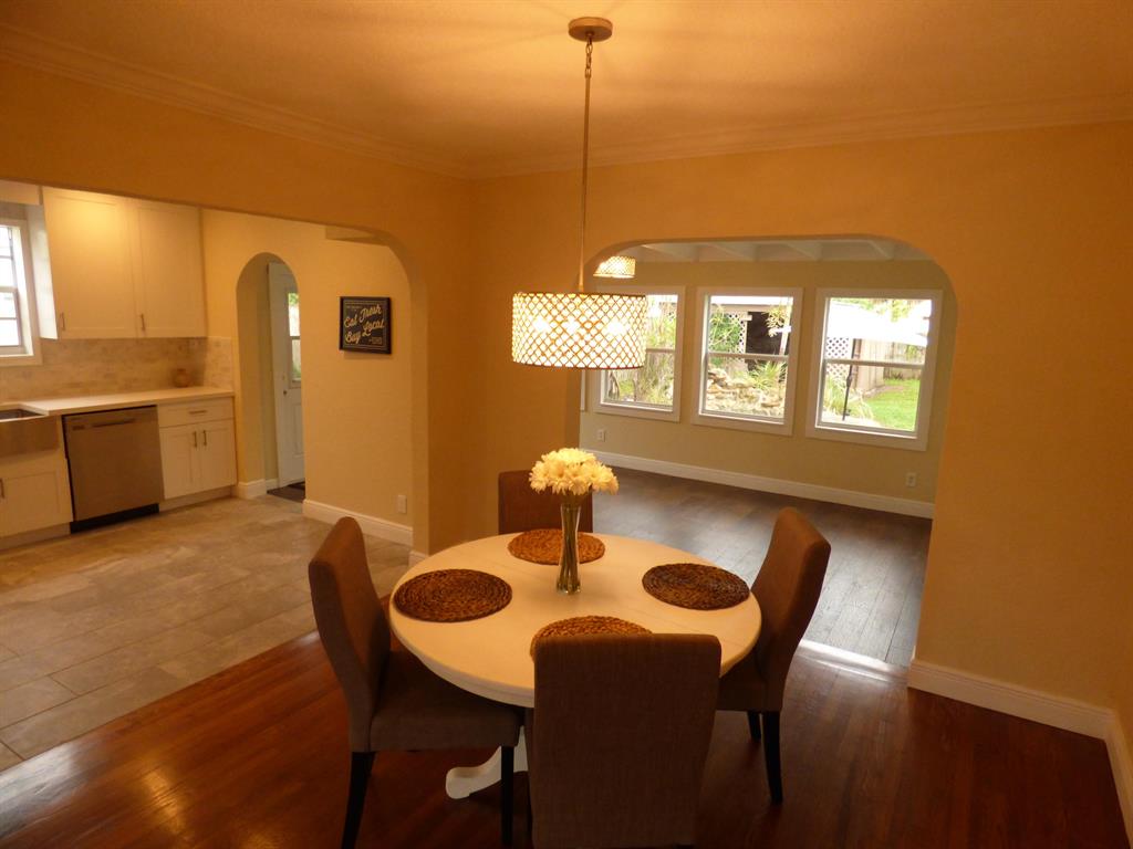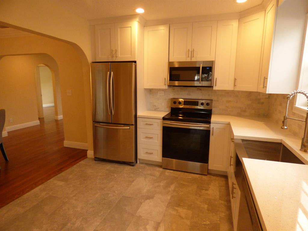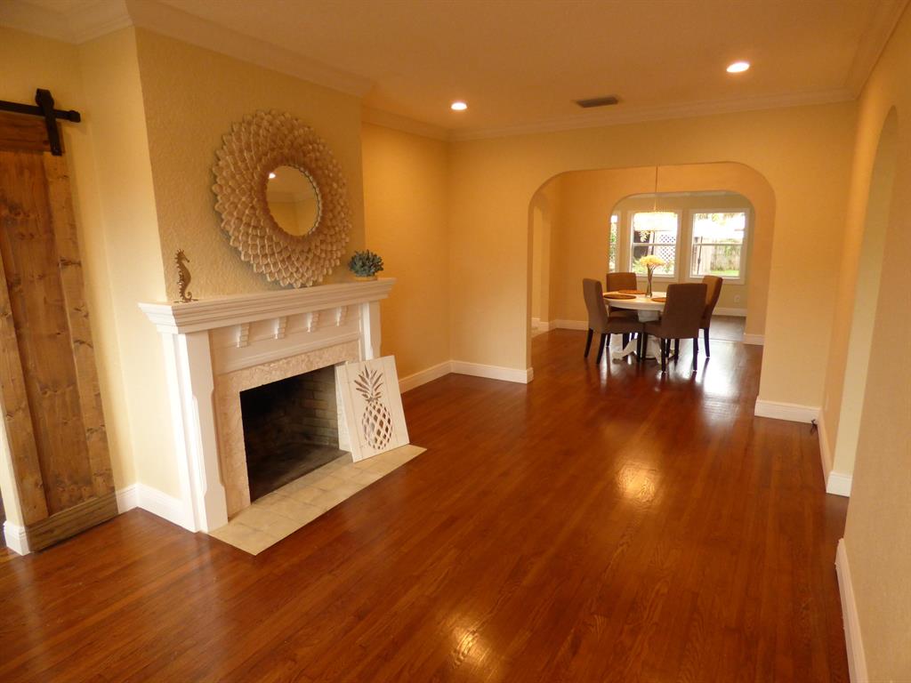 Charming Prospect Hills cottage! This tropical downtown 3/2 will captivate you from the moment you arrive! Great landscaping and curb appeal lead you into this beautifully renovated home w/ original hardwoods in living, dining and two guest bedrooms. Gorgeous new kitchen with all wood cabinets with soft close doors, upgraded Quartz countertops, farm sink, marble subway tile backsplash and new Samsung appliances. Don't miss the guest bathroom with it's nice deep tub. Living room w/ fireplace, dining room, 2nd living room w/ view of back yard and nice size laundry room. Out back, a meandering path leads you past a small pond w/ waterfall and to a detached workshop that could be converted back to a garage with alley entrance. Huge back yard, plenty of room for pool. Check this one out!!
