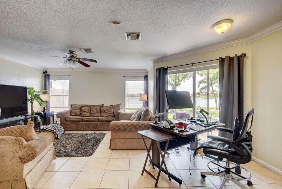 Beautiful 4/ 2.5 Lakefront Two-Story home with a 2-car garage! Tiled flooring throughout downstairs and Wood flooring throughout upstairs. All Bedrooms have ceiling fans. Master bedroom has a large window with a direct lake view! Kitchen/ Family room Combination, has Bar Countertops with Eat-in dining area. This is a great spacious area for entertaining! Kitchen has plenty ''Modern/Clean-line'' cabinet storage and stainless steel appliances with a Brand New ''Pull-down, Single-handed Sprayer'' kitchen Faucet and Dual sinks. Both Family room and Living room have sliding glass doors with great lighting and exit-ways to a Covered Patio with an amazing direct lake view! Heating/Cooling system equipped ''Nest Learning Thermometer'' and New AC unit. Beautiful landscaping! Must See!