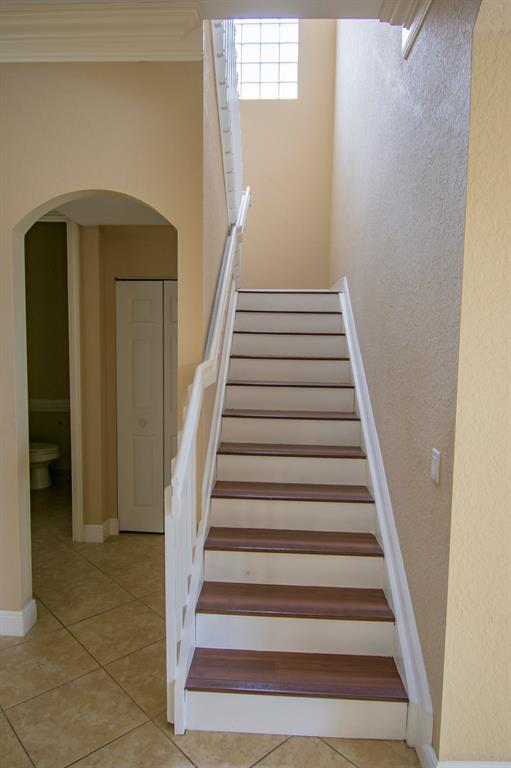 Check out this nice two story home with tile floors on first floor, open floor plan and high ceilings, nice patio with partial lake views. Laminate flooring on stairs and large master bedroom on second floor. Gated community, close to everything.. Don't miss out!!