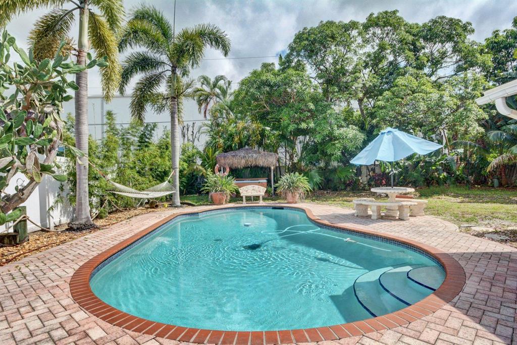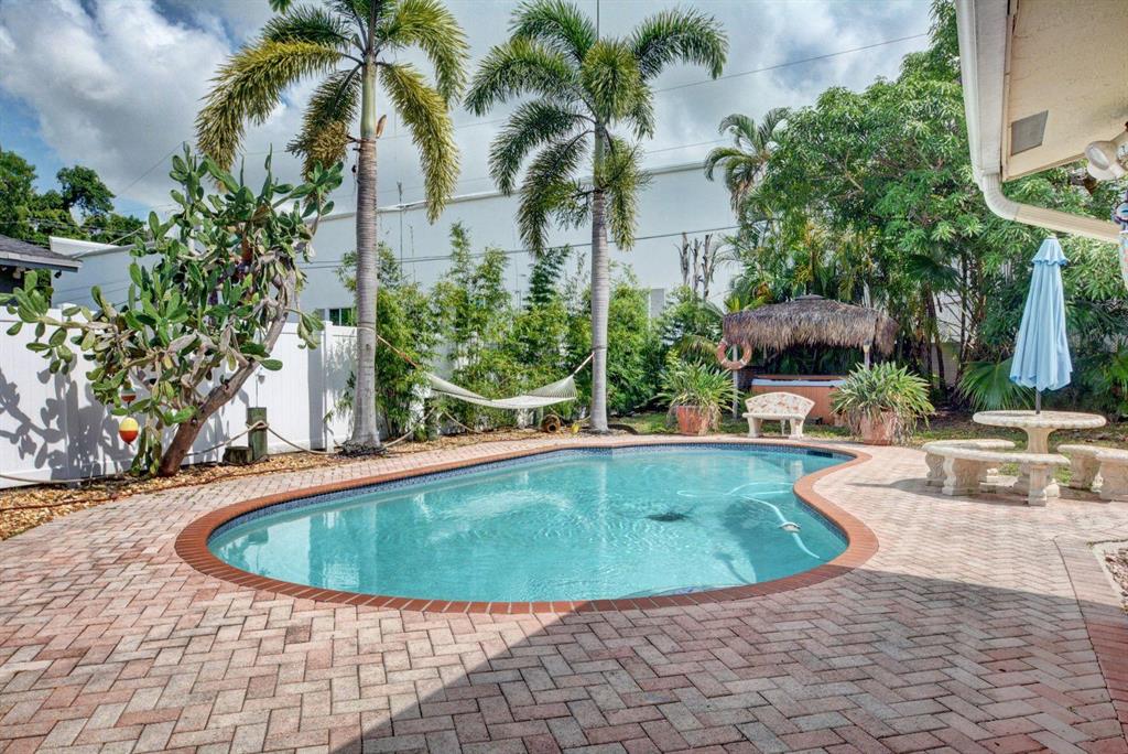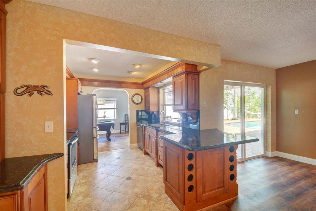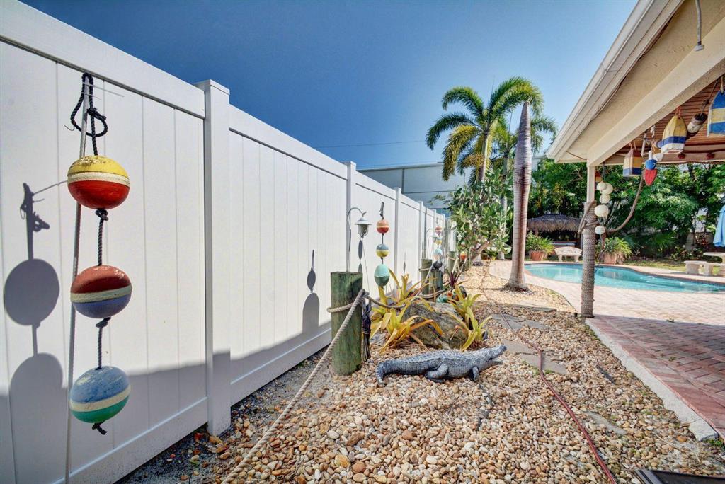 Experience a Florida Keys staycation each day with this beautifullyrenovated 3/2 pool home with 2 car garage that's located on a quiet dead-end street of only 8 homes.The open floor plan is great for entertaining and you'll love the serenity fromthe wood covered patio as you overlook a beautiful in-ground pool andexceptionally large nautical theme backyard, which provides plenty of playroom for kids and pets!Ready to move in and recently updated with new vinyl wood flooring, newbaseboards, new patio sliding doors and a remodeled cabana bathroomthat includes all new ceramic tile flooring, wainscoting wall covering anddouble vanity with cultured marble top.The updated kitchen has beautiful hardwood cabinets & Pantry, granite countertops, ceramic tile flooring,