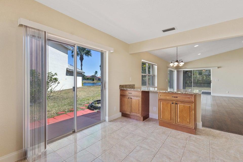 Updated, private, and spacious lake front 2 bedrooms, 2 full bathrooms, 2 car garage on cul de sac home in Boca Chase. Updates include brand new kitchen cabinets, granite counter tops, new master bathroom vanity with granite counter tops, new laminate wood floors in living areas, new carpet in bedrooms, large walk in closet in master bedroom, new light fixtures and hardware through out, cathedral/vaulted ceilings, and fresh interior paint. Large screened patio to enjoy the lake view and back yard.