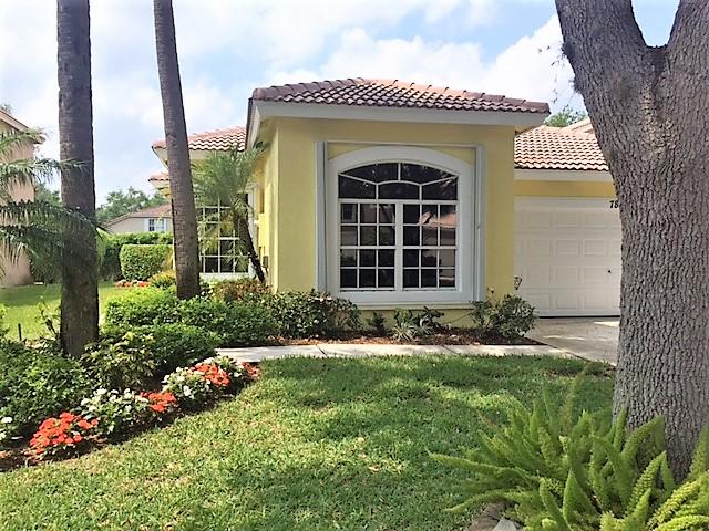 Picture perfect opportunity in beautiful Lakes at Parkland. Freshly painted, 4 bedroom, 2 bath with unique floor plan and architectural details. Dramatic tall windows and sliders provide extra light and green space views. Fully upgraded kitchen includes granite counters, stainless appliances, and custom tile backsplash. Cozy back yard oasis with screened patio and canal. Custom built-in murphy bed in front bedroom. Beautiful community pool, secured gated entrance - truly a wonderful community for kids and adults alike. Welcome home.