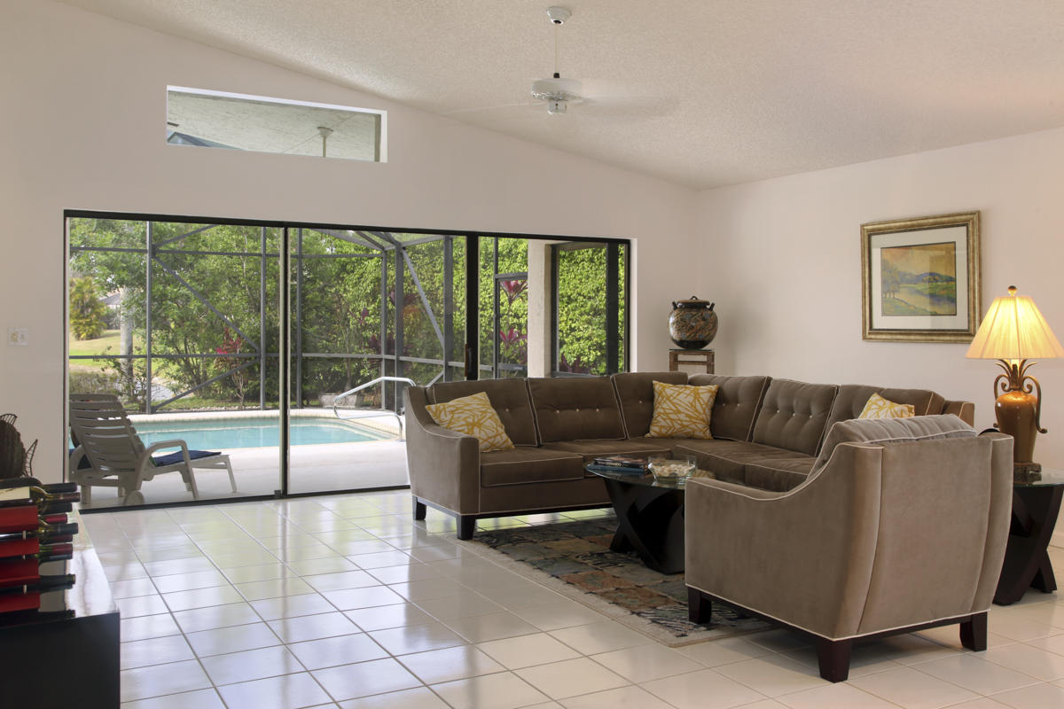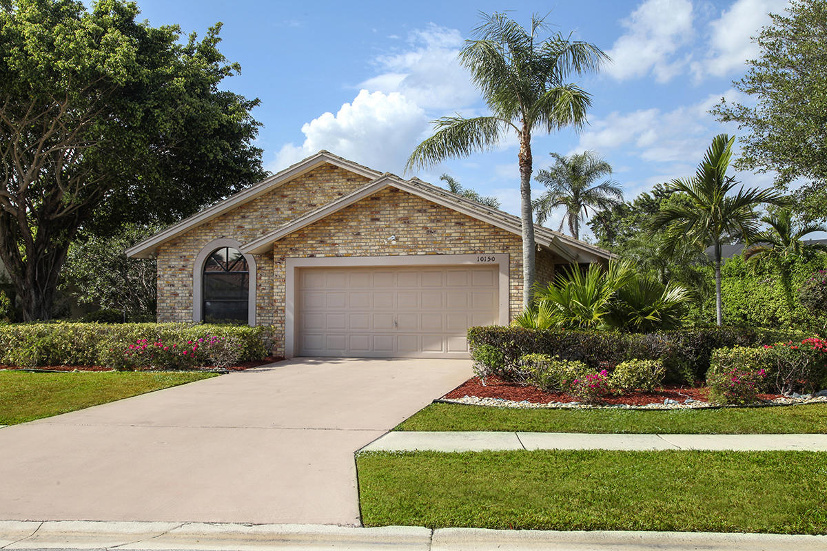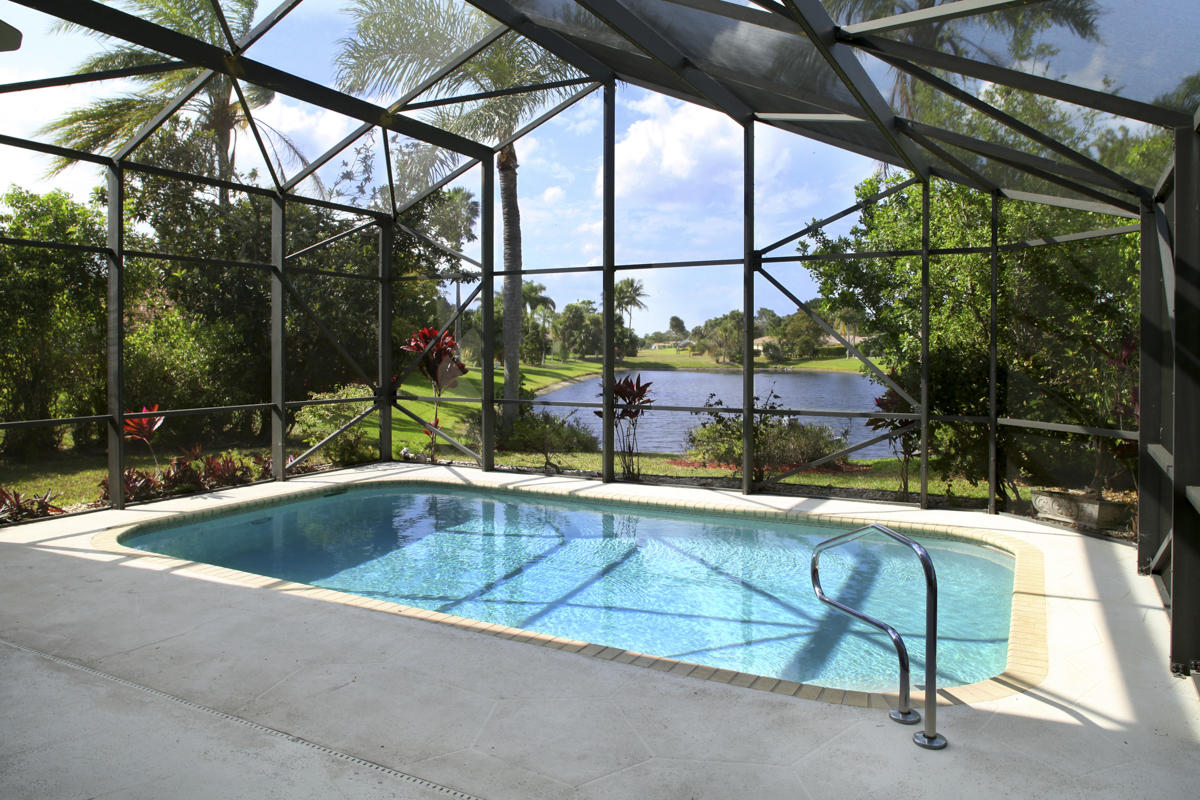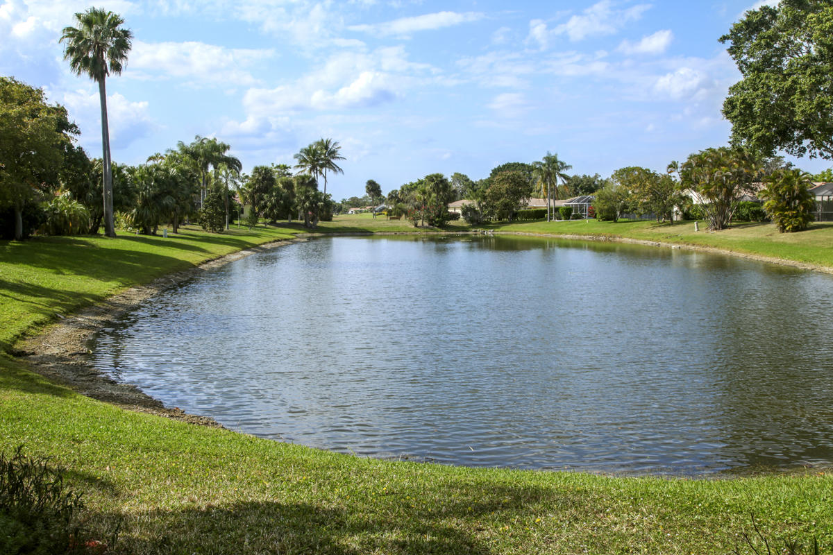 This cozy 2/2 + Den/Office home is situated on a large lot with a very private screened patio and pool. Enjoy tranquil long views of the lake and extraordinary sunsets. An original, very clean, one owner home has cathedral ceilings and a feeling of spaciousness throughout - plus a bonus of a two car garage! Move in ready or a great space to remodel and customize to your taste. Live the Country Club Lifestyle at Boca Greens with NO Membership required.You can join the club or just pay to play golf if and when you like. And, just minutes from your manned gate are numerous restaurants, grocery stores and boutique shopping.