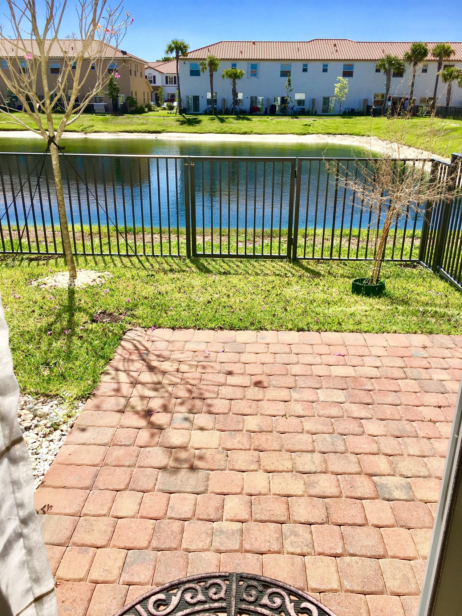 Brand new (2017), 2BR/2.5BA lake view townhome with fenced-in backyard surrounding pavered patio. The fully updated kitchen with granite counter tops and stainless-steel appliances opens to the family room. 2 master suites upstairs with their own bathrooms and oversized walk-in closets. Laundry closet upstairs. Ceiling fans in all rooms. 2 assigned parking spaces. Community features unmanned security gate, clubhouse, pool and playground. Pets OK. Just minutes to The Ballpark of The Palm Beaches, downtown West Palm Beach and PBI Airport.