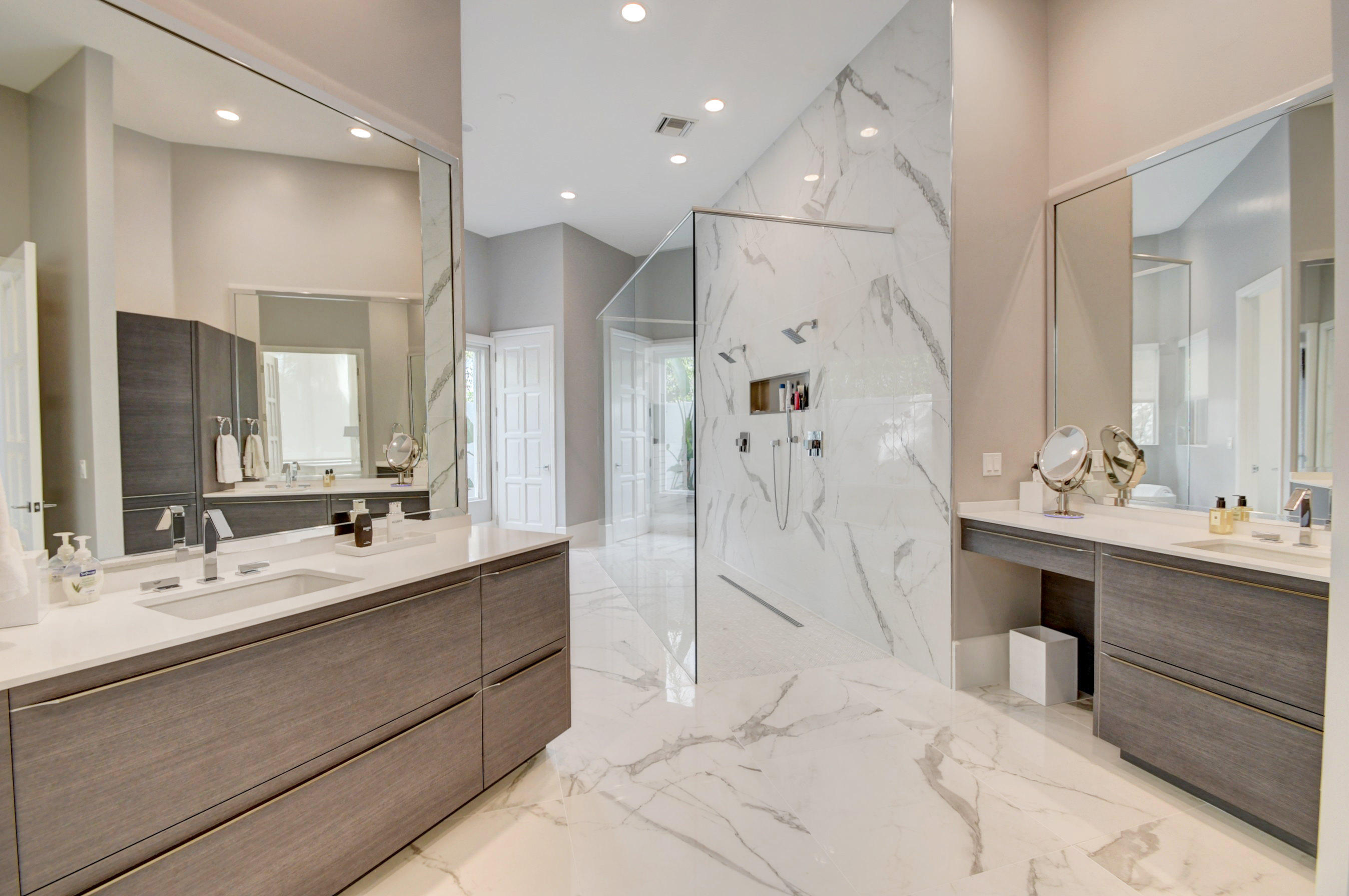 Beautifully renovated contemporary home on an oversized lot in St. Andrews Country Club. This 5 bedroom, 6.5 bath home has been completely updated, with a new kitchen, bathrooms, and roof. The home features a split bedroom open floor plan, volume ceilings, and white porcelain tile floors. The master suite has a soaking tub and more. All guest bedrooms are ensuite. The kitchen, which opens to the family room and breakfast area, has a WOLF gas cooktop, oven and microwave, and Sub-Zero refrigerator & freezer. Out back, a large pool, a cabana with built-in barbecue and a full bath, and lush landscaping enhance the lake and golf course views.