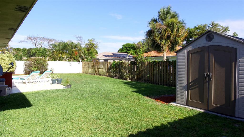 Fantastic family home in a great east Boca location. No HOA!!This home offers a 4/2 open living area plan, with plantation shutters in the living room and master bedroom. Custom-built cabinets in the updated kitchen, with granite counter tops and S/S appliances. Porcelain tile in living, dining and guest bathroom, air-conditioned and enclosed laundry room, including a tankless water heater. Three bedrooms have walk-in closets and guest bathroom is a cabana bath. Pool and storage shed in the backyard. Two-car garage equipped with a hurricane re-enforced garage door and the electric is wired for a generator. Freshly painted inside and out and neighborhood is boat-friendly! A-rated schools, The Town Center Mall, Mizner Park and the beach are close. easy access to I-95.