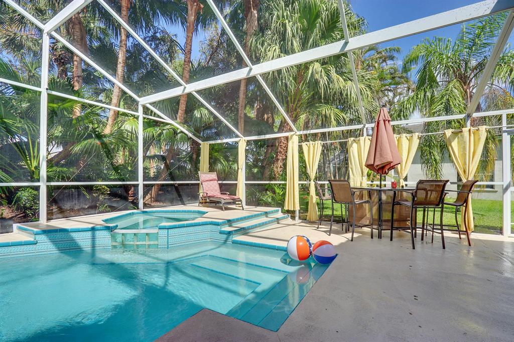 Nicely updated 4/2.5 with master on the first floor. Updates throughout including porcelain and wood flooring. No carpet in this home. Enjoy your pool and hot tub as you relax in your fully screened-in back yard. A-Rated schools across the board. Family friendly community with a lot of extras included in your HOA. Beautiful, open recreation area/park with pool for you and your guests to enjoy year-round. Close to all major highways and shopping galore. HOA also included cable TV service and Internet with Comcast. Be sure to check out the links for the 360-degree views and 3-D Walk-Through / Virtual Tour.
