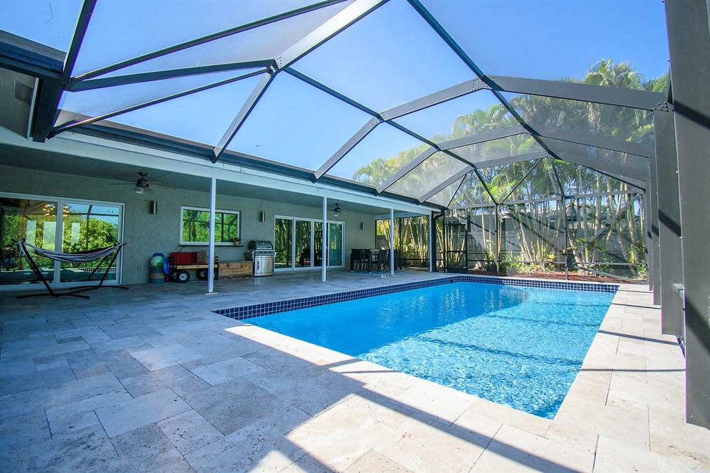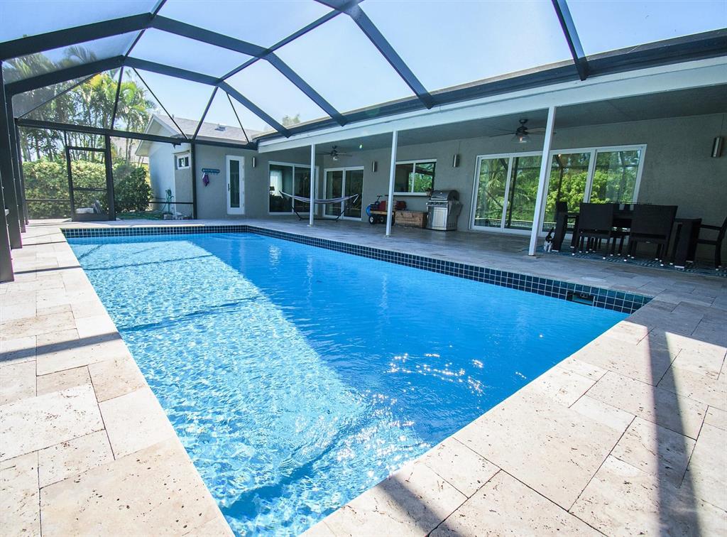 Renovated Pool Home can be your private paradise. Owners replaced roof in 2015. Installed custom, impact windows and doors, with low-E treatments (minimizing electric bill). Remodeled both bathrooms. Resurfaced and upgraded pool in 2016- it now has travertine paver surround, salt system, heater, and upgraded lighting. The enclosure was added in 2015. Other features are the high ceilings, spacious bedrooms, and private yard on canal.New floors, no popcorn inside, storage systems in garage, smart door bell and thermostat... this home has too many upgrades to list! Come see it for yourself.Over 100K in improvements. Low HOA and Maximum insurance discounts. Energy efficient and low water bills (lawn irrigated from canal) Move-in Ready!