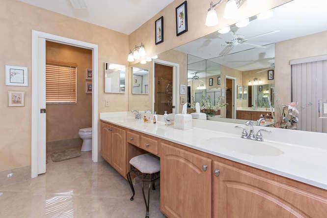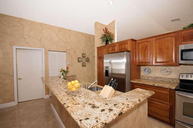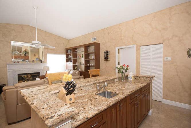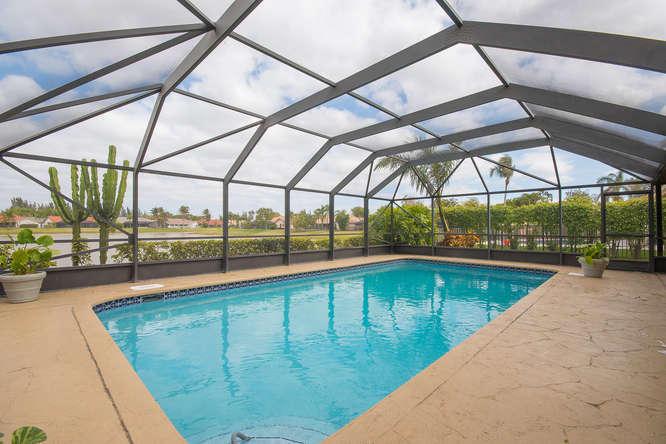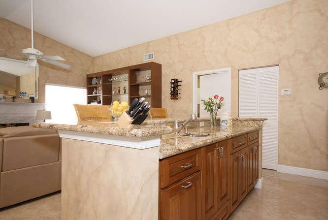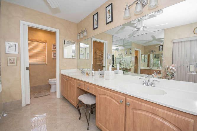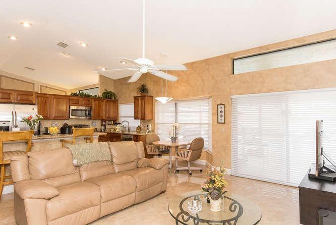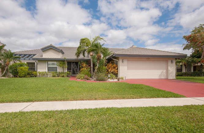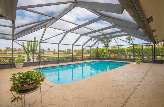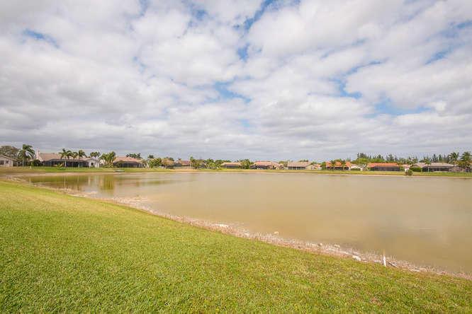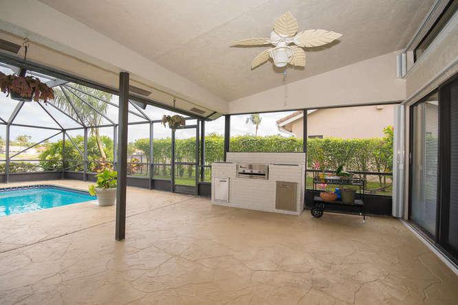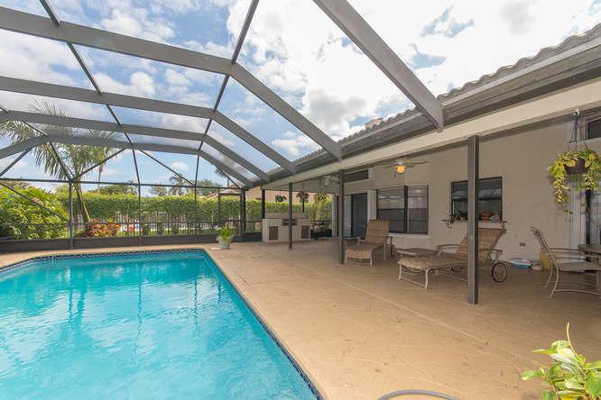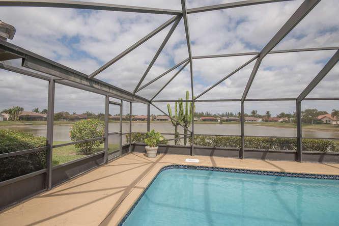 You will absolutely love this light, bright, beautifully maintained 4/2.5 builder's model in Island Lakes in West Boca Raton. The wide-open kitchen has been updated with granite counter tops and island with bar sink, Thomasville real wood cabinets, and stainless -steel appliances. Golden sunlight glitters into the kitchen and great room windows through Levelor Silhouette blinds. Through those same windows and from screen enclosed in-ground pool, (which was Marcited and retiled in 2017) you'll enjoy panoramic lake vistas. And every day will greet you with breathtaking sunrises and conclude with equally fabulous sunsets. Because the back of this very well engineered home faces north. There's also a built-in outdoor grill for barbecuing on the party-sized enclosed patio. Custom draperies