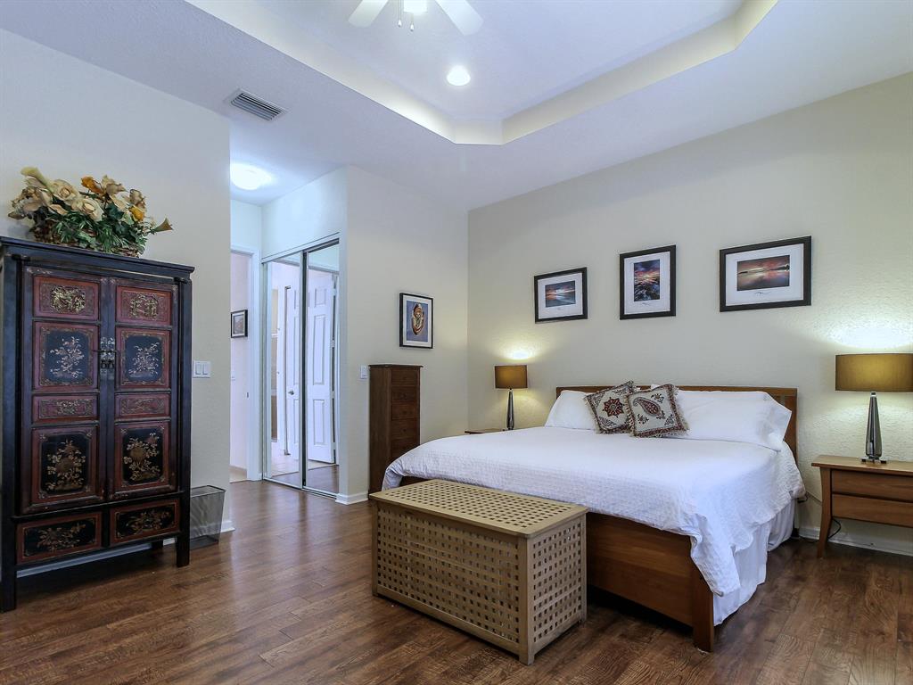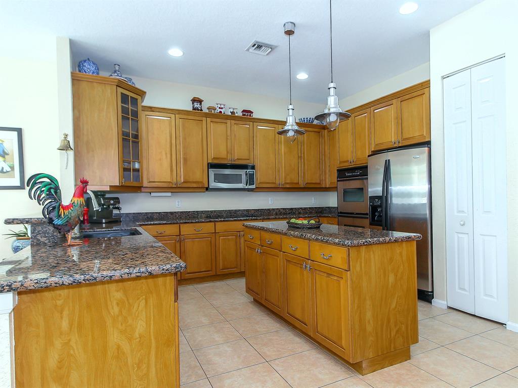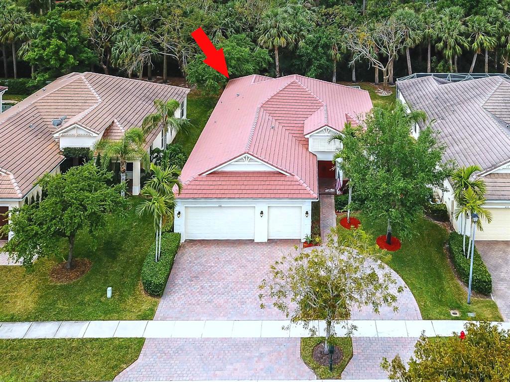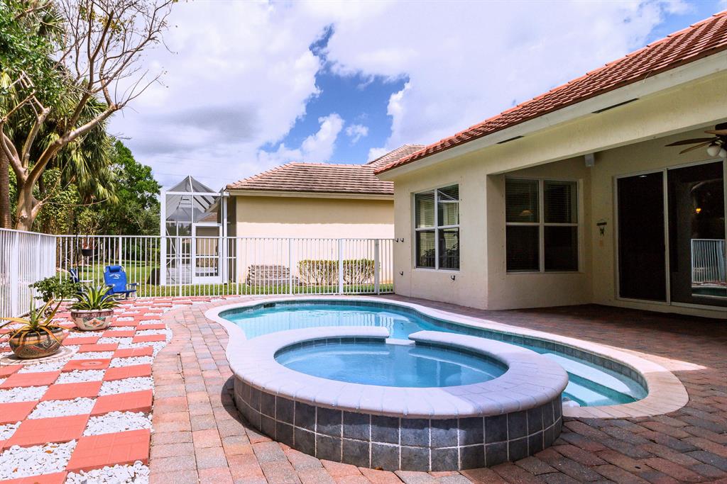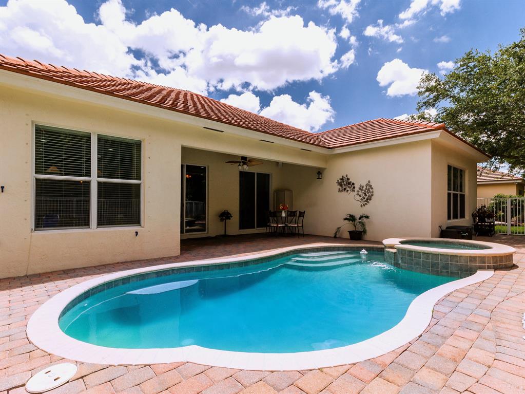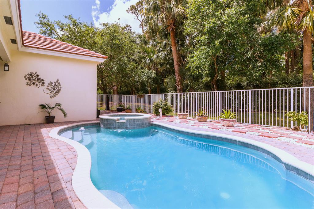 Spectacular Palm Beach Plantation one level villa-style residence. This highly sought 'Ormond' model is uniquely situated on an over-sized 125' deep lot nestled up to a nature preserve, located on a quiet tree-lined cul-de-sac lane with no thru-traffic. The ideal full time Florida home or a tranquil winter get-a-way. Interior features include 4 spacious bedrooms, open floor plan, soaring ceilings, gourmet chef's kitchen with, breakfast nook, Stainless Steel appliances, hand crafted hardwood cabinetry, imported granite counters and food-prep island. Other sublime comforts include an aqua blue free-form pool & SPA, open patio and covered loggia, perfect for relaxation or entertaining. Amenities: 24/7 man-gated security, clubhouse, gym, play ground, tennis courts, basketball & community pool.