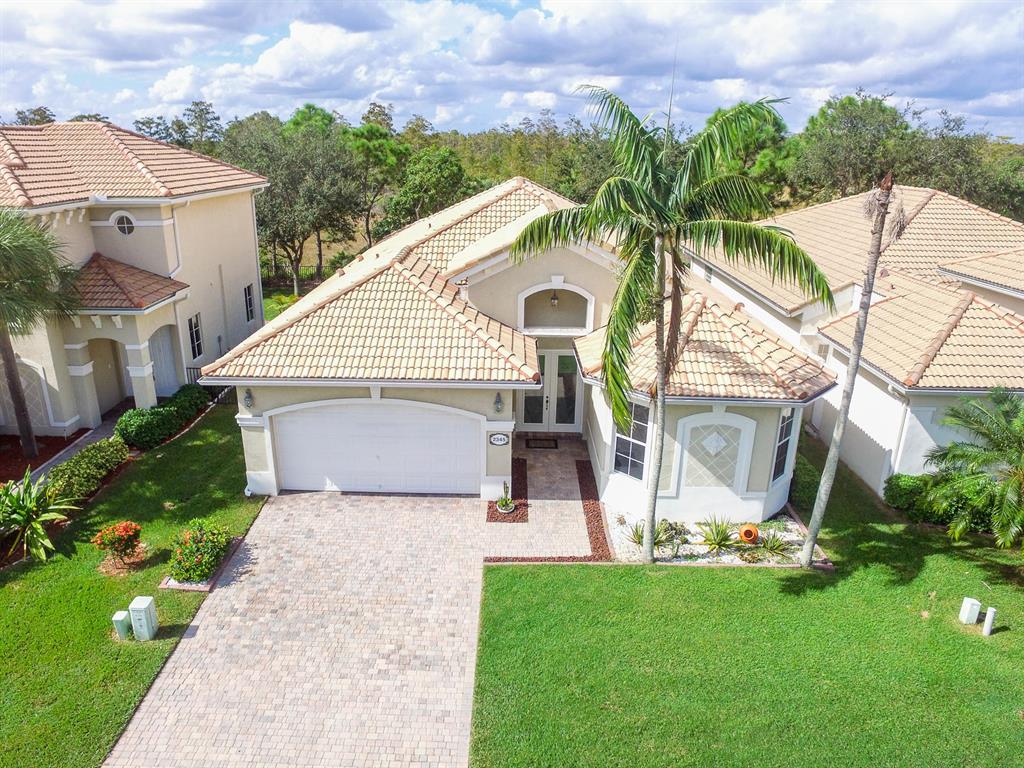 This spectacular home is located in Andros Isle on a cul-de-sac road. Outstanding preserve view. Home has been elegantly decorated and meticulously maintained. Beautiful etched glass doors lead into the foyer and soaring 10' ceilings. Highly sought after, split Bedroom, Jasmine model. Features a RARE 4 Bedrooms & 3 Full Bathrooms. Magnificent design details; tray ceilings, crown molding, upgraded baseboards, gleaming ceramic tile and engineered wood flooring, plantation shutters, updated Kitchen newer appliances including washer/dryer. Wonderful gated ALL age community with resort style amenities and activities. HOA includes lawn care, cable, internet, home security and MORE! Best overall value for an association in the area! 100% financing also available. Come live the Florida lifestyle!