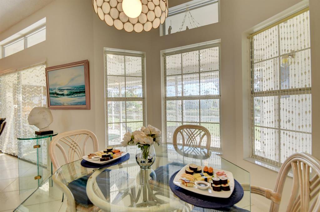 Exquisite home with great curb appeal & fabulous lake views from almost every room. This well-maintained home has been loved by the original owners. Spacious, light & bright w/very high ceilings & tons of windows. Upon entering, enjoy the sense of openness, volume & space. Featuring 4 large bedrooms/2 bathrooms/2 car garage on a large lot 9,829 square feet. Enjoy the enormous screened in/covered patio with 2 ski lights so you can relax & take in the lake views! Oversized Kitchen with tons of cabinets & counter space with a sunny, lake view eat in area. Large family room off the kitchen. Separate formal dining room and separate formal living room. Tons of closet space. Washer/dryer inside/larger driveway than most. The dining room chandler is excluded. Accordian Shutters/newer roof