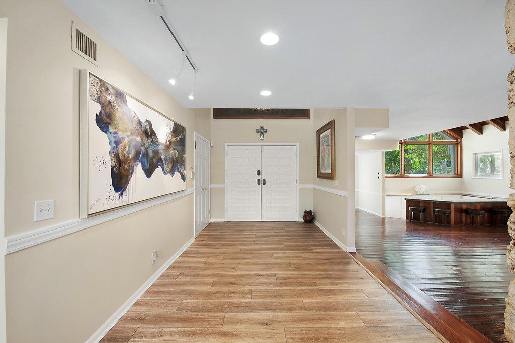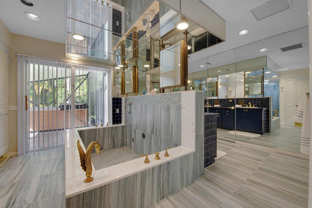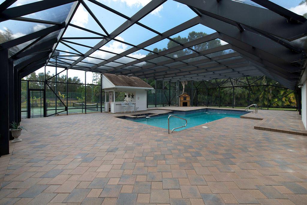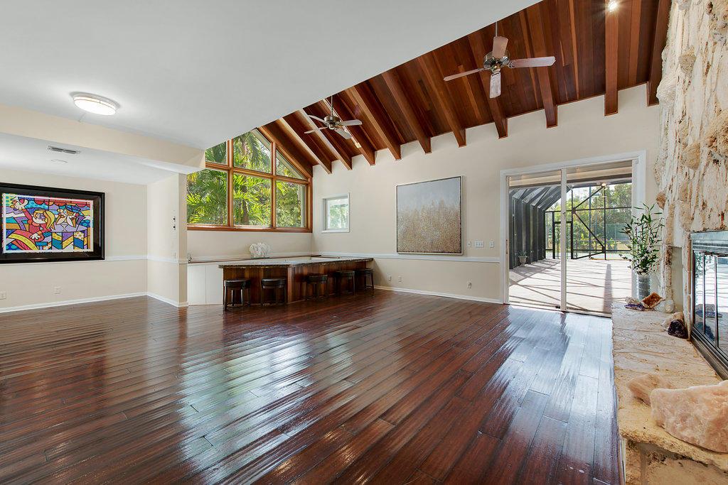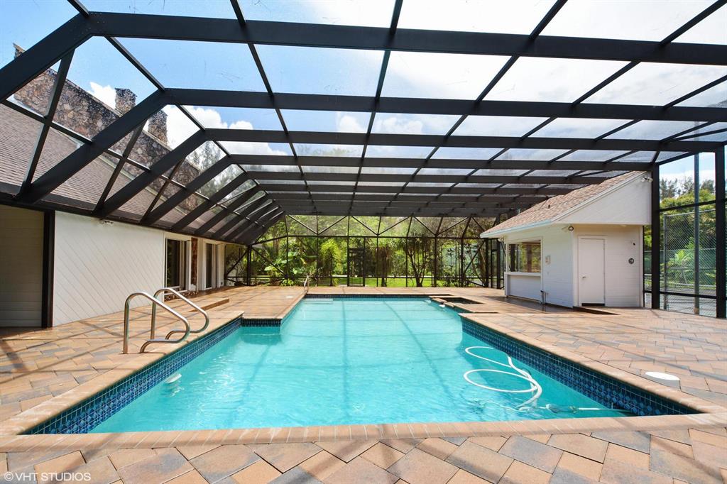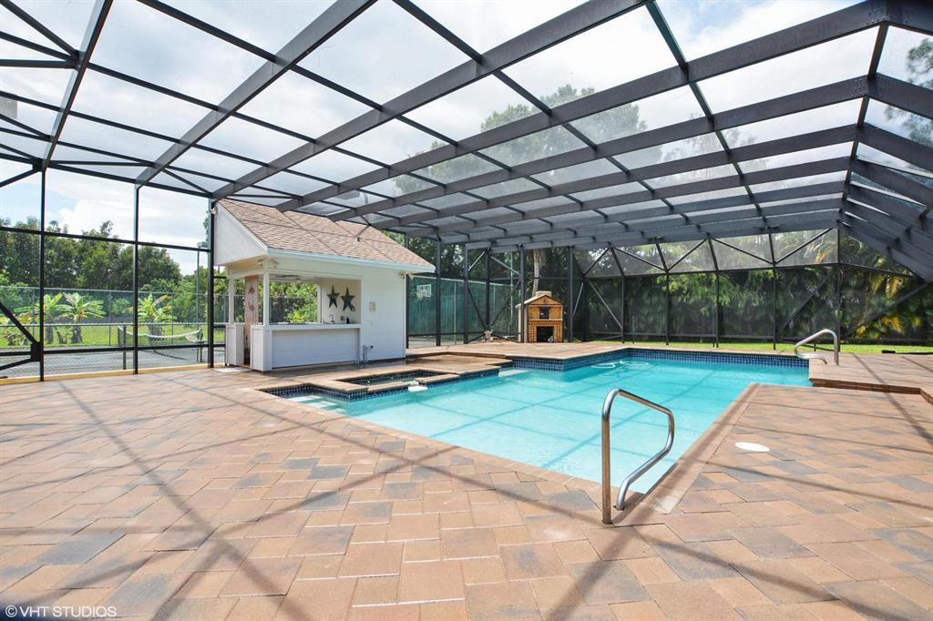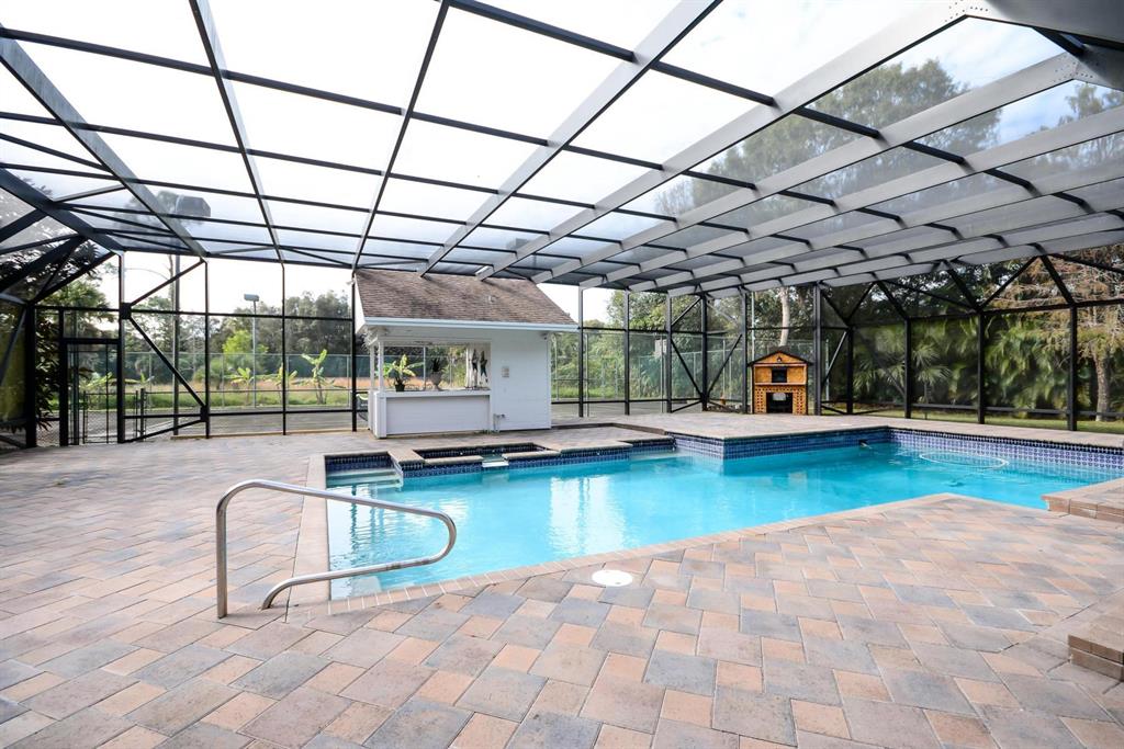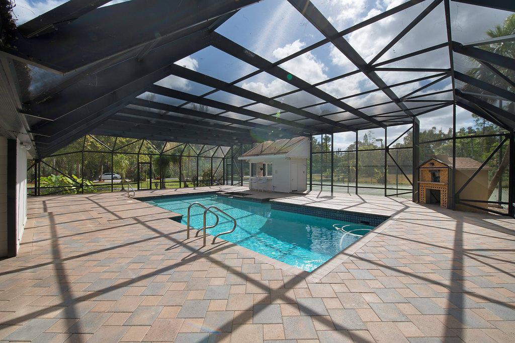 Spectacular, one-of-a-kind home, in the desirable Thousand Pines community! This is a gated neighborhood with 53 homes on 1+ acre lots in the heart of W Palm Beach! The home has over 5426 square feet of living area and 6325 total square feet with 5 bedrooms, 5 full baths, and 2 half baths. Some of the many unique features include a stunning dark wood spiral stair case, framed by a two story window. A great room, with magnificent ceiling height, exposed wood beams and a coral/coquina wall, wood-burning fire place, and wet bar. Updated kitchen with a large island. New wood and wood tile plank flooring throughout the home. A 40 foot pool and large patio area with a cabana and pizza oven! Lighted tennis courts, safe room, dog room, and much more! Must see it to appreciate its uniqueness.