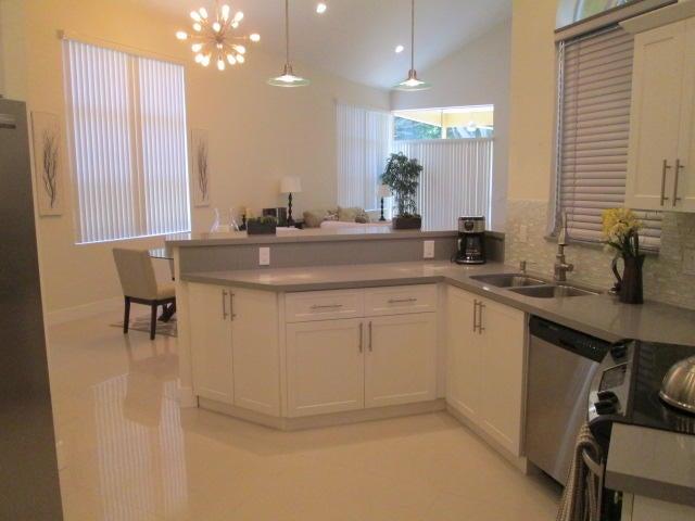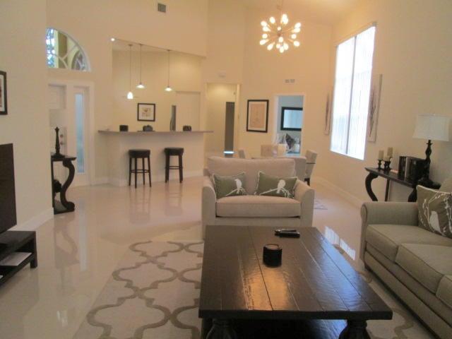 Beautiful 3-bedroom, 2-bath home in the Banyans at Broken Sound. This home has been totally renovated with custom, designer finishes: 32'' porcelain tile throughout, stainless appliances, solid-surface counters, custom baths, all fixtures, new roof, and much, much more! Enjoy the Country Club life at Broken Sound! Community pool and playground conveniently located within this gated community.