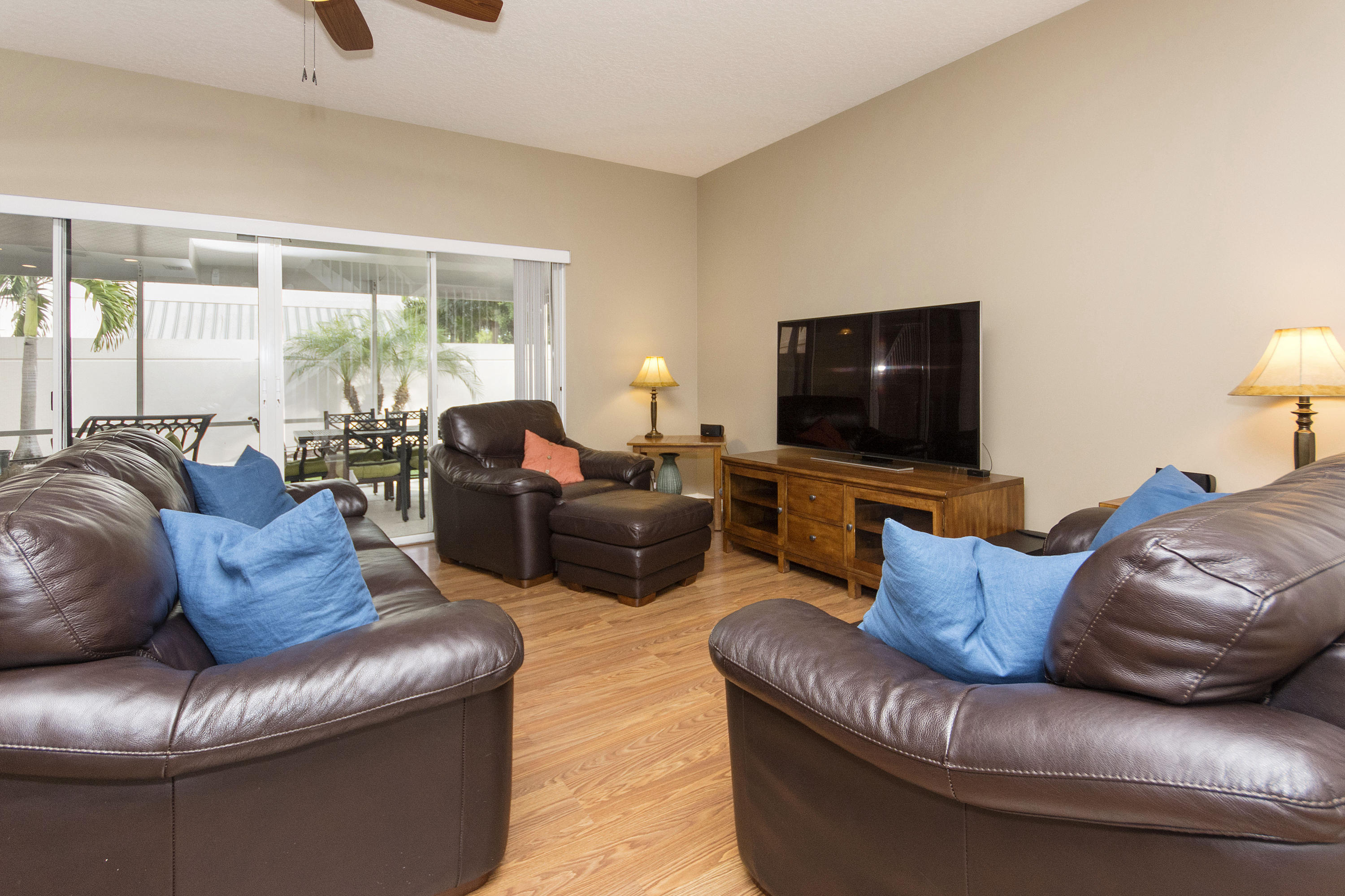Beautiful, perfectly maintained end unit on a quiet, quaint street in the sought after RiverWalk. Your private entry leads you inside to wood flooring, granite kitchen counters and stainless steel appliances in your beautiful bright kitchen! Enjoy summer nights or a cup of coffee in the morning on your screened in patio! The community offers 3 pools, tennis courts, full gym, post office, walking paths w/ lake views, hair salon, bank, clubhouse and gourmet marketplace with diner. cable & lawn care is included. A MUST see!