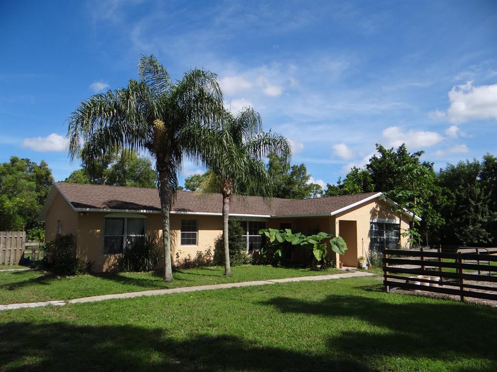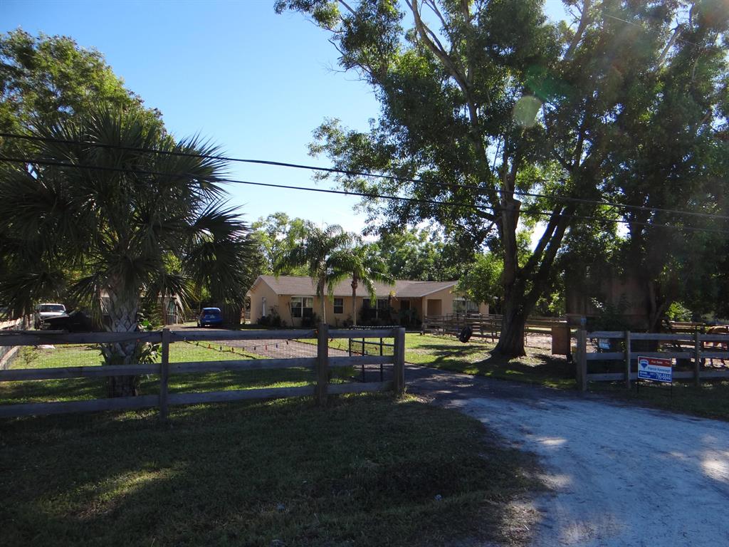Nice 3 bedroom 2 bathroom home on the southeast side of the acreage. Very easy access to both Royal Palm Beach and the SR 7 Extension. Home sit on 1.25 fully fenced acres with no pond. Pole barn for the horses and plenty of outbuilding storage. Newer roof and A/C. Master bedroom is ADA complaint.