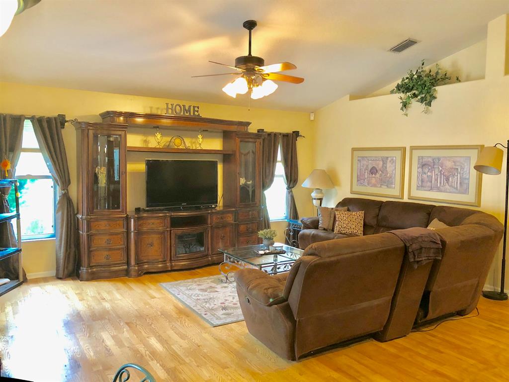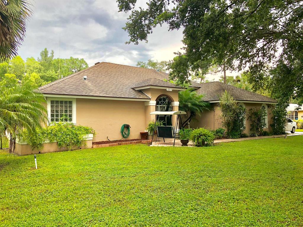 First time ever being on the market! This home has been lovingly cared for by the original owner. The gorgeous lot has mature oak & pine trees plus mango & avocado. The full concrete driveway leads to the side entry 2 car garage. Follow the path to the French Doors complete with disappearing screens so you can leave the front doors open on beautiful weather days. Gorgeous wood floors throughout most of the home. Foyer includes a coat closet. The Dining Area is being used as a den. Both Living & Family Rooms include French Doors to the covered, screened patio. Planter shelves located throughout. The amazing kitchen includes a large breakfast bar, double oven, pot drawers, pull out shelves including the pantry, built in Spice Rack, lazy susan & a pot rack. Granite counters & Sink.