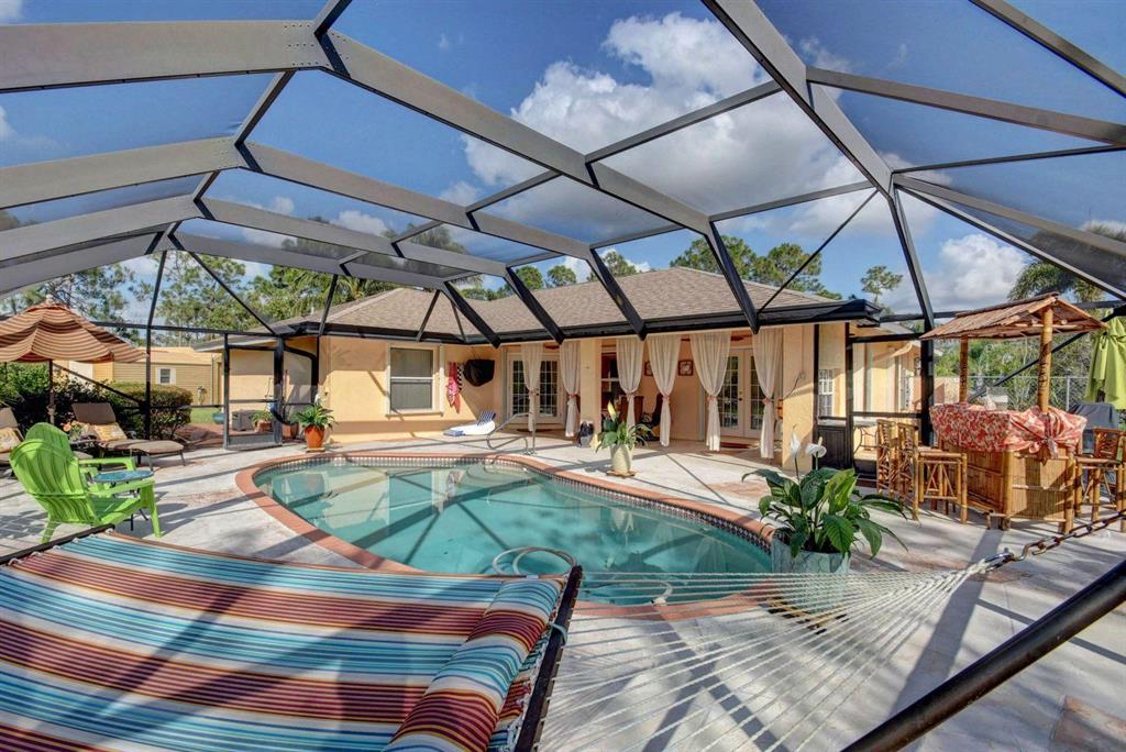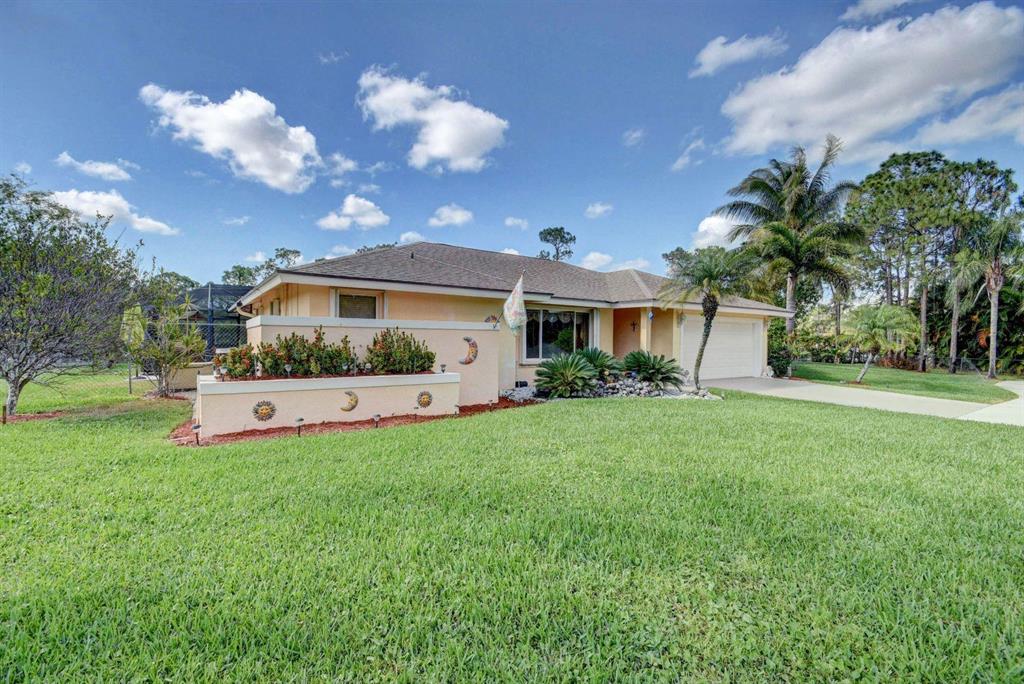 Paradise awaits with this amazing 3 bedroom/2 bathroom home with NO HOA! Single level, immaculate, relaxing living at its finest...shows like a model! This pristine home boasts over 2000 sq ft of living space, 2 gated entries, situated on over an acre of land, 2 separate sheds with electric, wood burning fireplace, large kitchen with granite countertops, split bedroom plan, large master with separate roman tub, accordion shutters throughout, beautiful screened in pool and tons more! Come see & make an offer!!
