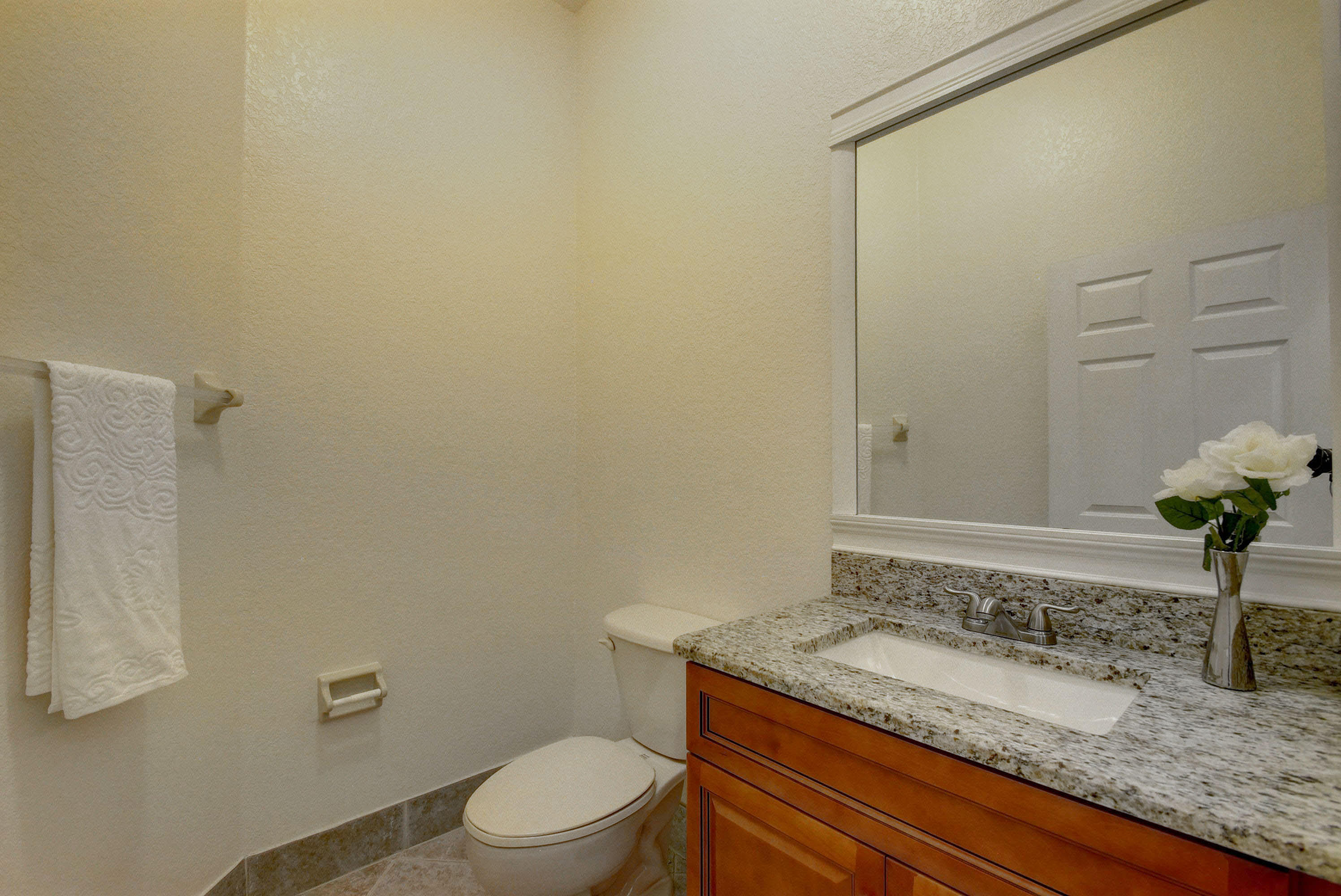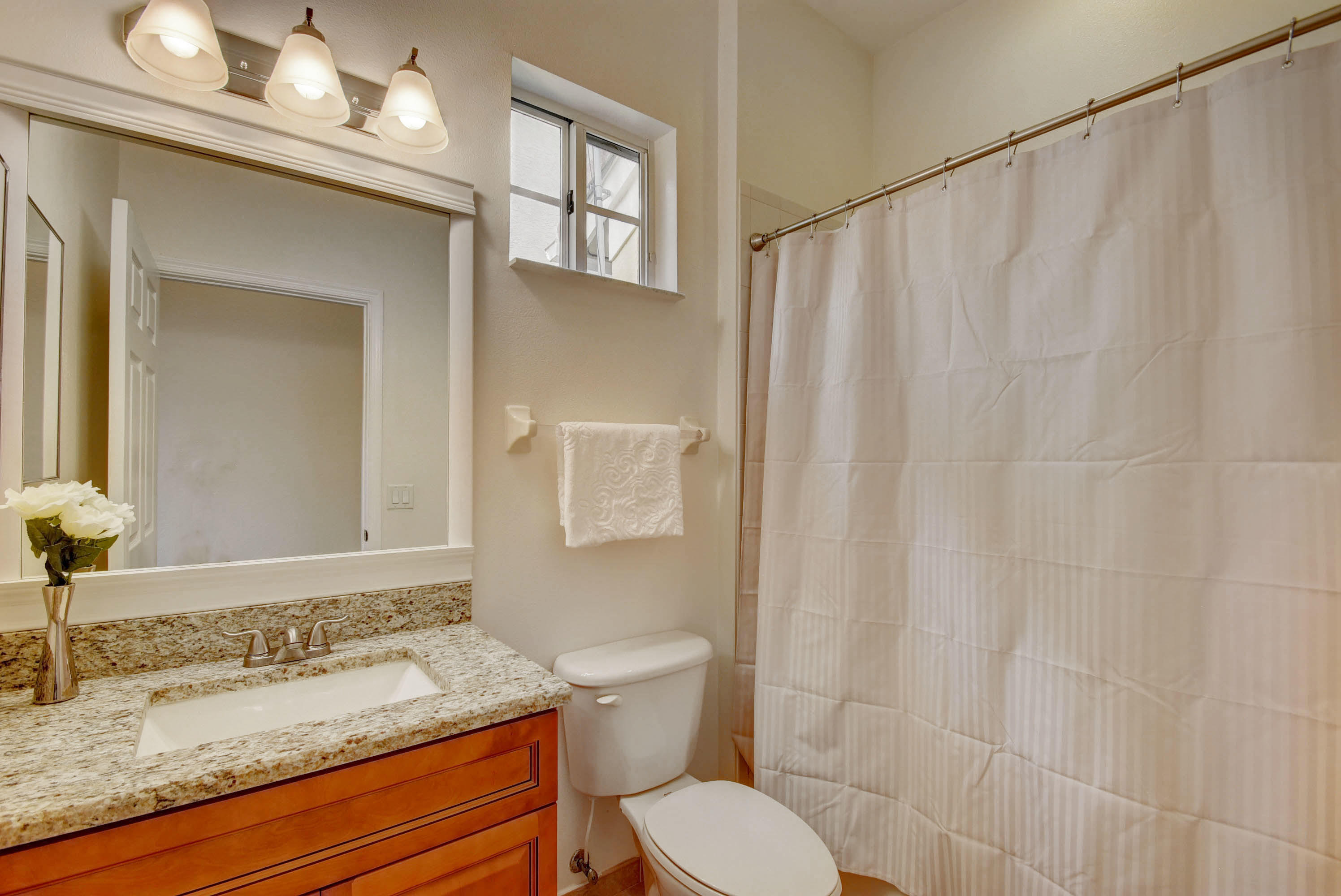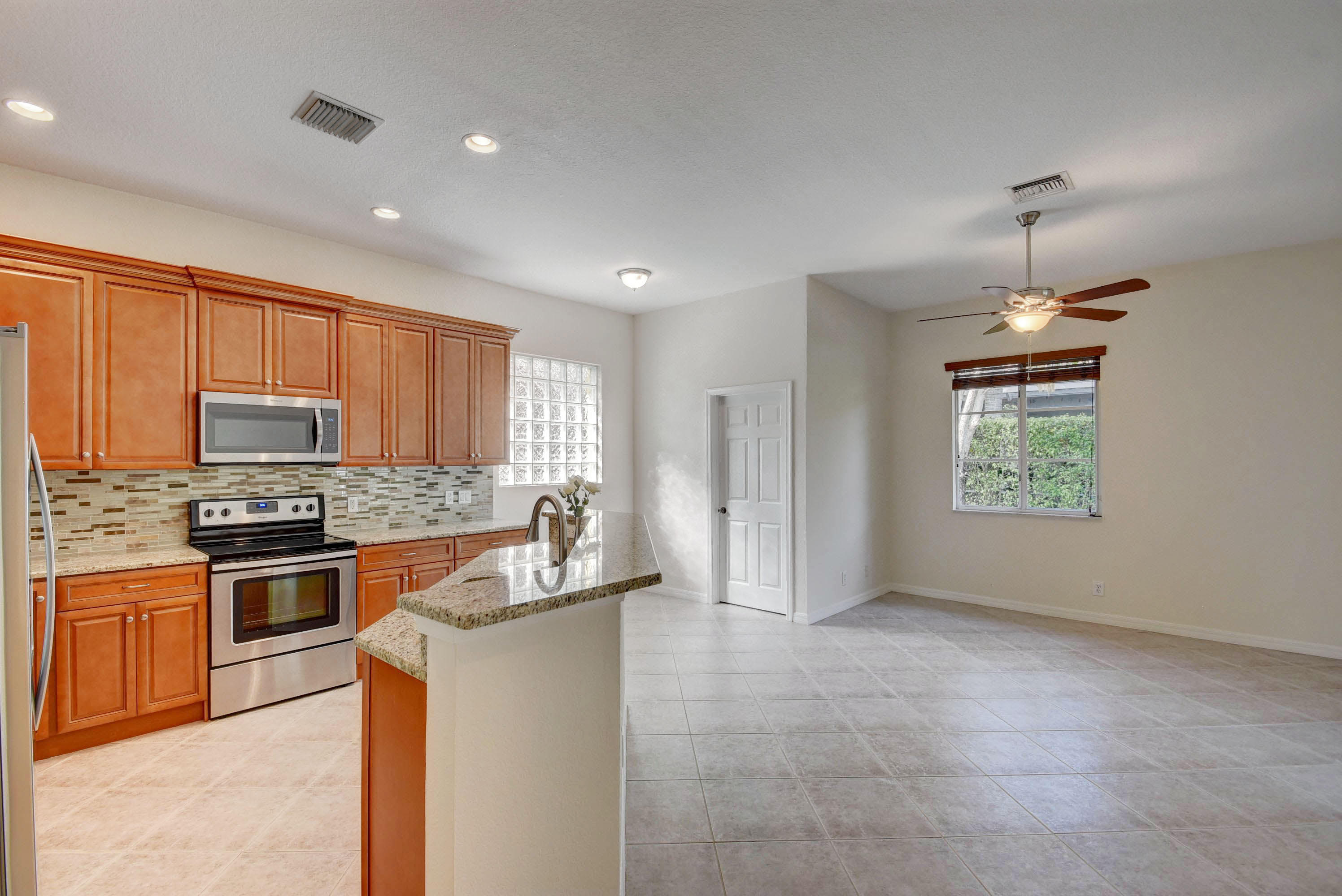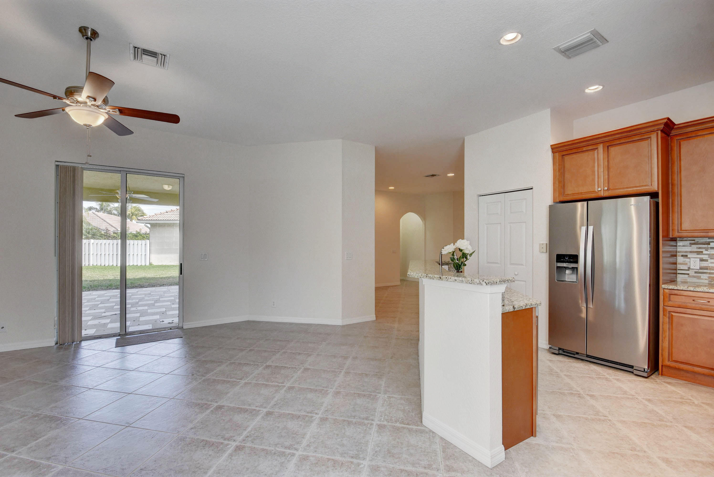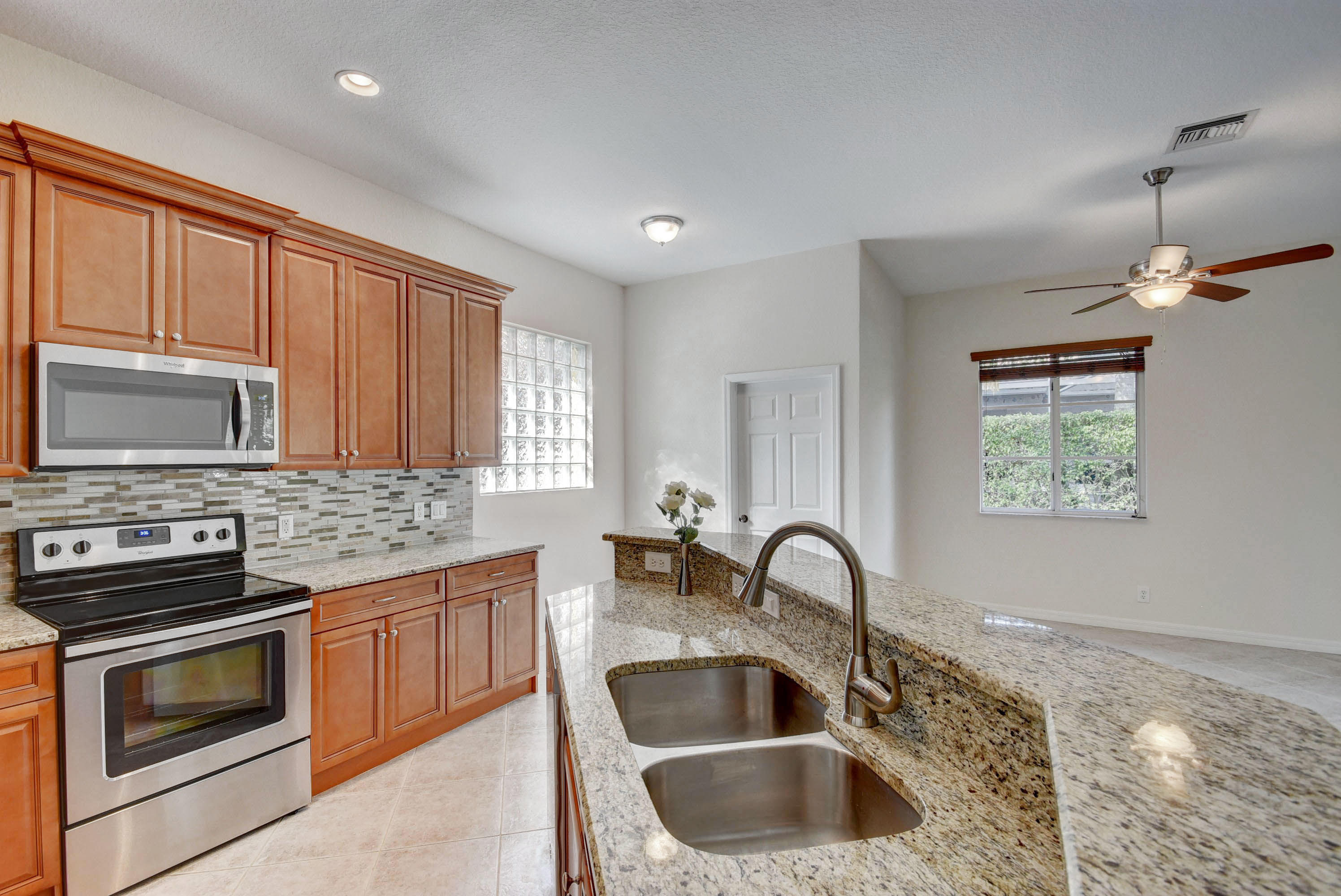 Move-in ready, freshly renovated home on a large cul-de-sac lot. This home has two and a half baths, each with a new granite vanity. The new kitchen has 42'' tall cabinets and new stainless steel appliances. A glass, metal, and stone backsplash completes the designer look. New carpet in guest bedrooms, and new wood laminate in master. Step outside from the master bedroom to the covered patio, where you can view the backyard space created by the pie-shaped lot. Andros Isles has resort style amenities which are included in the monthly HOA fee. You can use the large pool, tennis courts, billiards room or exercise room. The monthly fee also includes Comcast cable and internet, lawn service, and irrigation maintenance. See 360 degree views at http://vrtourhosts.com/listing/5880?nobrand