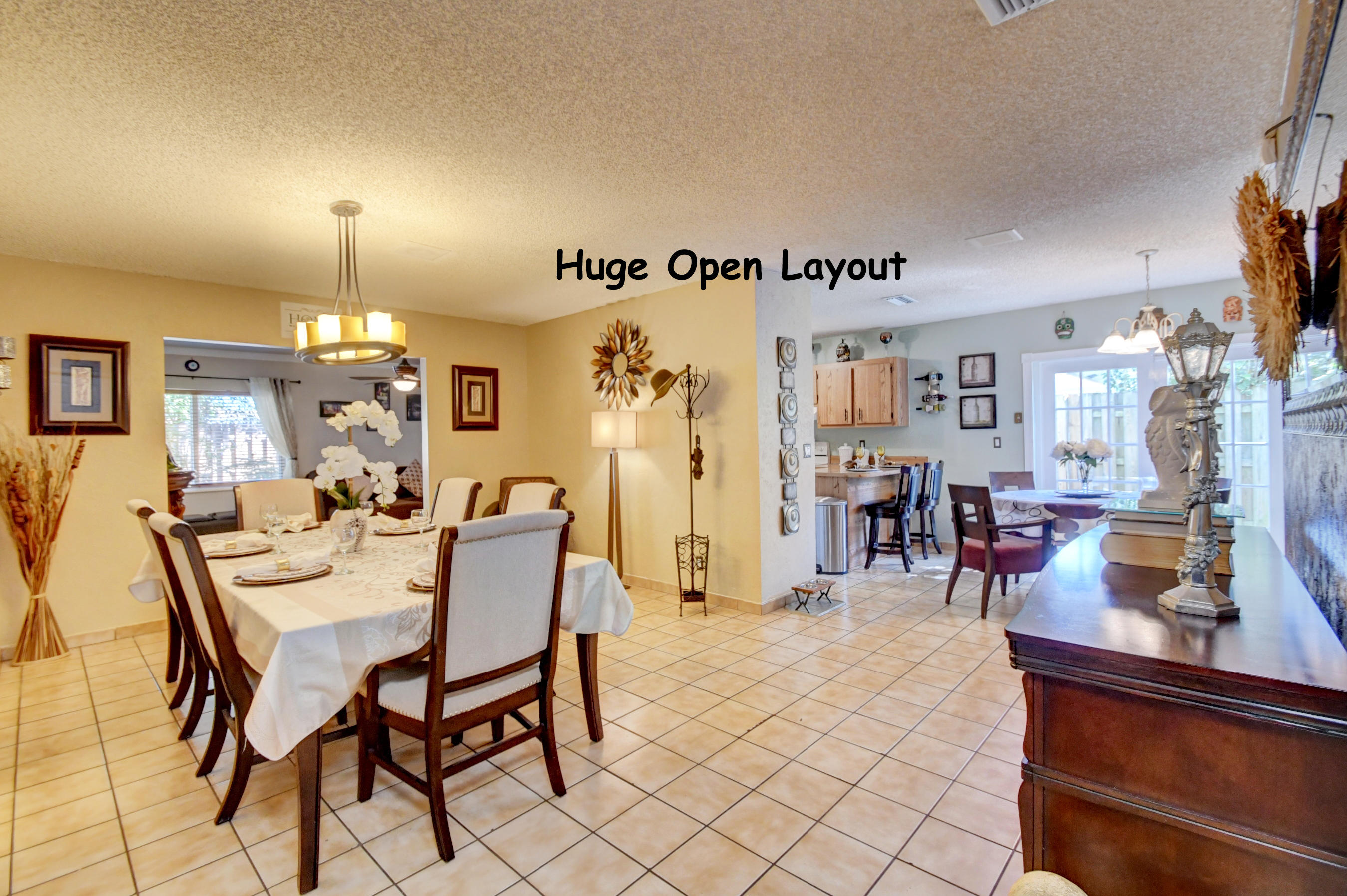 Wow!! Fabulously updated & meticulously maintained home featuring 3 bedrooms, 2 updated bathrooms, 2 car garage, large screened in patio & fenced in private backyard in Spanish Isles. Great curb appeal on the outside and just as amazing inside! Open & bright w/impact glass windows & tile flooring throughout. Two sets of french doors/one leading to the large extended screened in/covered patio and one leading to an outside eating area off the kitchen. Past screened in area, the patio is stamped concrete & has a pathway to the other side of the yard. Great house for entertaining. Ceiling fans in every bedroom/all lighting is newer and updated. Roof 2006, 2 car garage. Amazing schools! Pet friendly community! No rental restrictions. Very low HOA fee of $33 a month/no clubs to join/all ages!