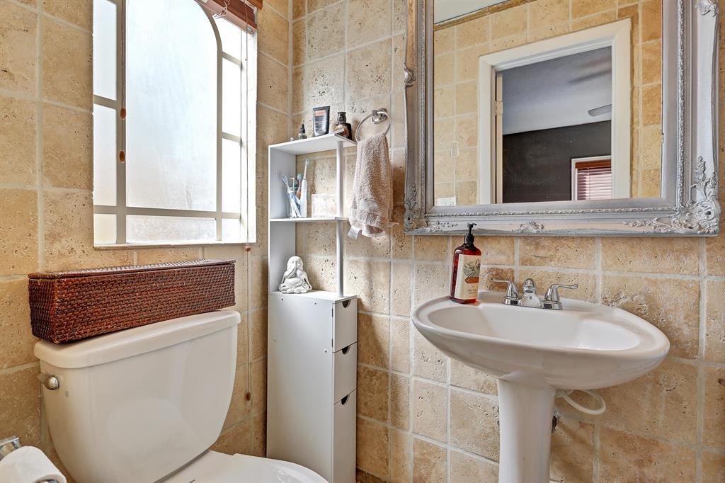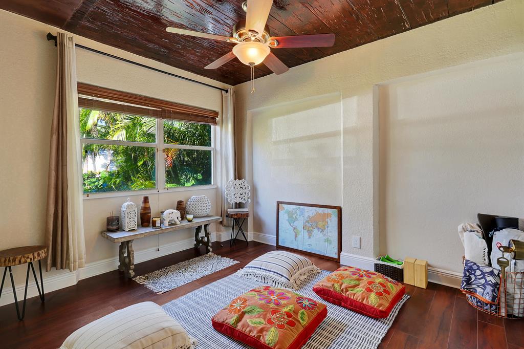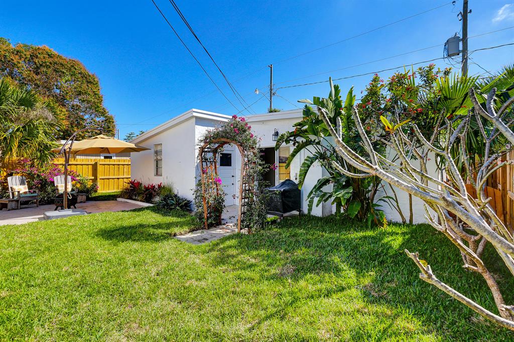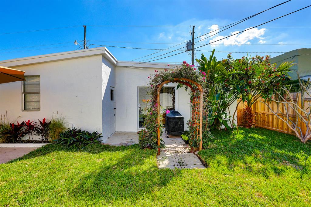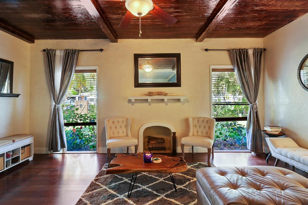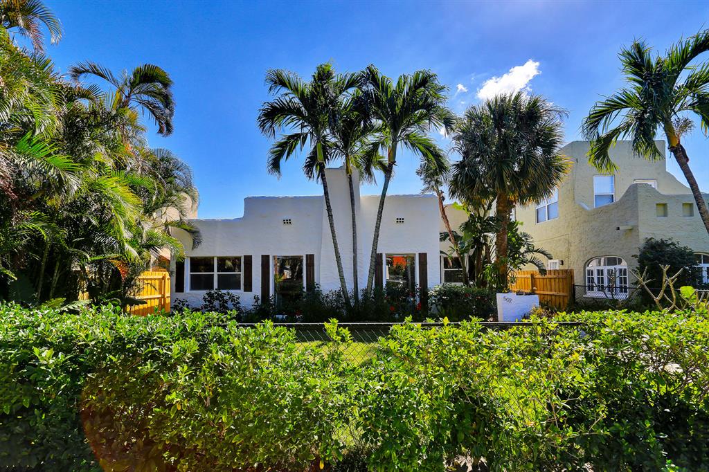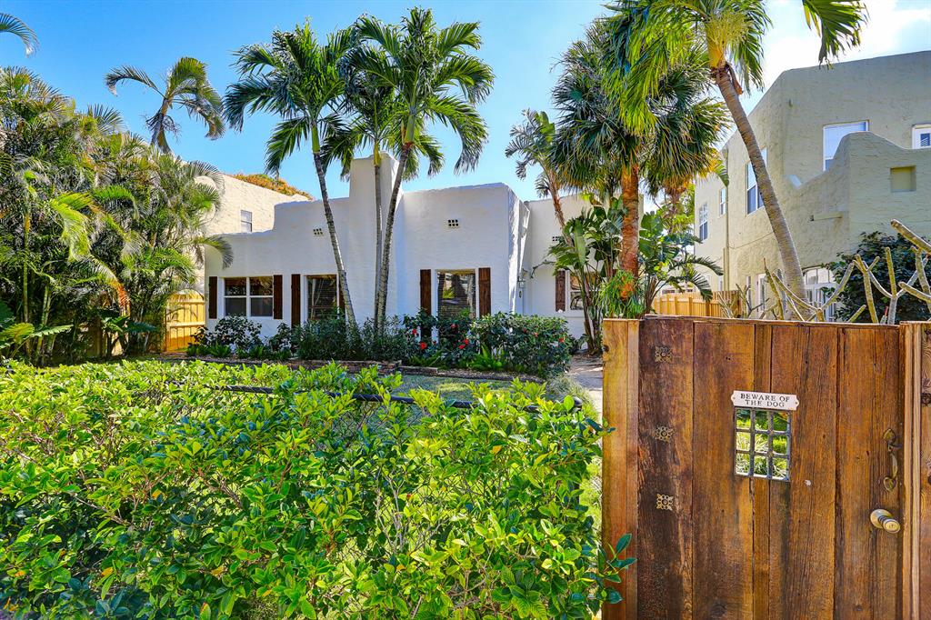 This one-of-a-kind Spanish style home with a separate guest house is located on a quiet tree lined street. The classical architectural design of this home includes: a freshly painted stucco exterior, warm Pecky Cypress doors, beamed Pecy Cypress ceilings, large picture windows, and a prominent fireplace. The main house has 4 bedrooms, 2 baths, formal living areas, and a spacious kitchen. The guest house has its own electric meter and is complete with kitchen, full bathroom and separate private entrance. The home is located on a large fully fenced private lot with a fountain, courtyard and lush landscaping. The home is fitted with Hurricane shutters, newer kitchen appliances and a tank less water heater. Located near schools, parks, roadways, beaches and downtown West Palm Beach.