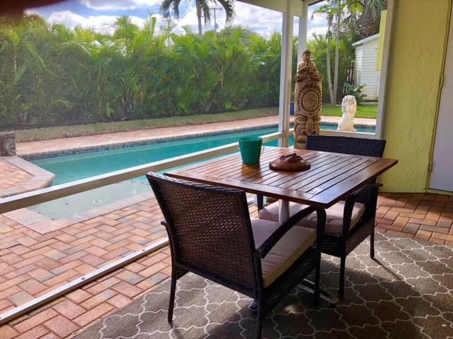 Beautiful 3br/2bth corner lot home with converted carport. Modern kitchen cabinet with light blue tiled backsplash new impact window, new roof, stainless steel appliances. Wood and carpet floors, both bathrooms have ceramic tile with imitation marble pattern floors and walls. Covered patio, in-ground pool 8 year old 4 minutes from the South Florida Science Center and Aquarium as well as the Palm Beach Zoo. 8 minutes from the airport.