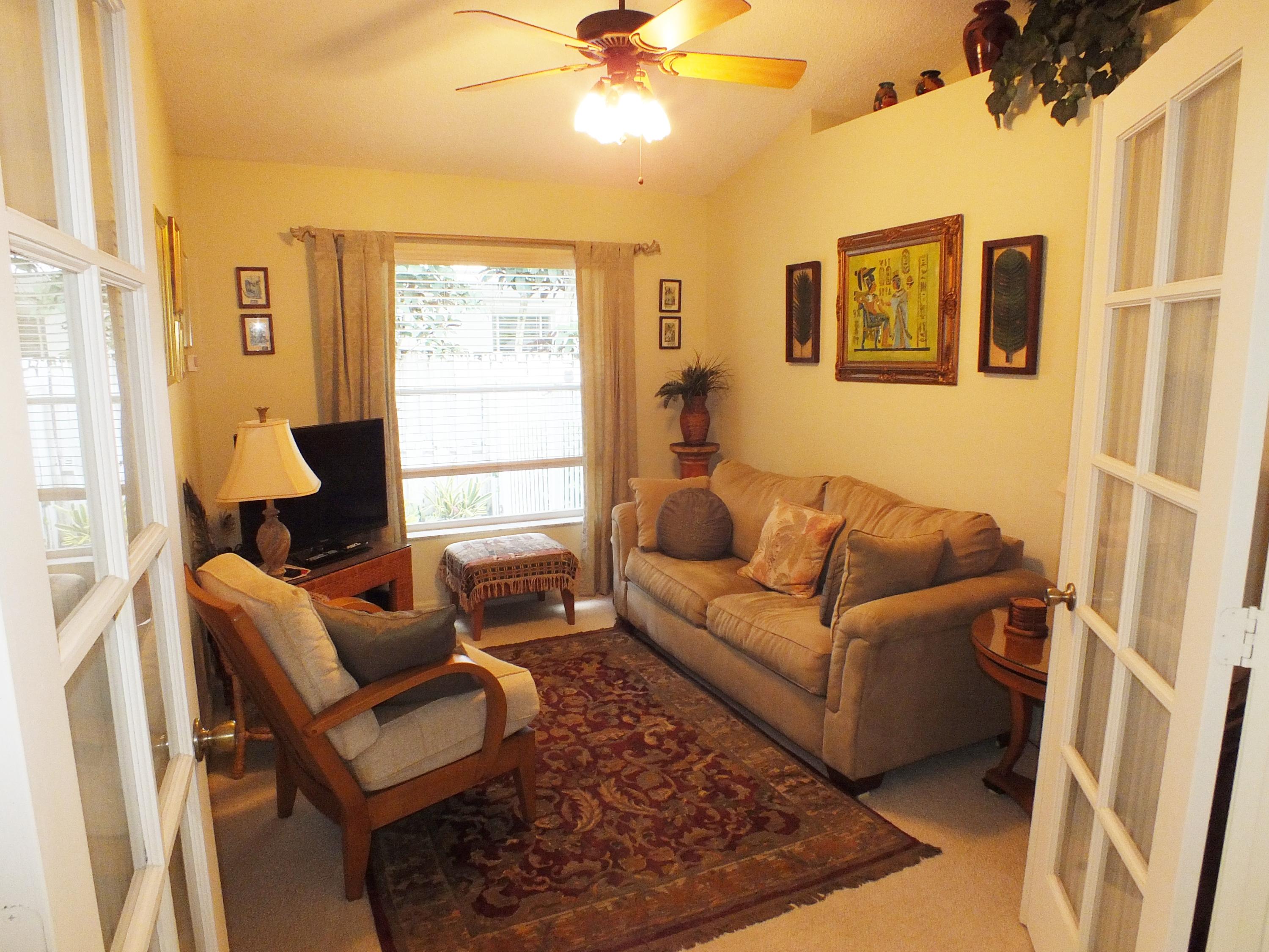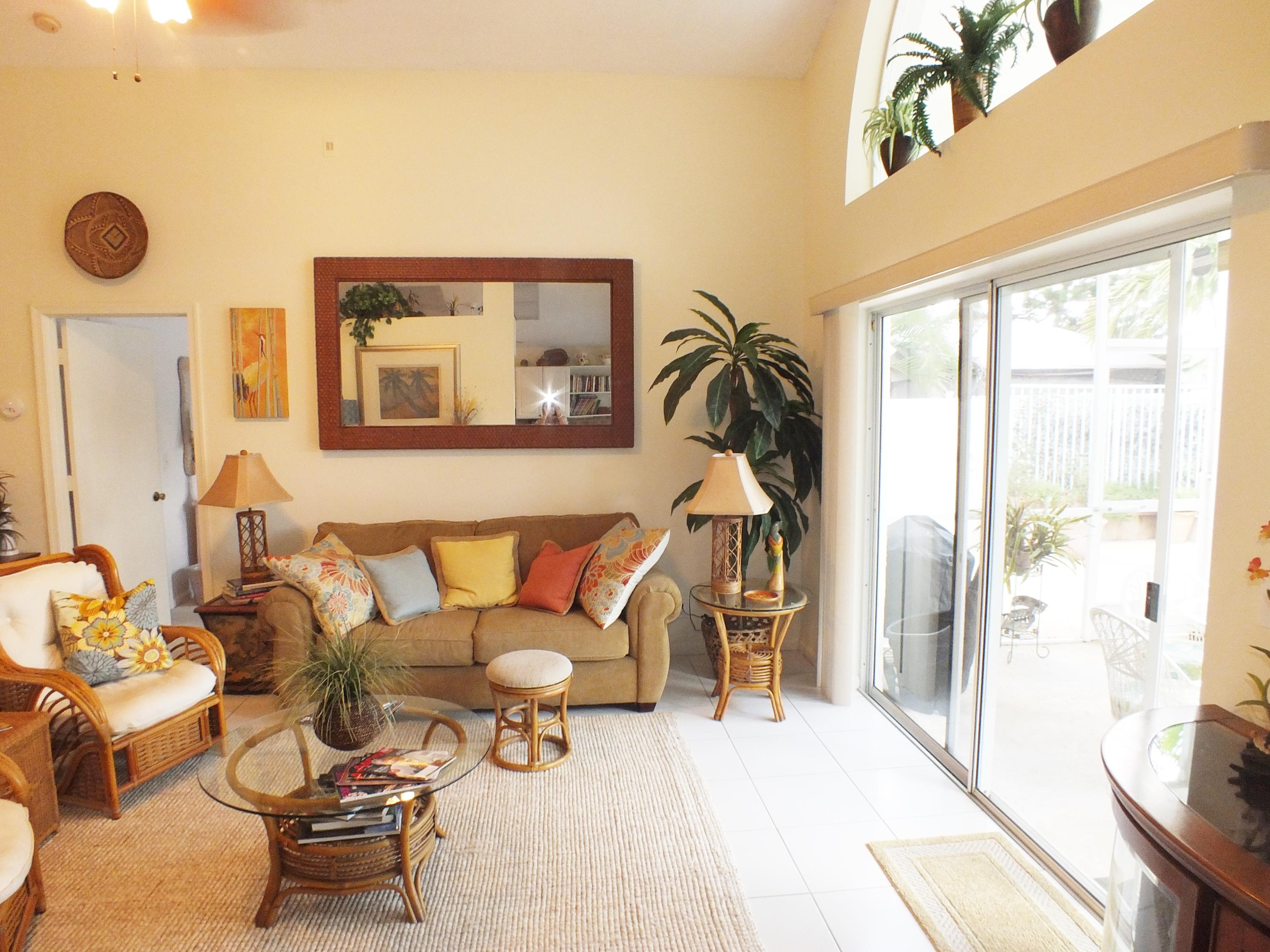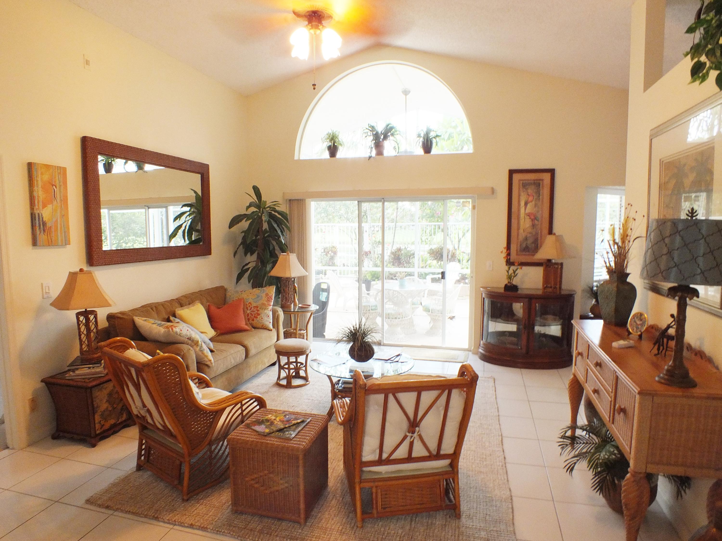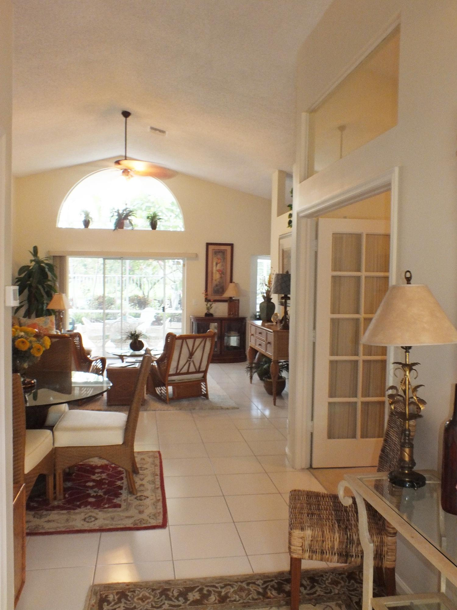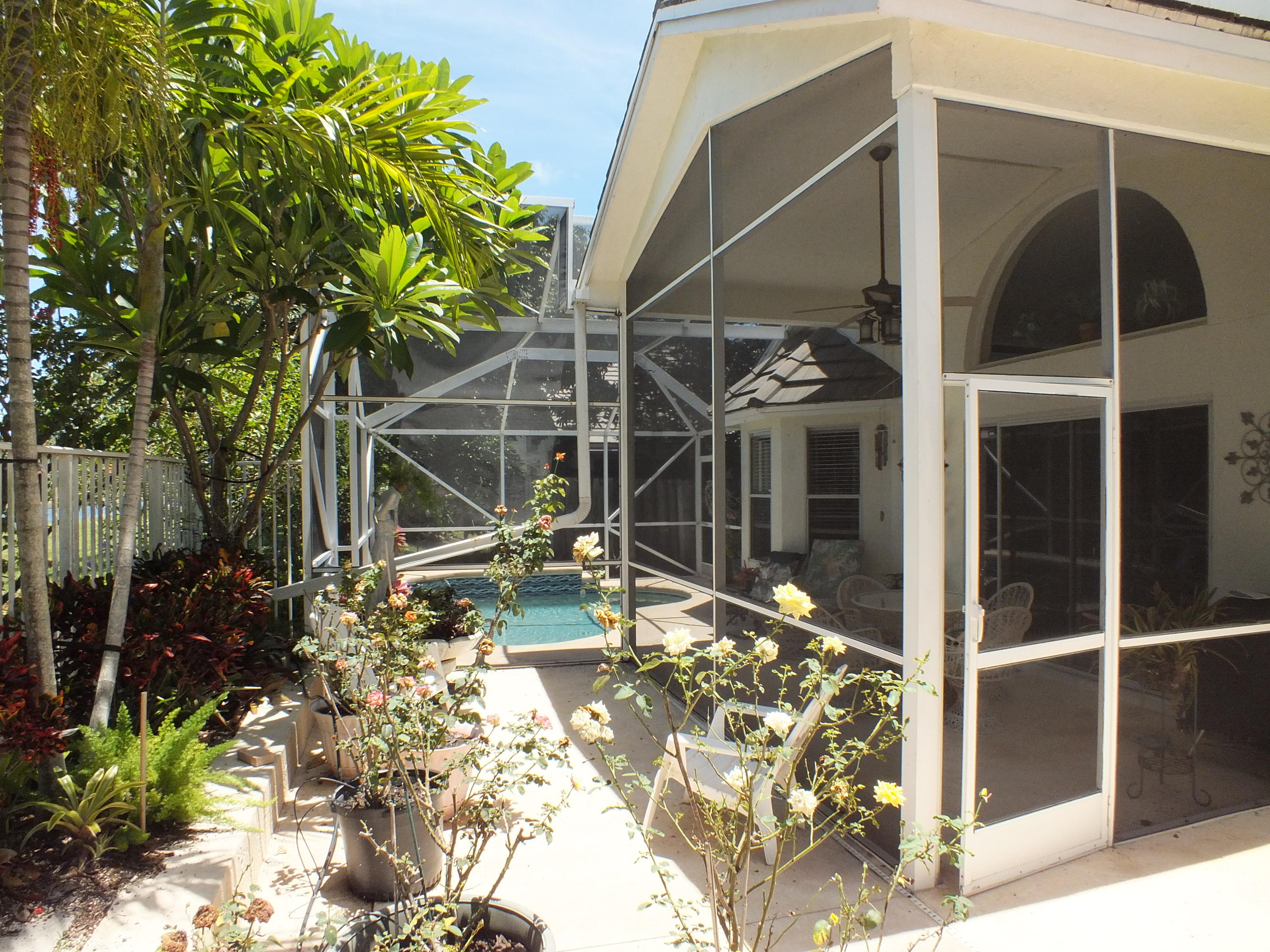 Maintained 3 Bedroom 2 Bath Pool home with 2 Car Garage on Private Cul-De-Sac located in an upper corner of Afton Ct., which has additional driveway space and a nice feeling of privacy, as it does not face any streets. Lots of Light throughout this open floor plan with expansive views of the long canal behind the house and views of water from the bay windows in the kitchen, Bedroom and from the patio doors. The canal is a water supply canal so there is no boat activity, only the peaceful rolling water. Ibis, Herons, and Spoonbills are frequent visitors to the canal. The large screened back patio area features a small pool with a waterfall. The back area also has a nice private feeling with fencing and privacy walls on both sides.