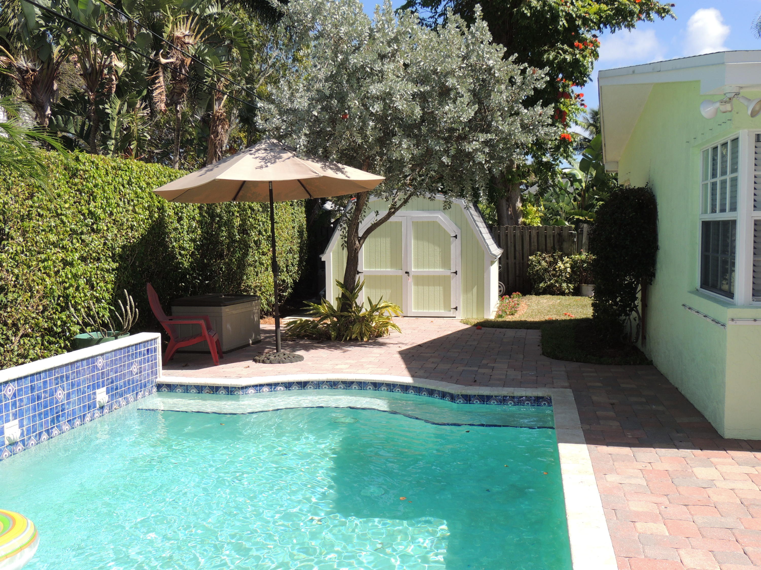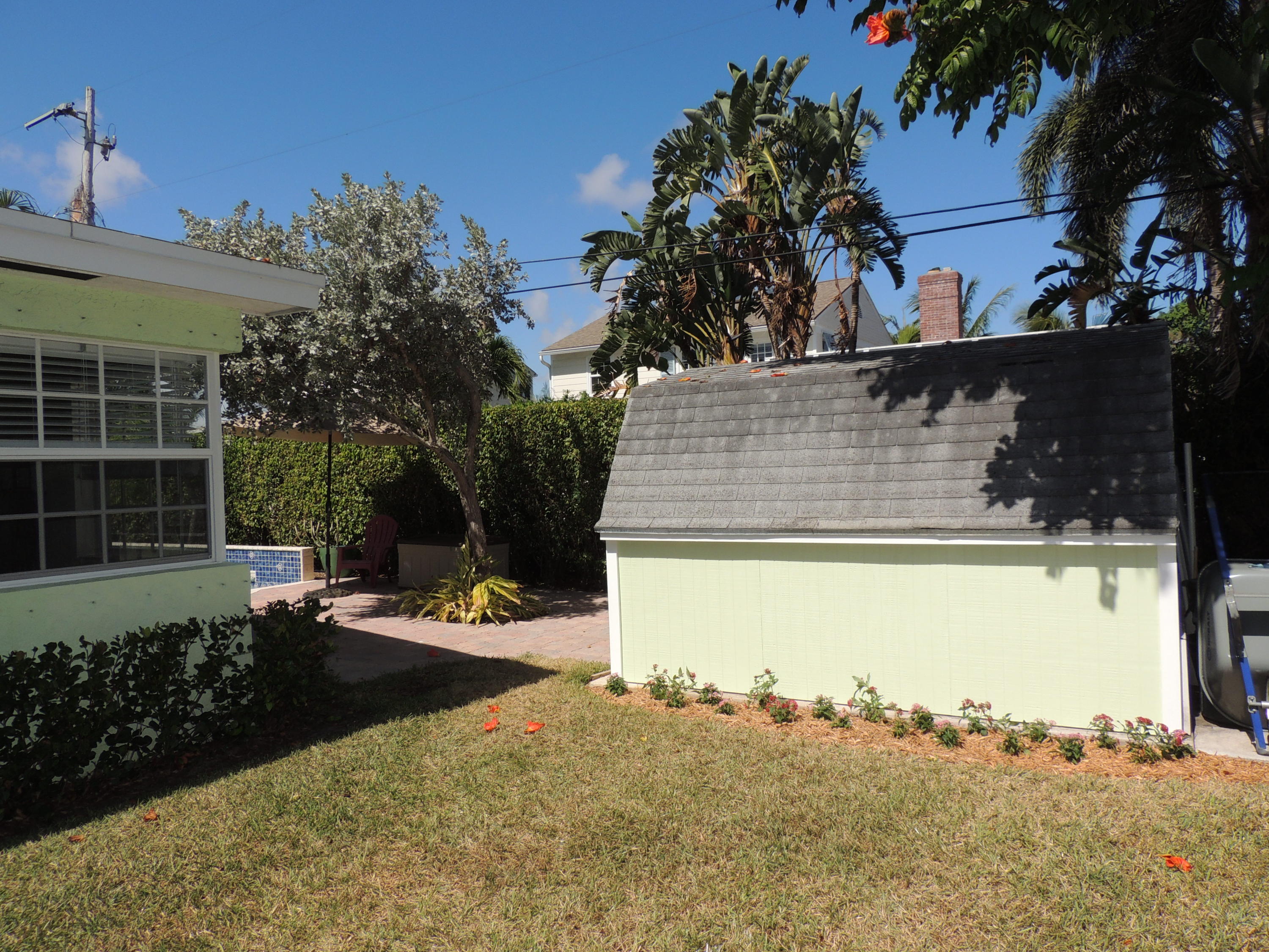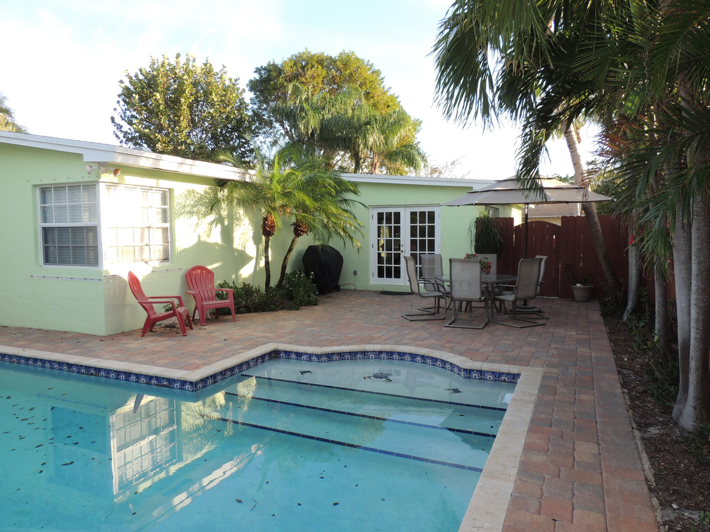 Mid Century Ranch Home located in West Palm Beach - Fabulous Southend desirable SoSo! Situated only steps to the Intracoastal waterway. Plenty of room for a Boat or RV in side yard. Updated large eat in galley kitchen features high-end cabinets, tile and engineered flooring throughout home (neutral Terrazzo flooring throughout home underneath current flooring).The backyard is private & fenced with a custom designed pool with waterfall and large brick paver patio.Ovesized utility shed for storage in backyard and nice grass area for kids playset or dogs to run. Fully landscaped and irrigated yard. The roof is 5 years only and the high efficiency A/C is 2 years old. Updated windows. This is a one of kind home, well maintained. (all room measurements are approximate) (Owner is listing agent)