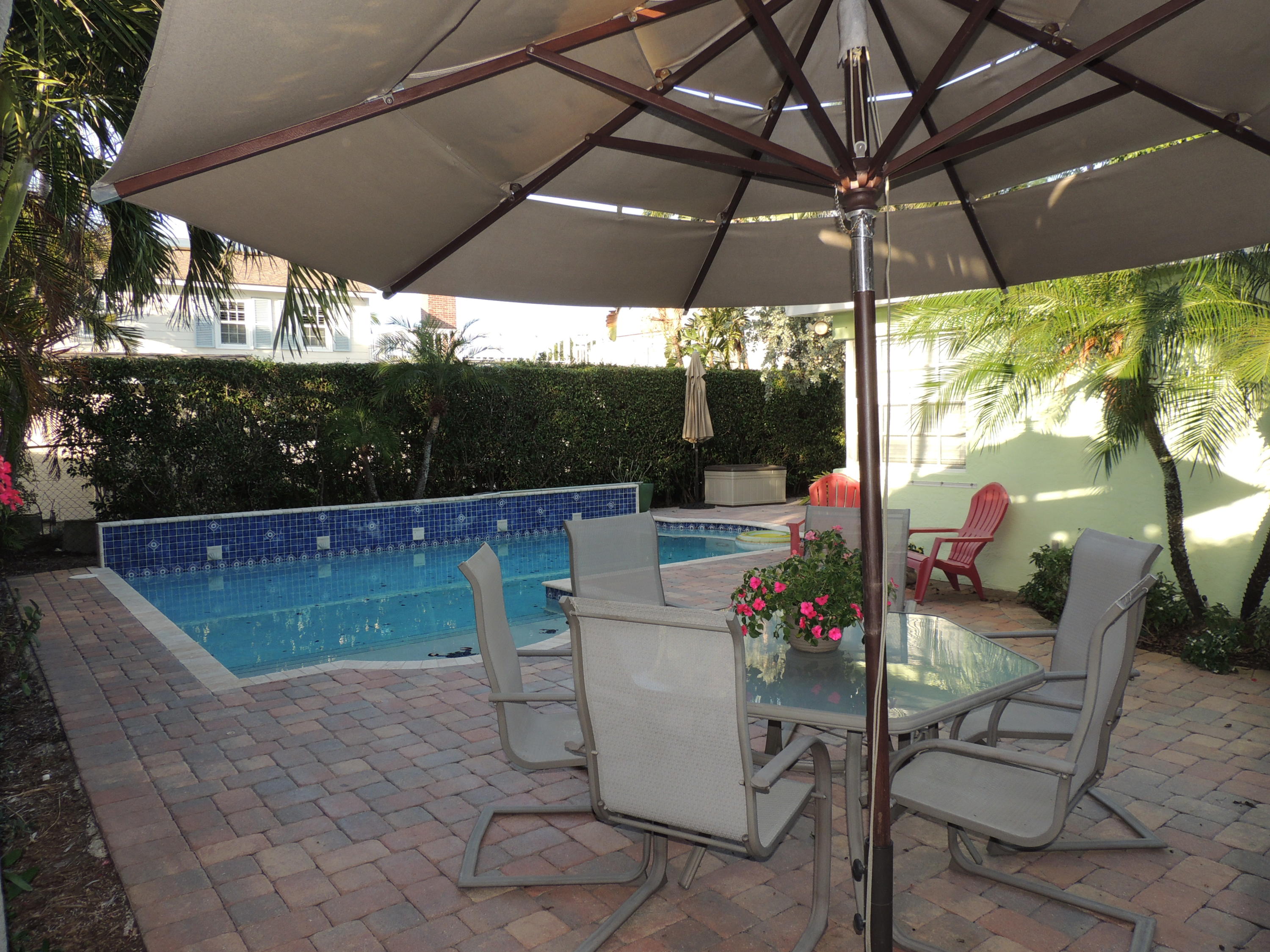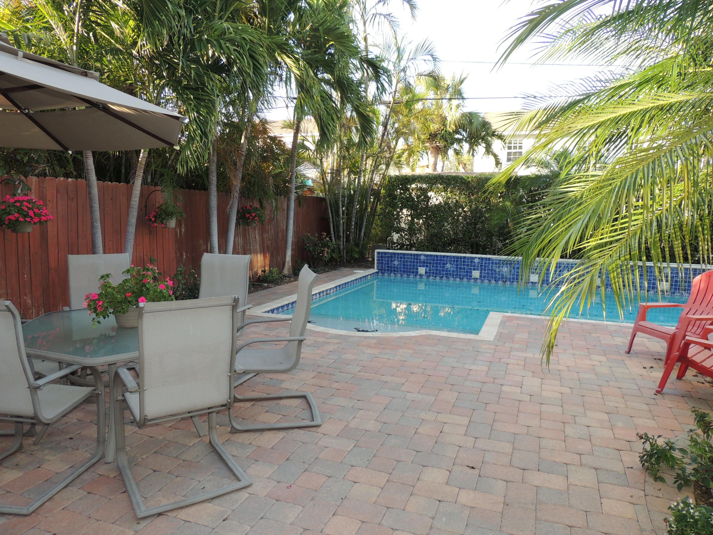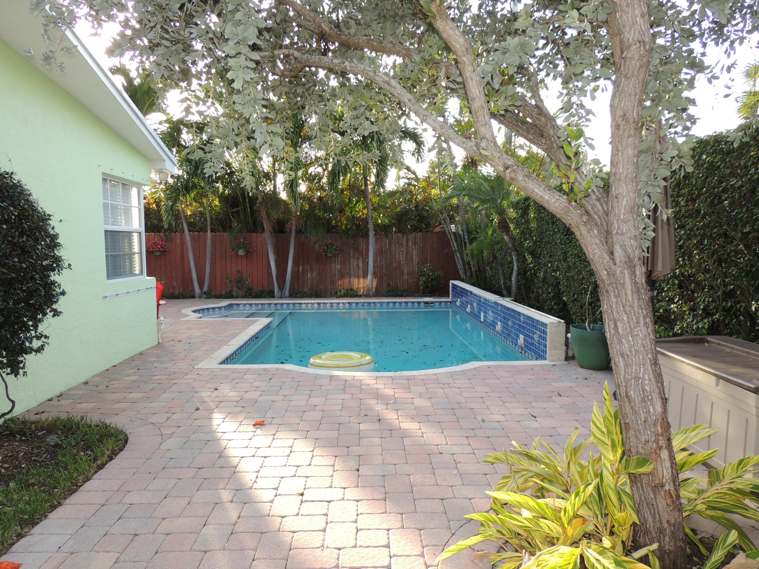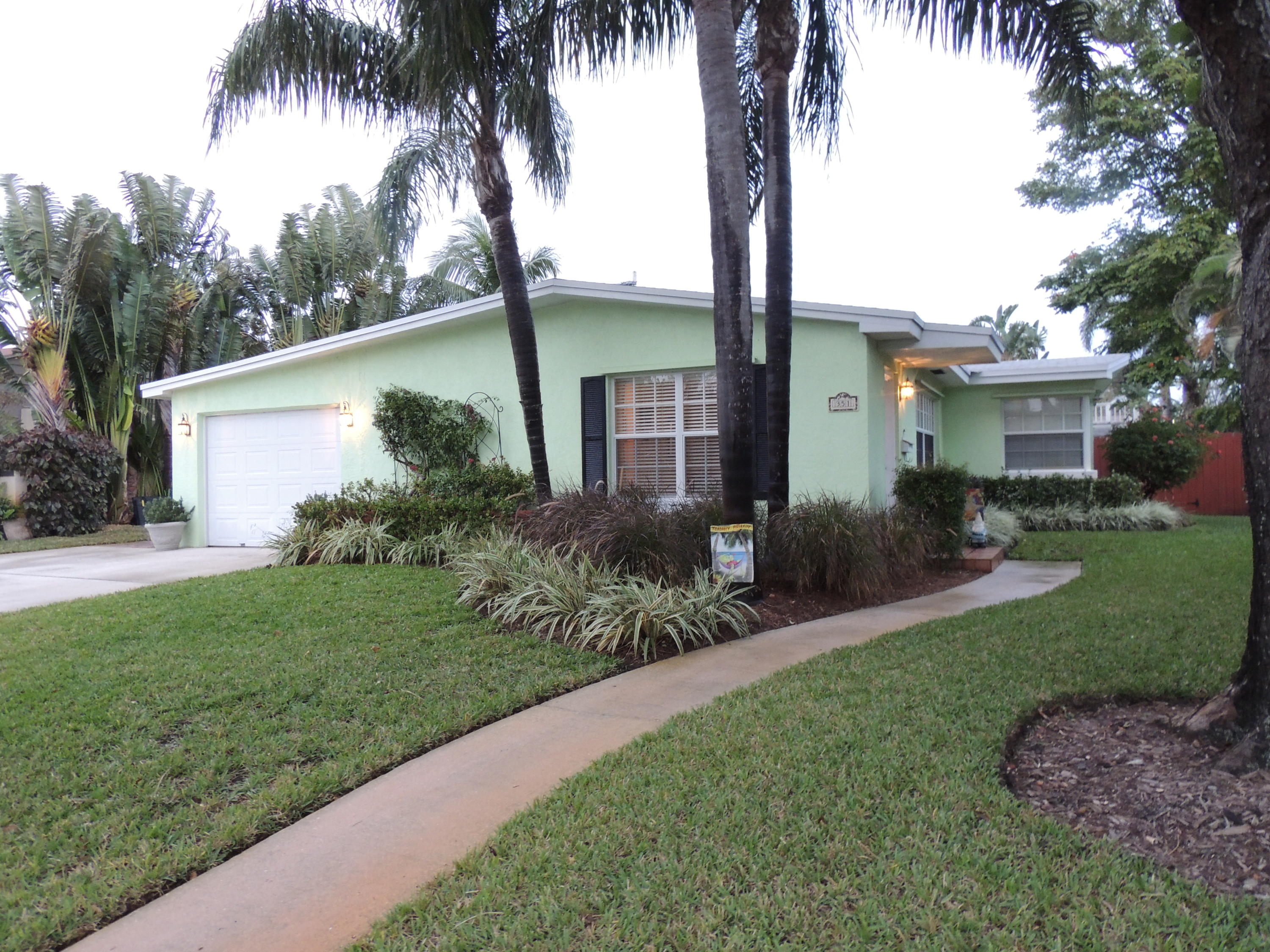 Mid Century Ranch Home located in West Palm Beach - Fabulous Southend desirable SoSo! Situated only steps to the Intracoastal waterway. Plenty of room for a Boat or RV in side yard. Updated large eat in galley kitchen features high-end cabinets, tile and engineered flooring throughout home (neutral Terrazzo flooring throughout home underneath current flooring).The backyard is private & fenced with a custom designed pool with waterfall and large brick paver patio.Ovesized utility shed for storage in backyard and nice grass area for kids playset or dogs to run. Fully landscaped and irrigated yard. The roof is 5 years only and the high efficiency A/C is 2 years old. Updated windows. This is a one of kind home, well maintained. (all room measurements are approximate) (Owner is listing agent)