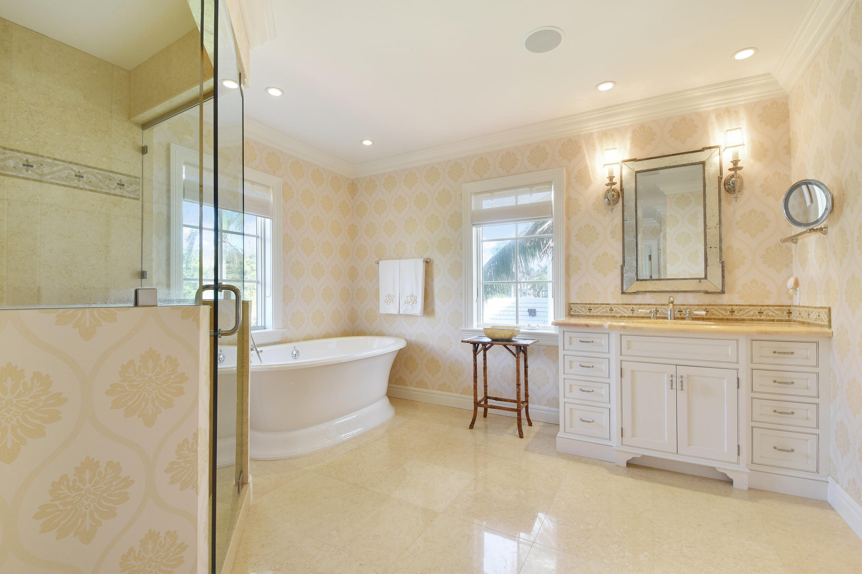 LOCATION! LOCATION! LOCATION! Just four in from the ocean. This stunning like new home is perfect for both privacy and entertaining. Impeccably maintained and hardly lived in. High ceilings, sunlight filled rooms, impact glass, gorgeous kitchen with high-end appliances, and plenty of cabinets. Spacious master bedroom with his and her bathrooms, custom walk-in closets, and oversized sun terrace. Picturesque covered loggia, outdoor kitchen, and pool with sunny southern exposure. Beautifully landscaped and surrounded by tall lush greenery and hedges. Located 3 blocks North of the Palm Beach Country Club. Deeded Beach Access.