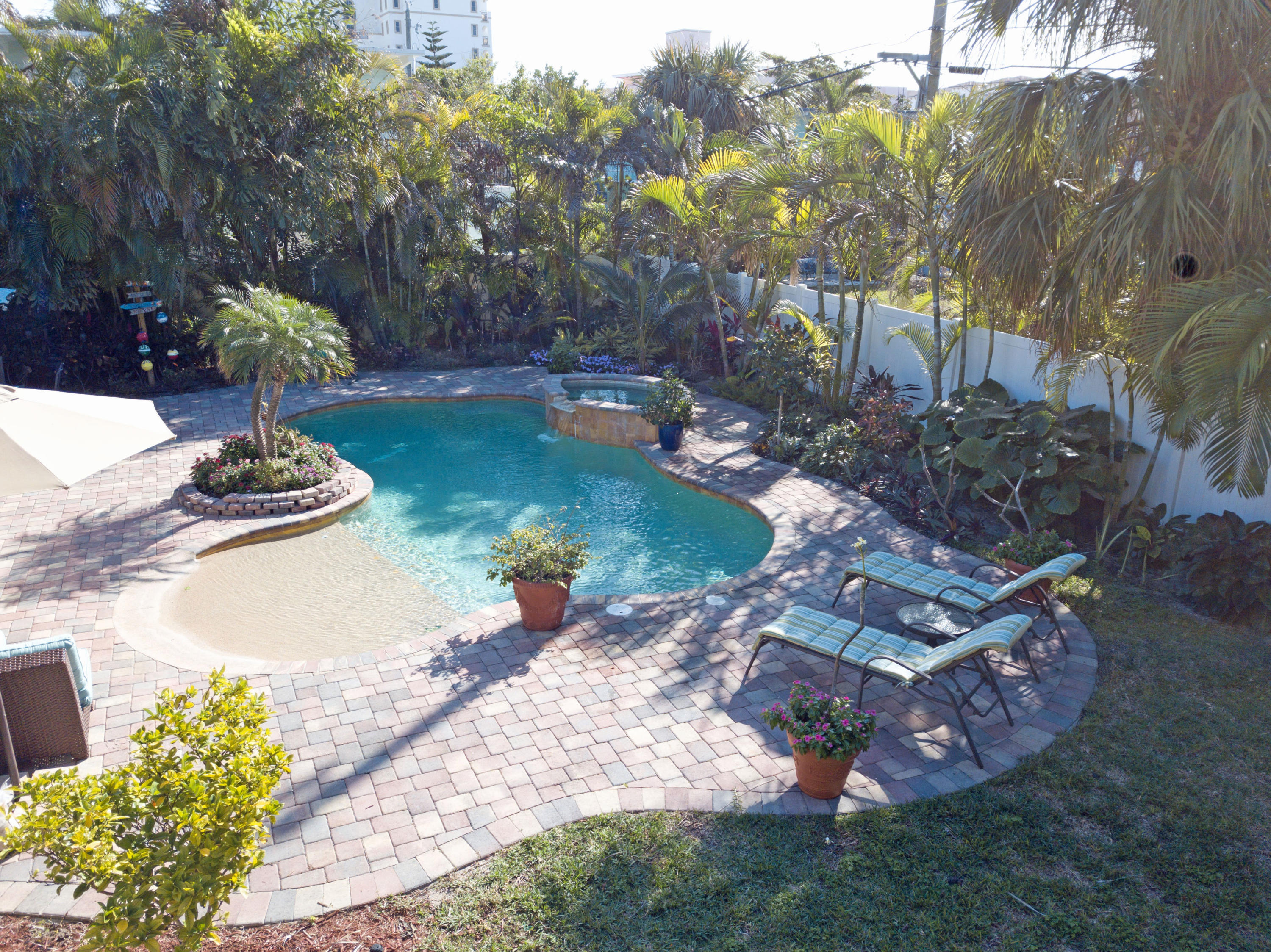 Located within a two minute walk to the beach and Inlet, this nice and tidy three bedroom home is ready for season. Beautiful backyard with salt water pool and jacuzzi and nice tropical planting's. New pool heater. Wading area for the grands. Engineered floors thru out, impact glass and upgraded kitchen and baths. One level living at its finest. Easy to show.