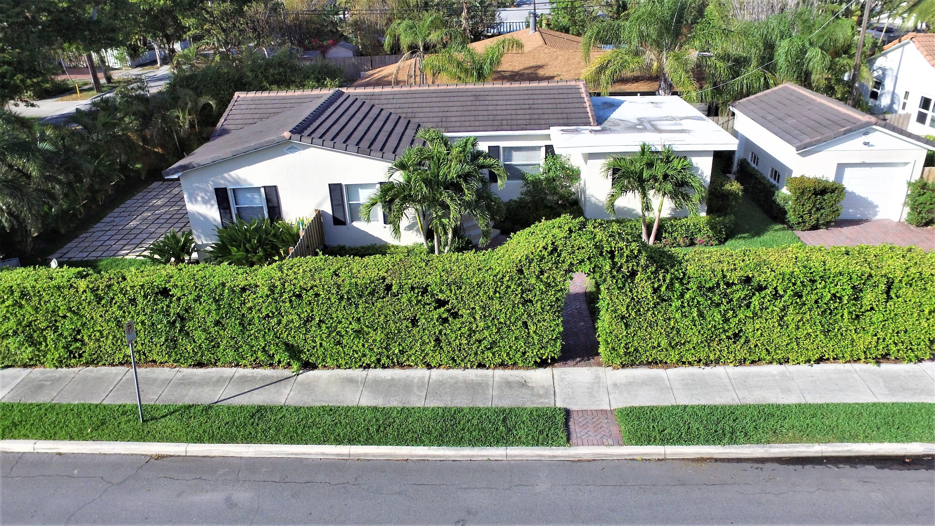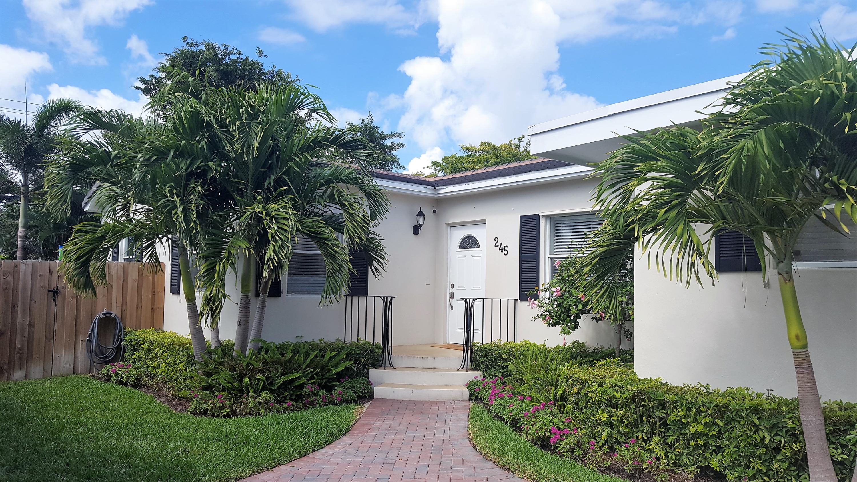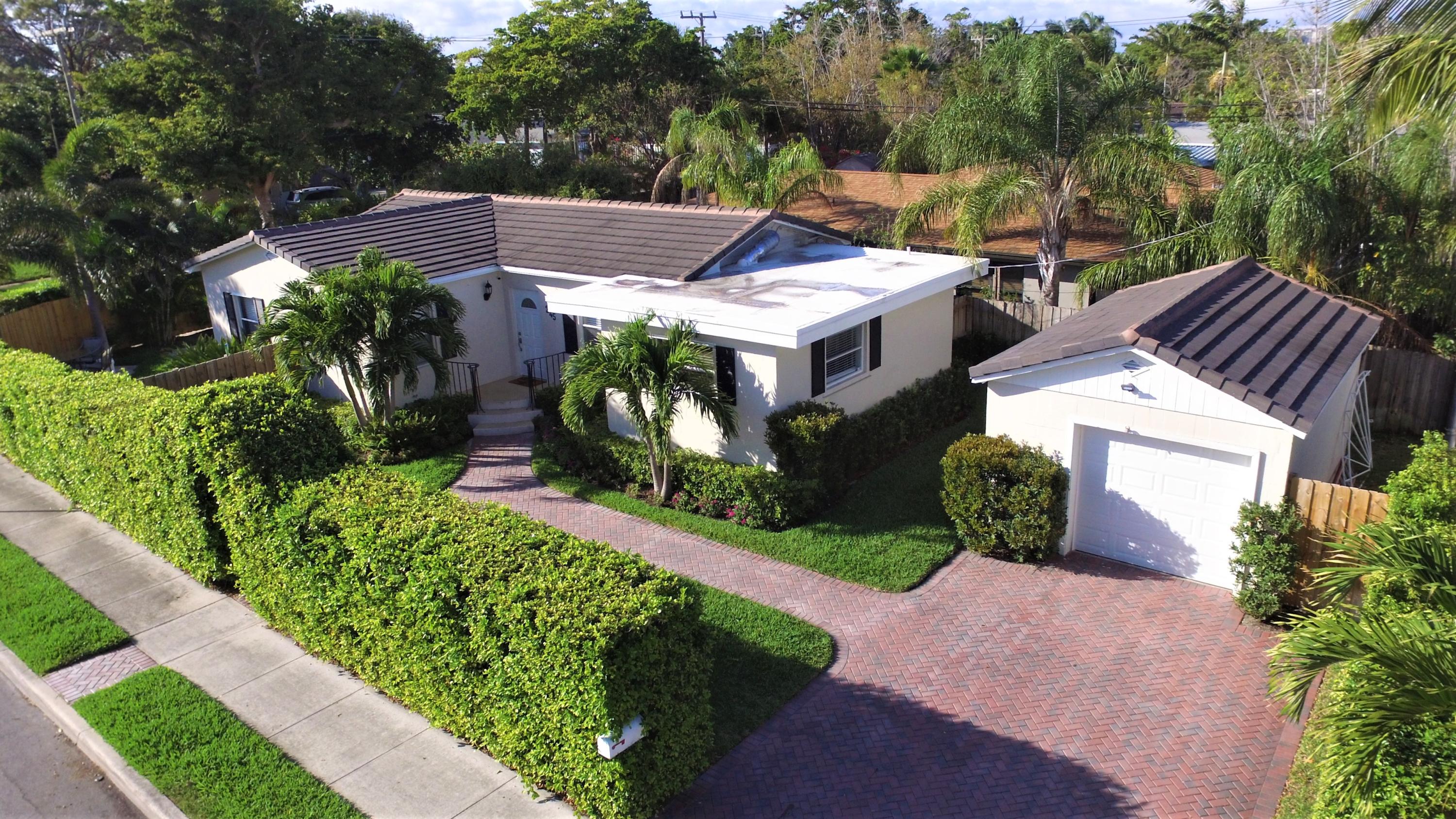 Located east of Olive Ave., in WPB's Southland Park and just a short walk to the Intracoastal Waterway, this spacious 2-bed/2-bath home has been well maintained and tastefully renovated inside and out. Original wood flooring stretches throughout the home with wood-look tile in the master bedroom. The modern kitchen opens to a large dining/living room that overlooks the fenced in backyard. The property is surrounded by 8 foot ficus hedge and tropical foliage. Most recent renovations include A/C (2011), paver driveway & walkway (2012), complete new roof (2013), new irrigation, garage door and fence (2017). Tropical landscaping, modern renovations, ideal location and a historic vibe!