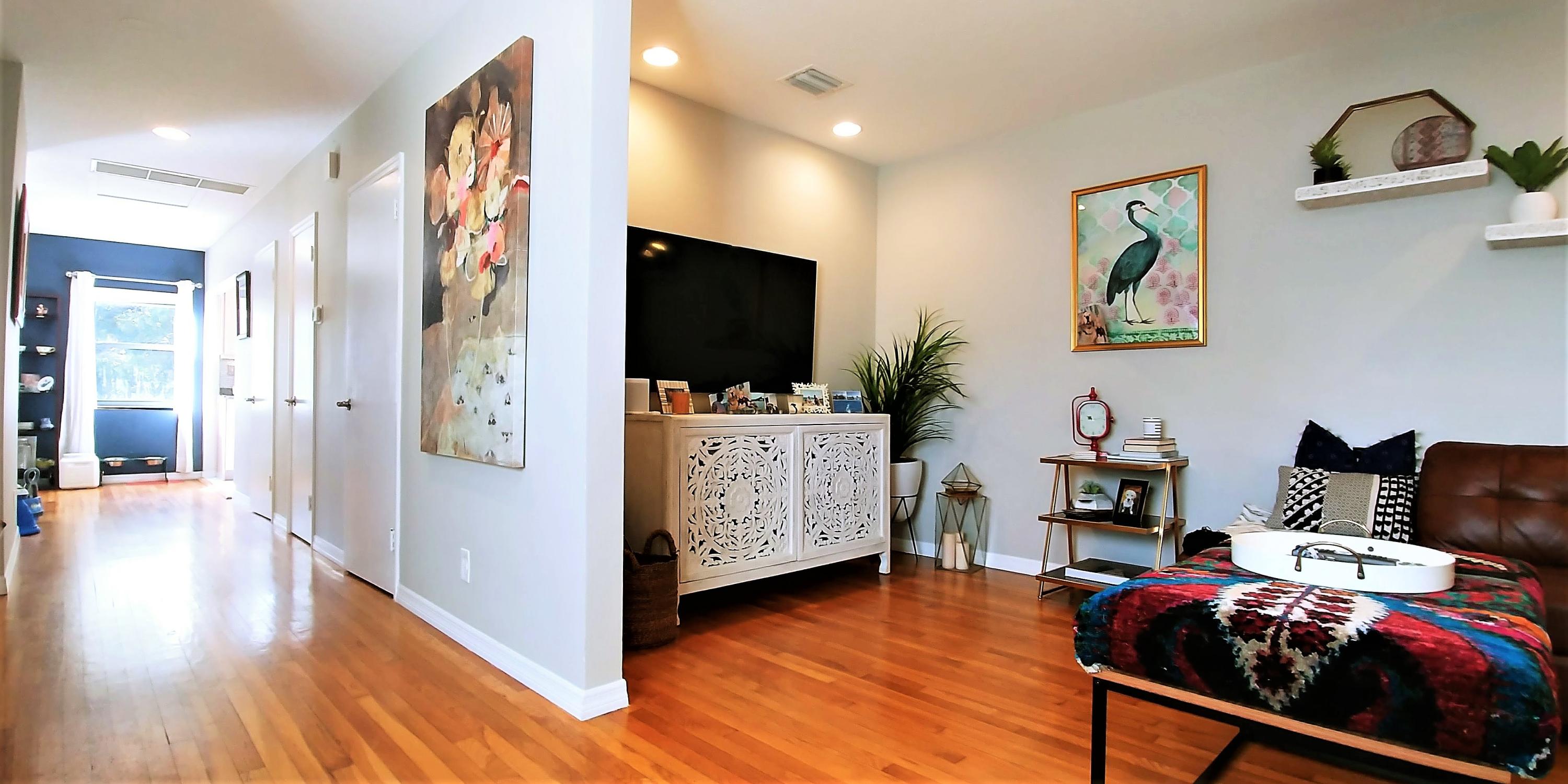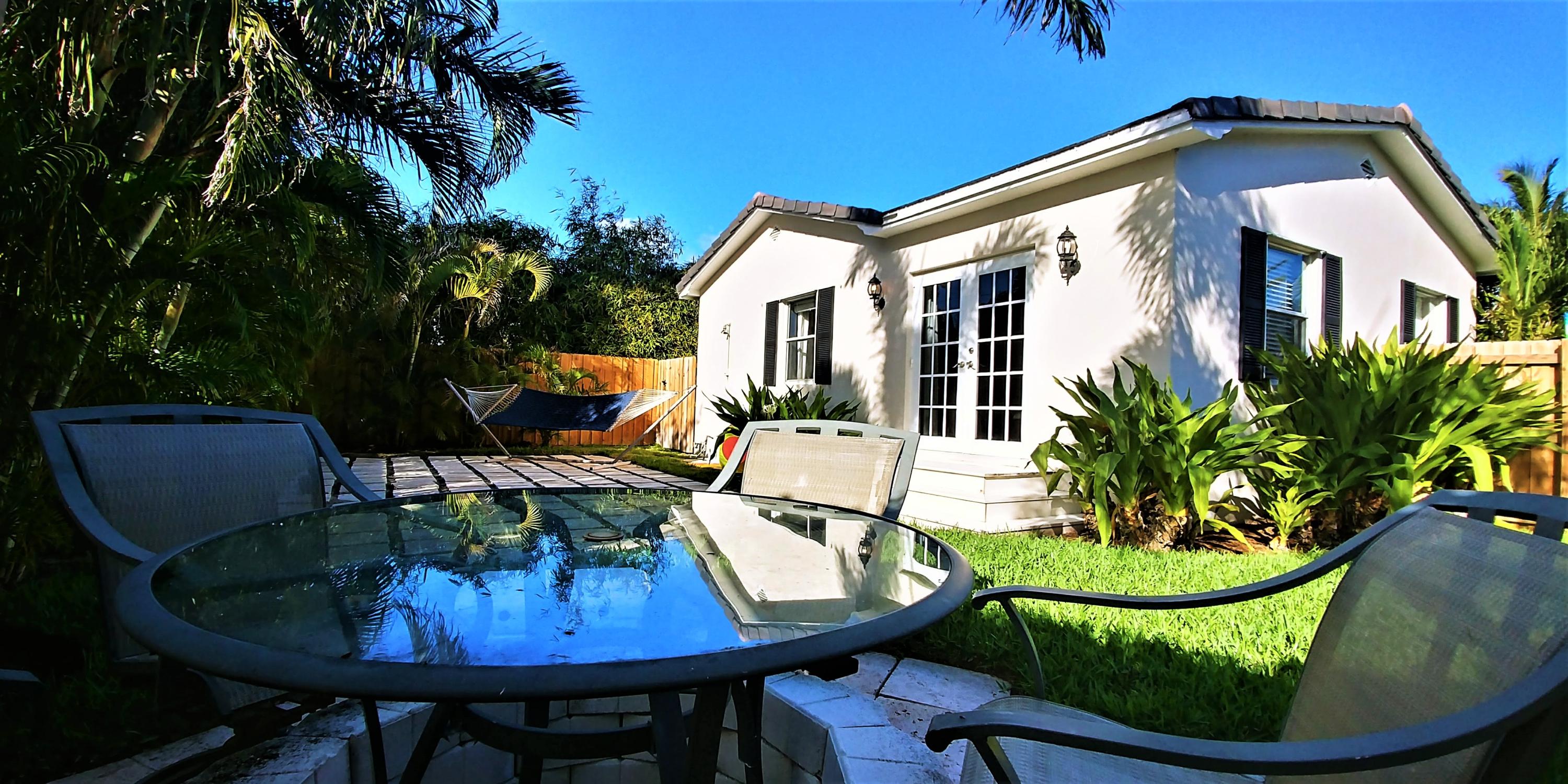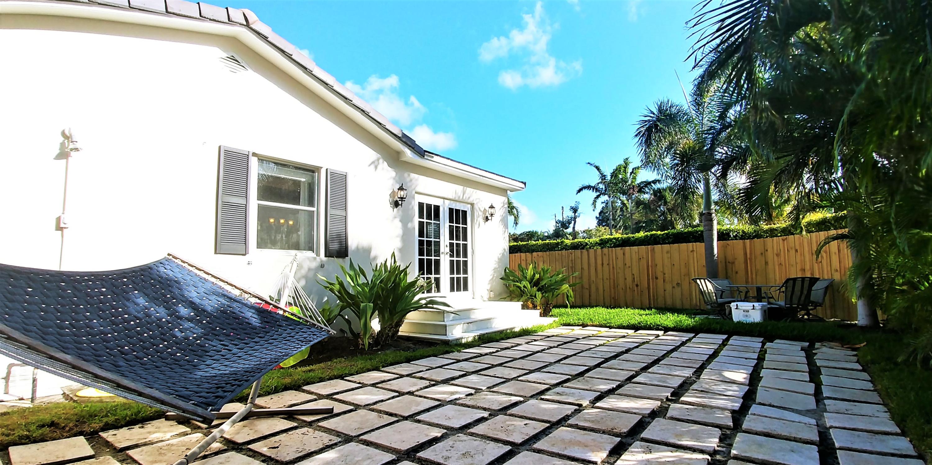 Located east of Olive Ave., in WPB's Southland Park and just a short walk to the Intracoastal Waterway, this spacious 2-bed/2-bath home has been well maintained and tastefully renovated inside and out. Original wood flooring stretches throughout the home with wood-look tile in the master bedroom. The modern kitchen opens to a large dining/living room that overlooks the fenced in backyard. The property is surrounded by 8 foot ficus hedge and tropical foliage. Most recent renovations include A/C (2011), paver driveway & walkway (2012), complete new roof (2013), new irrigation, garage door and fence (2017). Tropical landscaping, modern renovations, ideal location and a historic vibe!