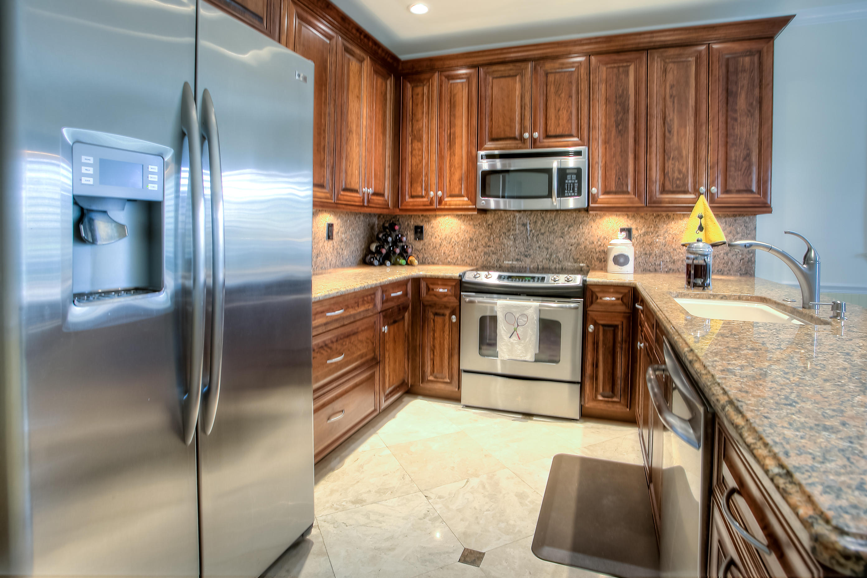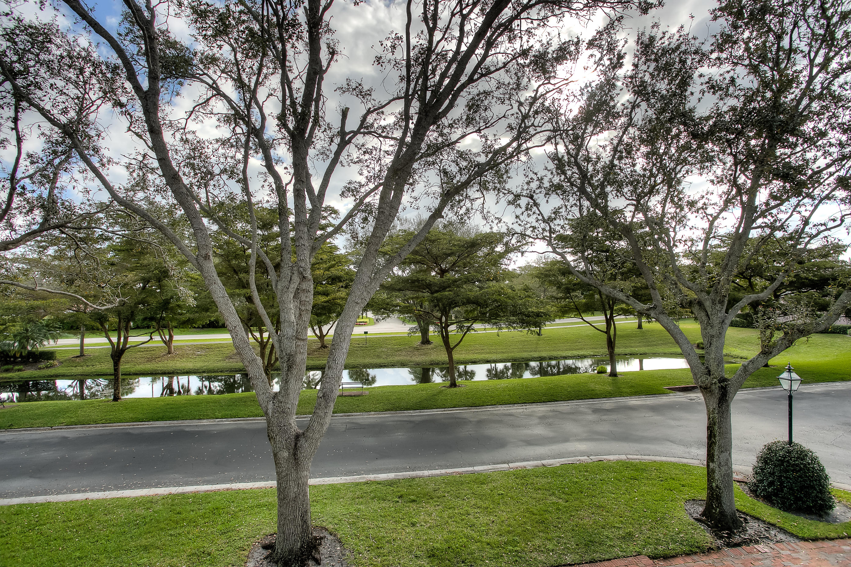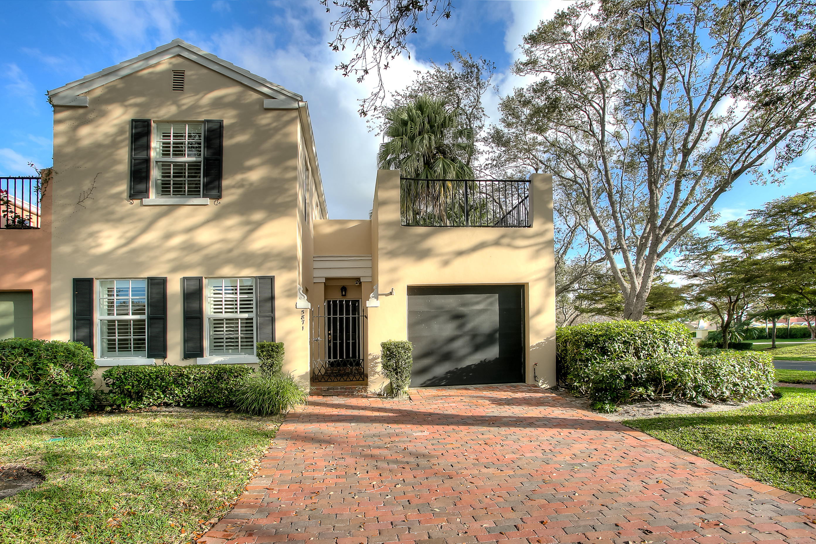 This one checks all the boxes. Spacious 2 story town home completely updated. This bright southern exposure corner lot home sits on a tree lined street overlooking a quaint lake. From the pavered brick walkway through the charming wrought iron gate the front door opens to a spacious floorplan. Real cherry hardwood floors & exceptional woodwork includes Chair rails, crown moldings & plantation shutters throughout. Impact hurricane glass installed & with solid concrete block construction this home is ready for mother nature. All bathrooms have been updated from floor to ceiling. All bedrooms are en suite w/spacious lower level AND upper level master bedrooms. A private courtyard features a heated hot tub. One of the largest sundecks/upper level ''patio'' in the community completes the home
