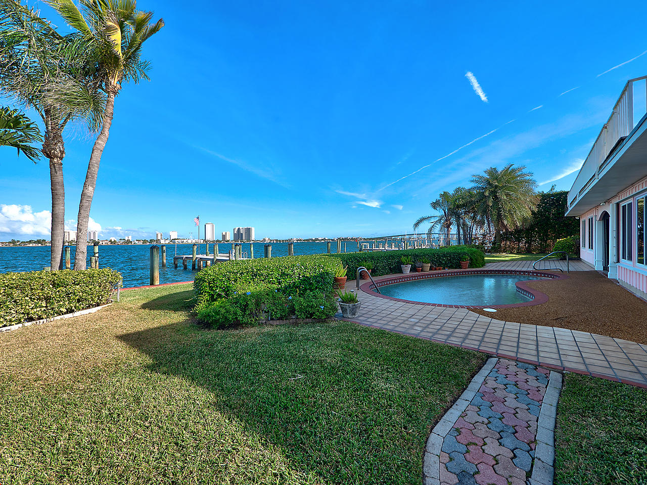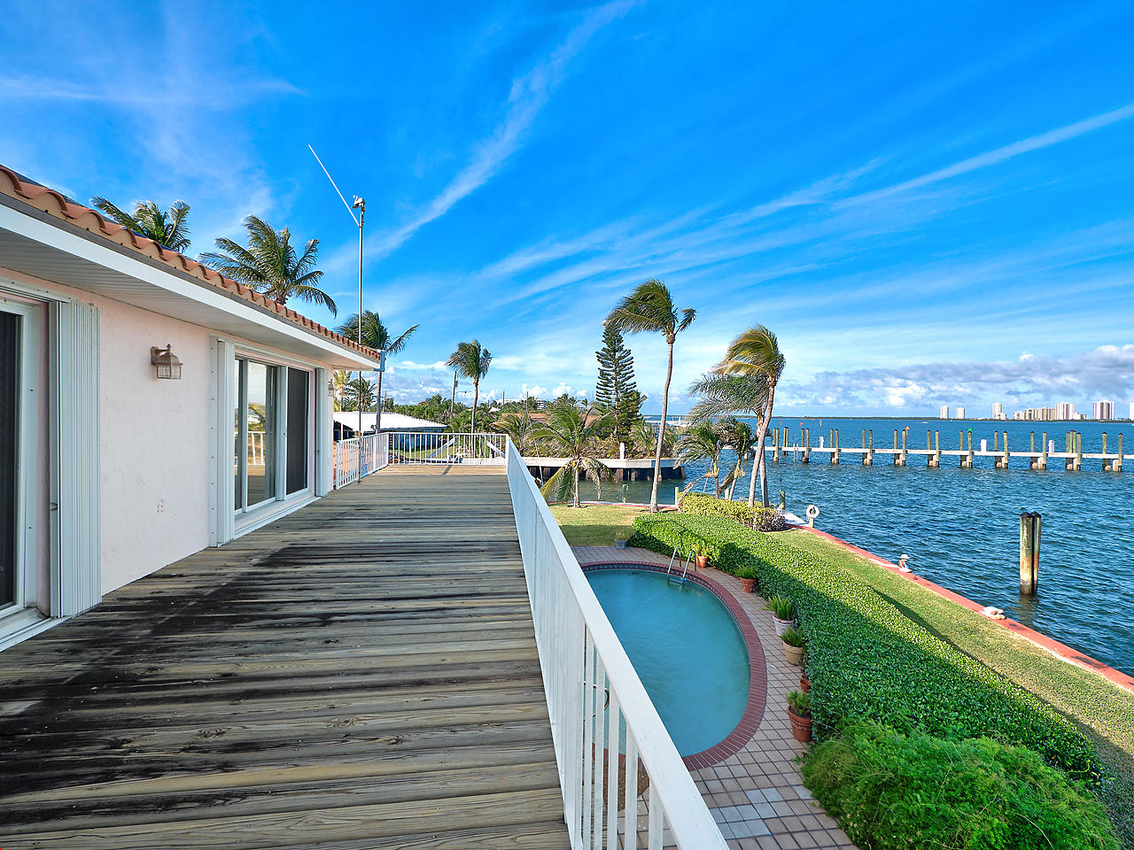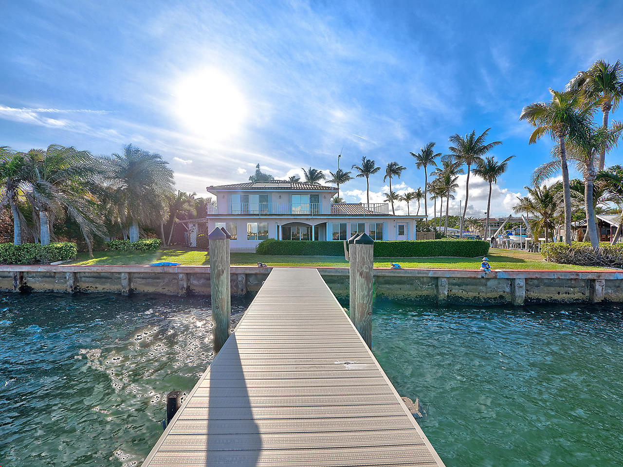 Welcome home to PARADISE! This stunning waterfront, corner lot home features 4 spacious bedrooms, 4 full bathrooms, plus a den, large loft area, and private pool. Spectacular intracoastal views from nearly every room. Volume ceilings, large windows, and an open floorplan boasting 3,694 SF create for a light and bright home. 200 ft. of Waterfrontage, Direct Ocean Access, Two private docks including an 80'+ slip, 16,000 lb. boat lift, No fixed bridges, No HOA. Live the lifestyle you've always dreamed of!