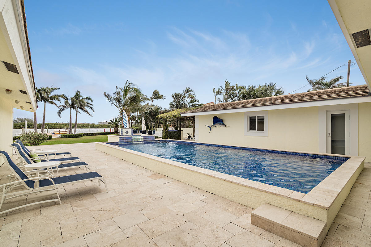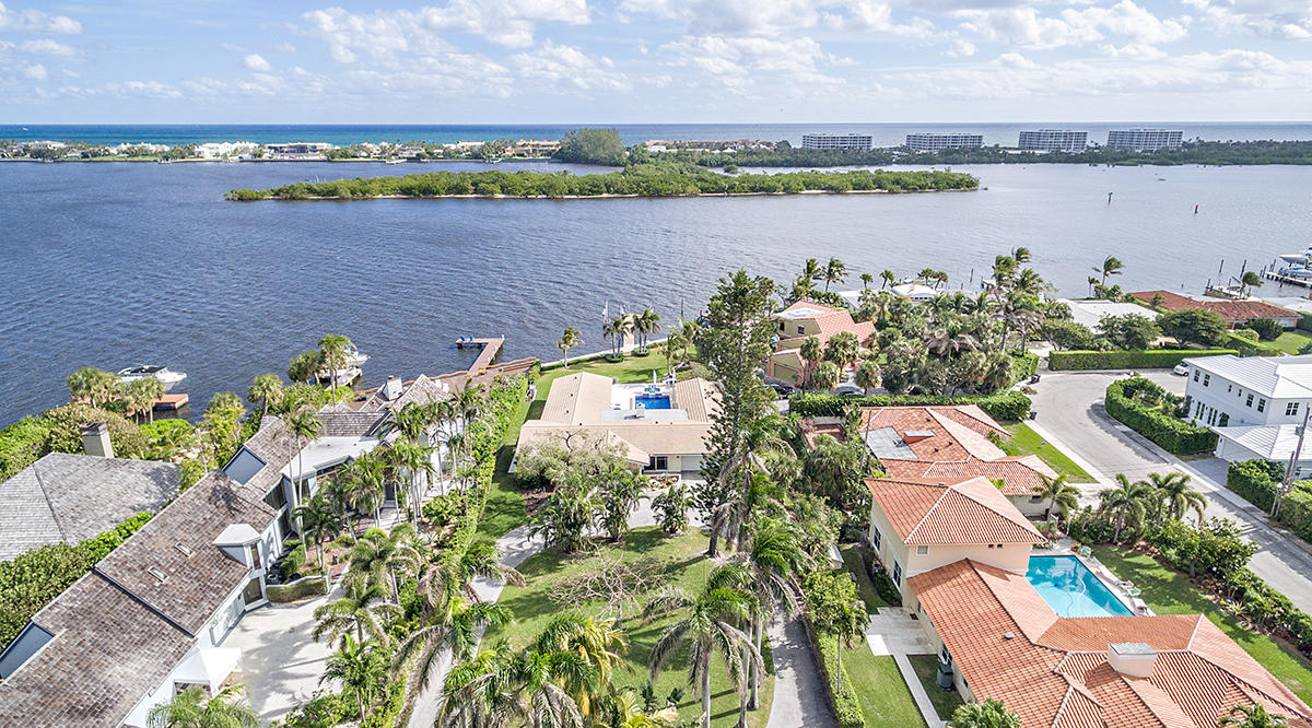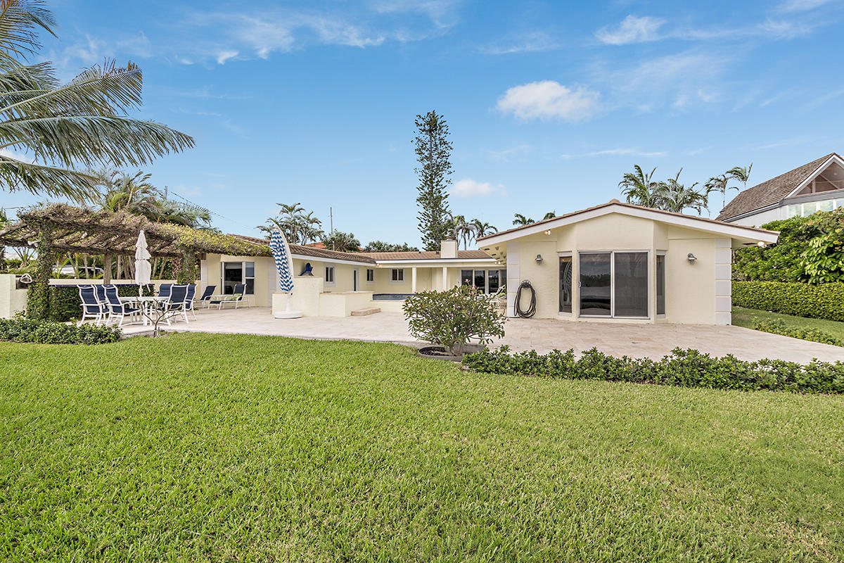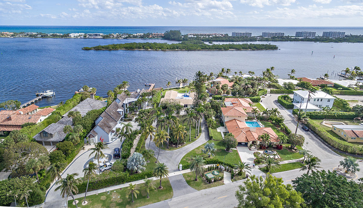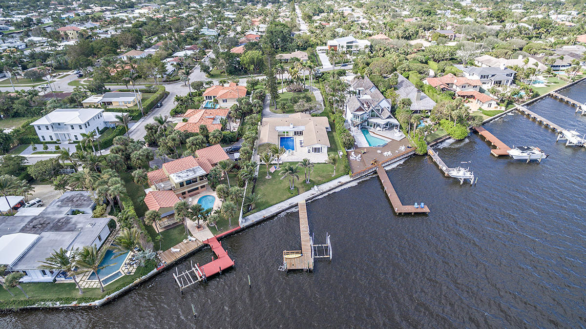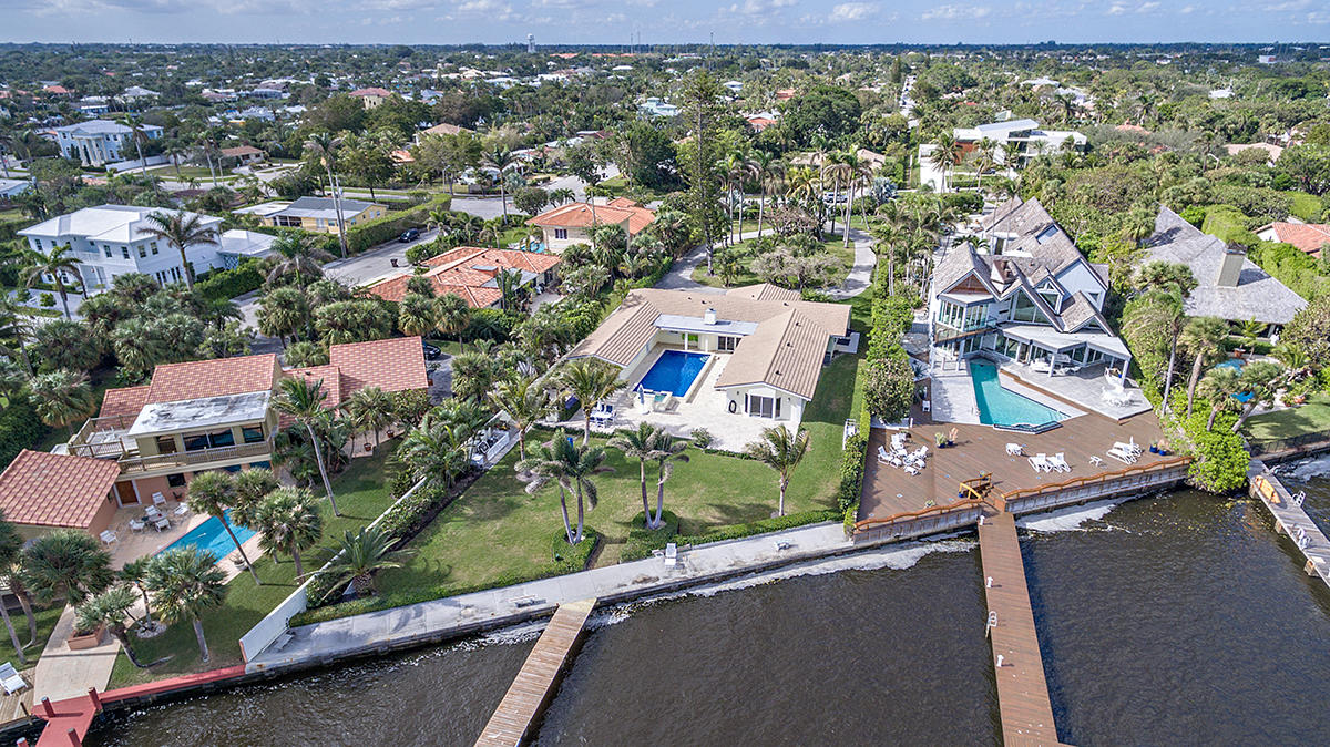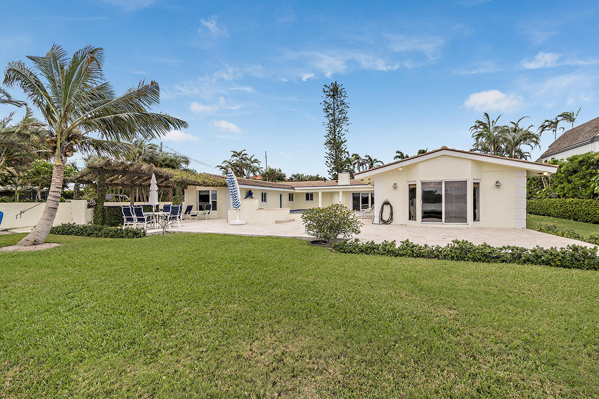 Located in the Uber desirable South of Southern (SOSO) neighborhood and situated on an oversized 32,000+ sq ft lot directly on the Intracoastal waterway rests this 4,064 square foot one story ranch-style home with 4 bedrooms and 3.5 bathrooms. Boasting Riparian rights and a deep water dock, this property has views of the island of Palm Beach from practically every window. When approaching the home, one drives through the long winding driveway which immediately brings to your attention the enormity of the property. Once in the foyer, your eyes will immediately catch the glistening colors of the sun dancing on the water outside both in the swimming pool as well as the Intracoastal waterway. The home is NOT historic and the property is not located in a historic neighborhood.