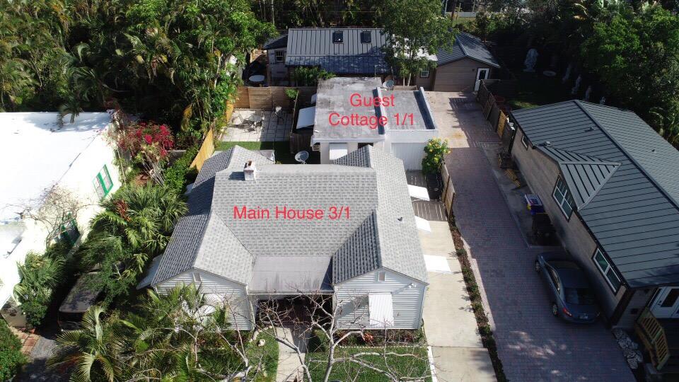 This property has a 3 bedroom 1 bath main house and a 1 bedroom 1 bath guest cottage. A rare opportunity to own a home in Flamingo Park located just South of City Place. This home has original wood floors throughout, a fireplace, and was freshly painted throughout. The beautifully decorated kitchen has White cabinets, quartz counter tops, a tastefully designed back splash, and stainless appliances. Additionally there are recessed hi hats in the kitchen and living room, news fans in each room. The home has a laundry on the back covered porch for the main house which and is fully enclosed. An added bonus is the guest cottage in the rear of the property that can be used for house guest or can be income producing. There is also additionally storage off of the cottage. BEING SOLD ''AS IS''.